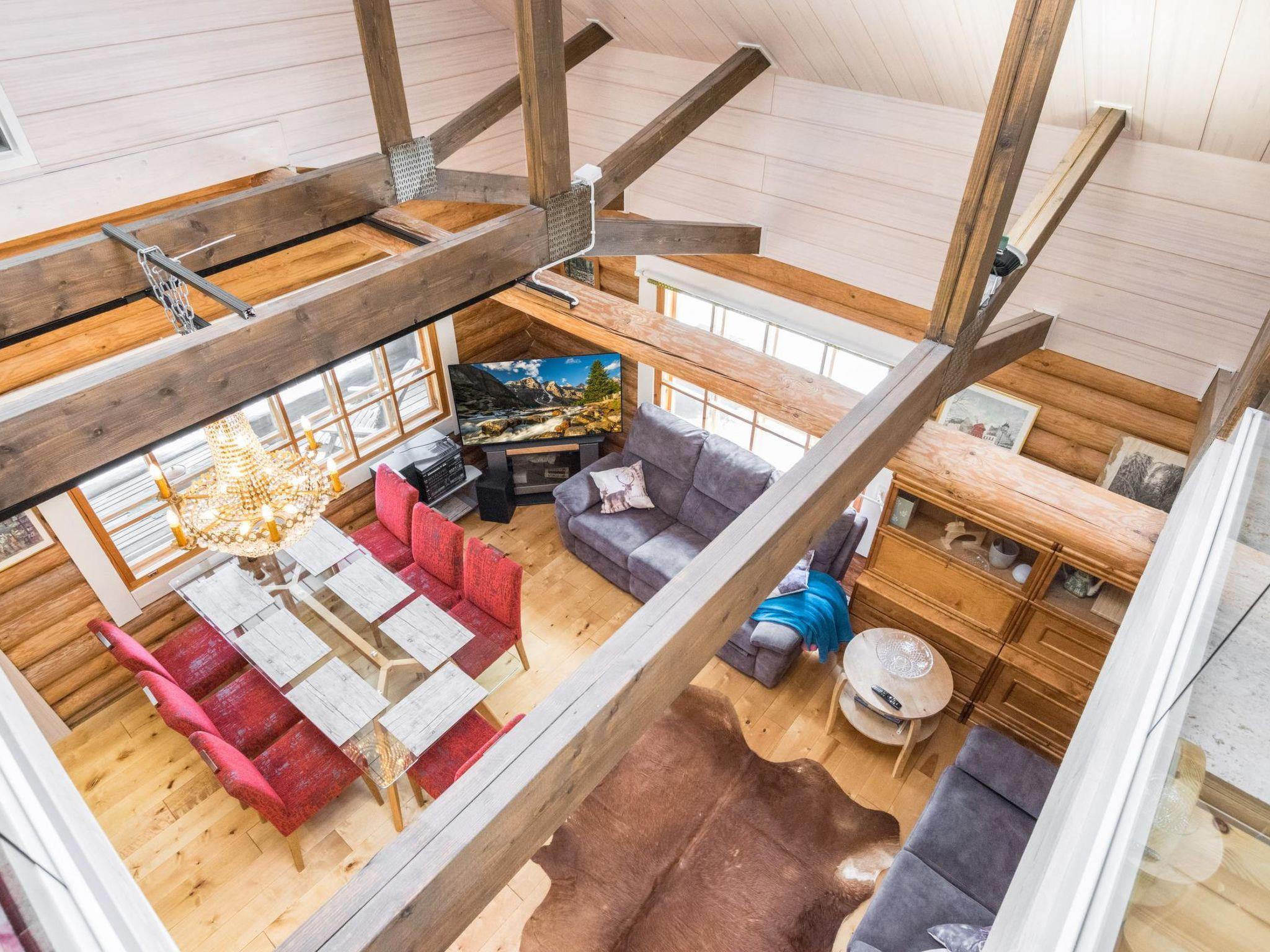In the tower room, there is a living area with magnificent views, windows in four directions, a sofa bed for two, and a glass balcony to admire the scenery. Access to the tower room is through the upper floor bedroom.