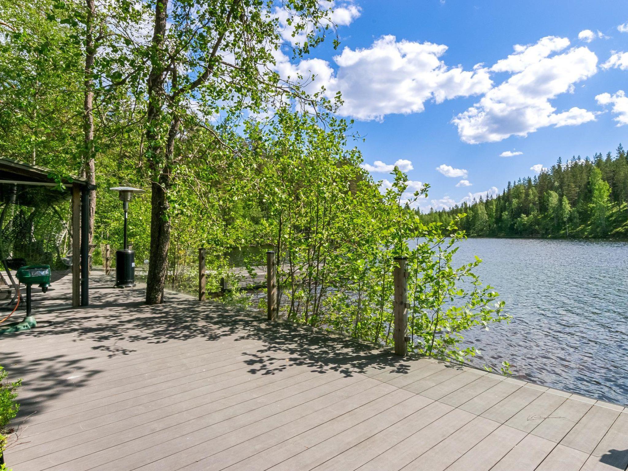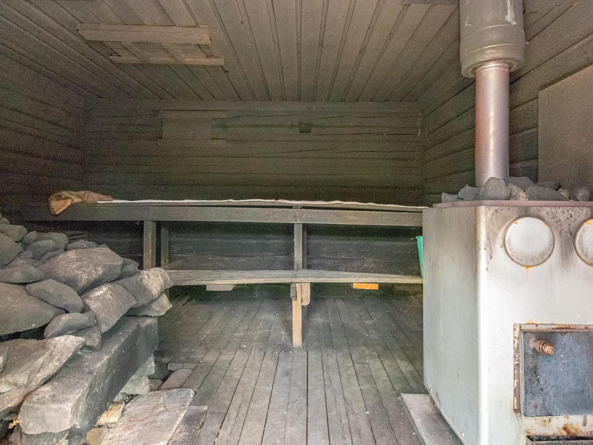 The lakeside sauna has a dressing room and a wood-heated sauna stove. The sauna is a former smoke sauna, and the old smoke stove has been left as a decoration and is not in use. There is a large terrace right by the water.