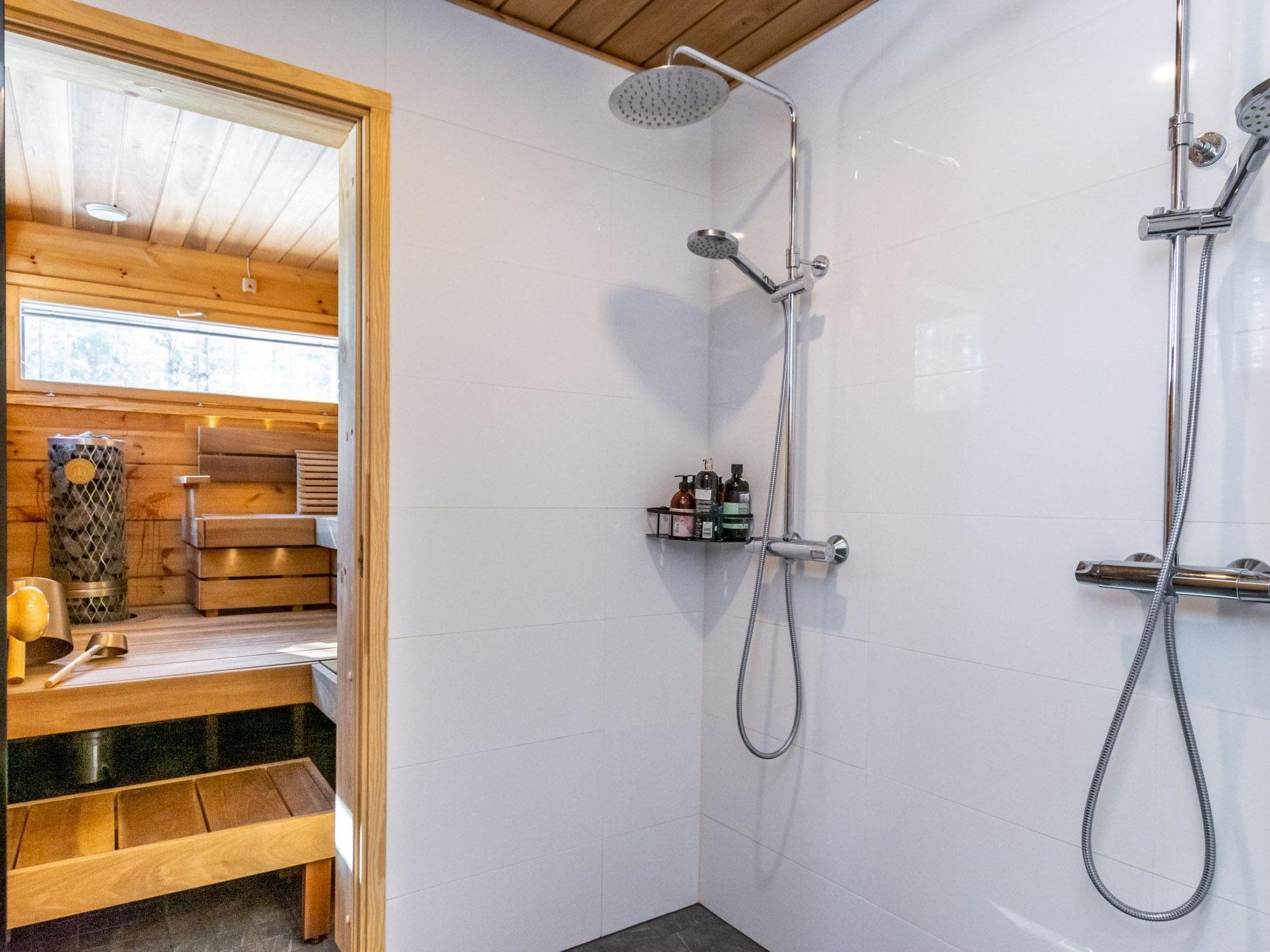 Villa Väiski is perfectly suited as accommodation for an active group of friends or a family of 4-6 people who appreciate the ease of use, quality, and quick transition to hobbies. If necessary, the 2-story solution gives peace to those who appreciate it with the upper floor bedroom, while the ground floor’s cozy open kitchen-living room serves as the heart of the apartment. The three bedrooms comfortably accommodate six adults, and the spacious sauna can accommodate the whole group to enjoy the steaming of the IKI-brand sauna stove. The upper floor bedroom has a luxurious 2.10 m wide king-size double bed and a private bathroom with a shower. In the ground floor bedrooms, the beds can be separated if necessary.