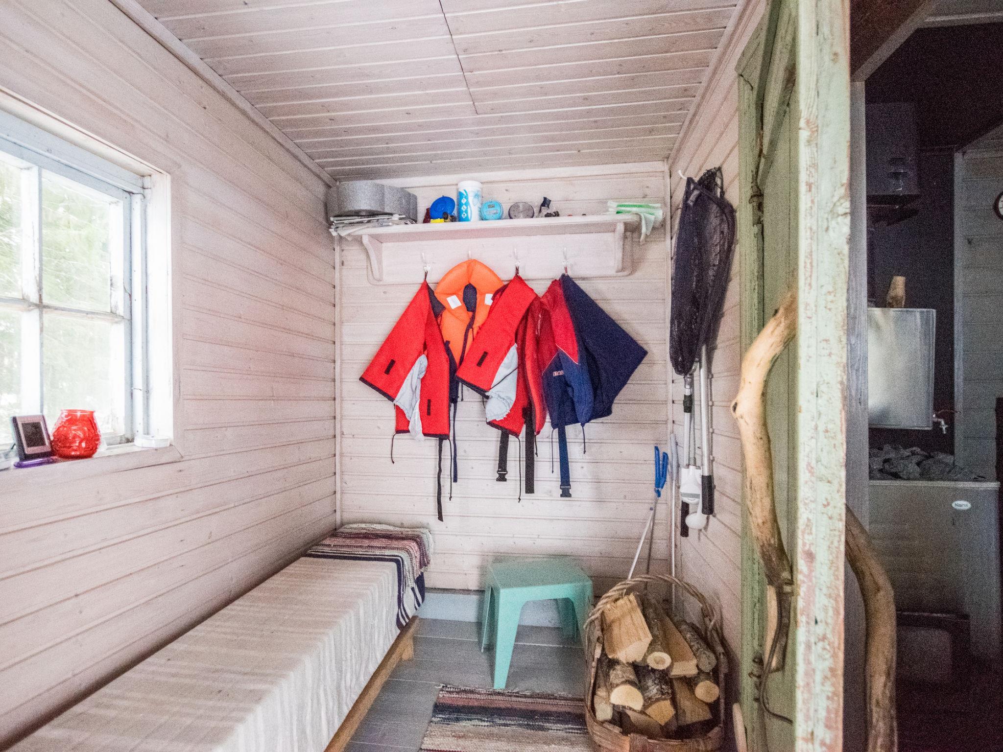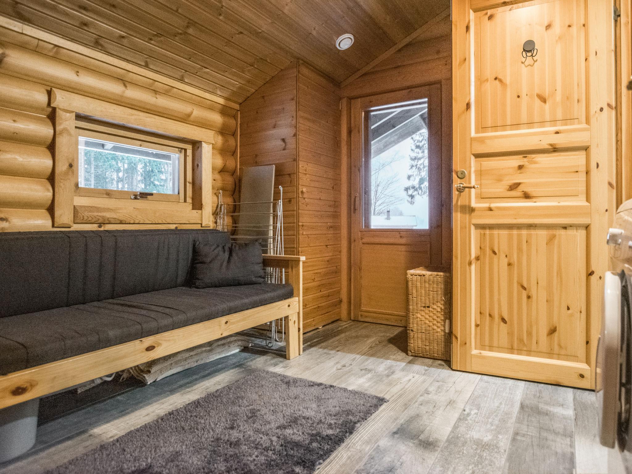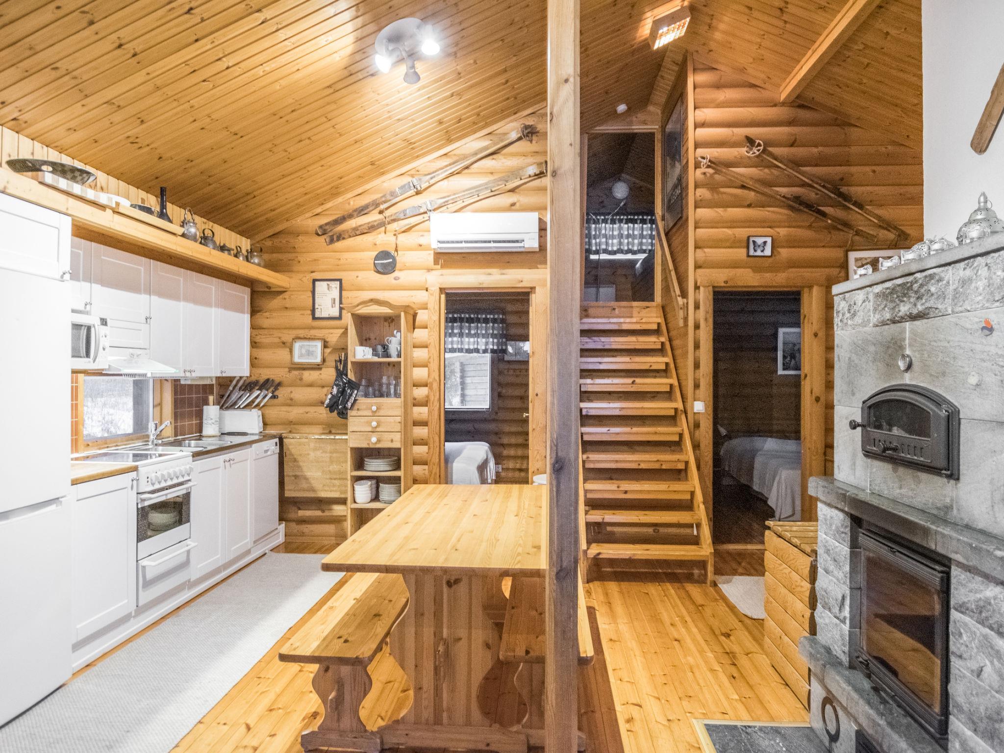 Wooden/log cottage 1994, living room/kitchen, bedroom 2 beds, second bedroom double bed, sleeping loft with folding door 2 beds and 2 mattresses, dressing room (convertible sofa as an alternative sleeping Place) , washroom, sauna (electric stove). Gas grill on the terrace.