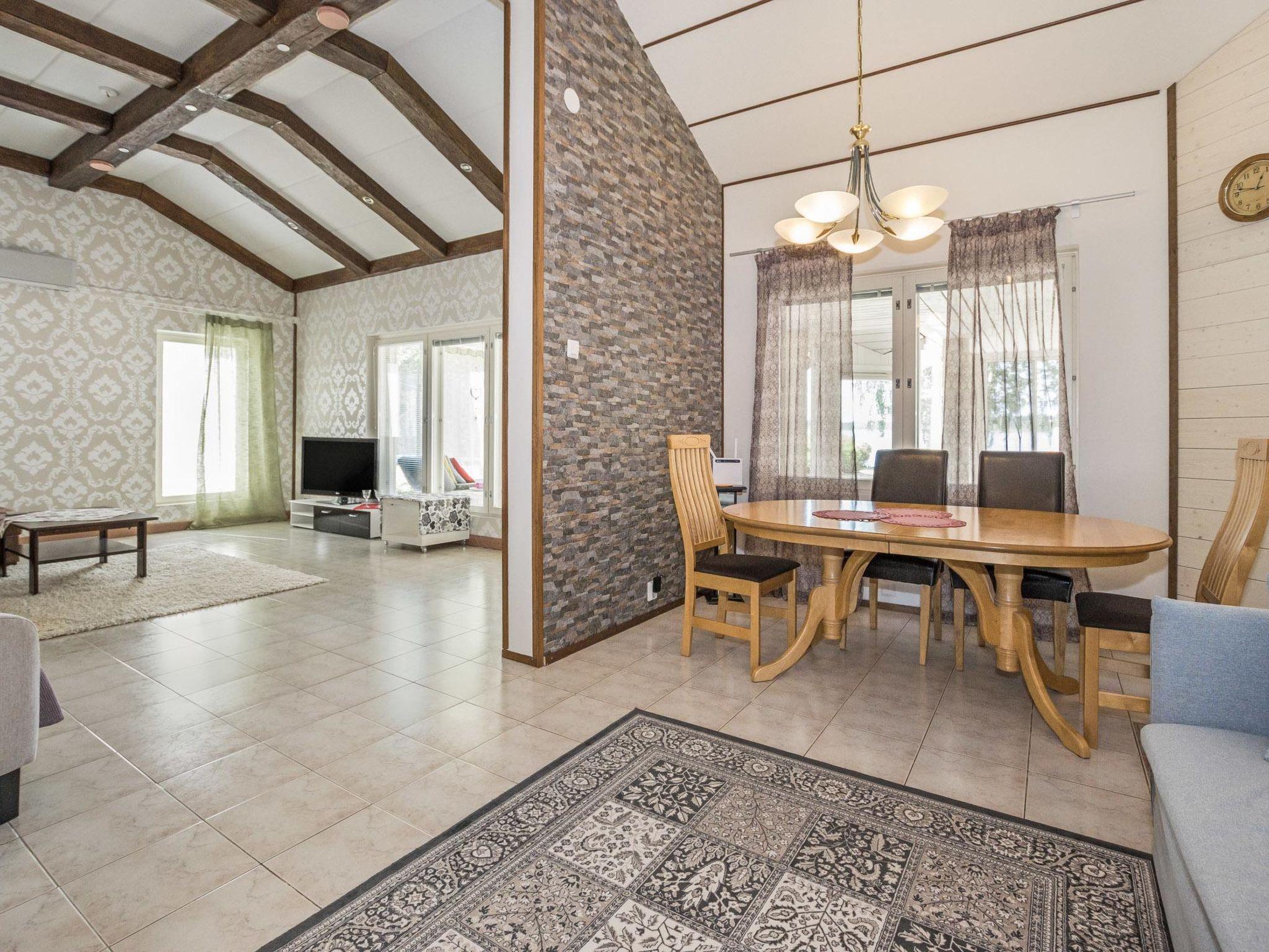 Living room with sofa, one sleeping site (90 x 200 cm) by using a separate mattress pad on the sofa, kitchen, dining area with sofa bed for one, bedroom with Yankee bed 160x200 cm, bedroom with 3 single beds (80x200 cm), WC with shower, glazed terrace.