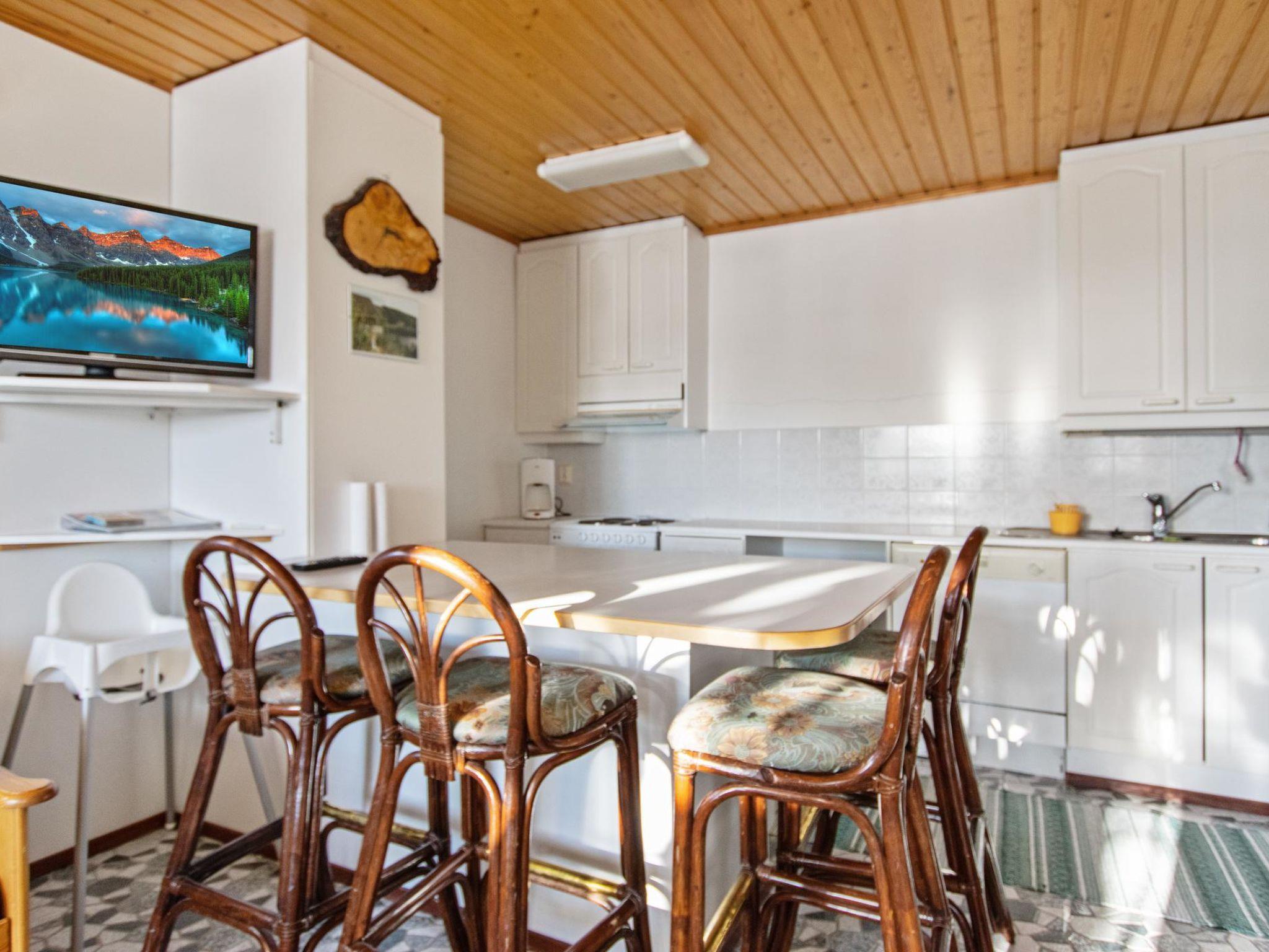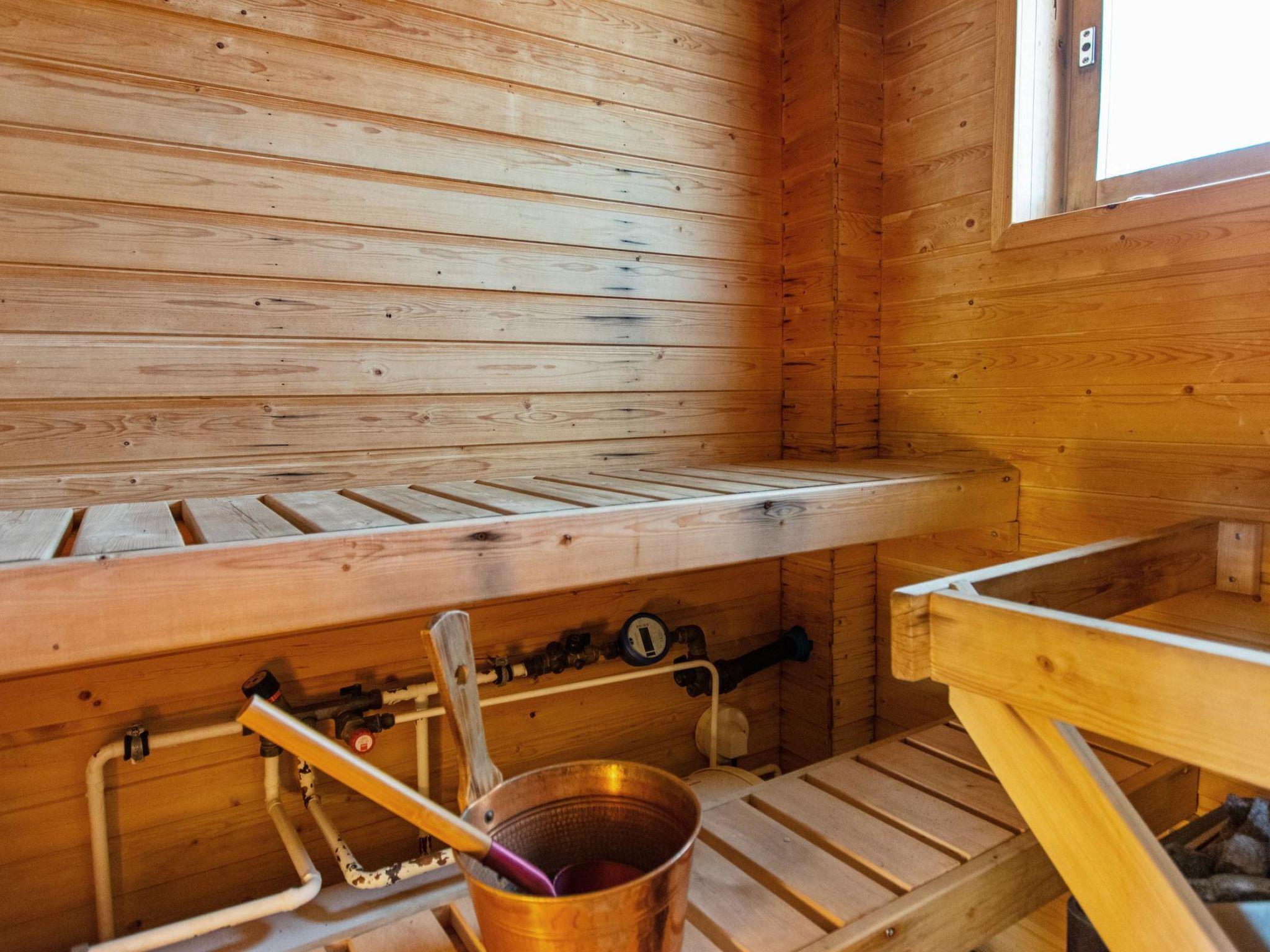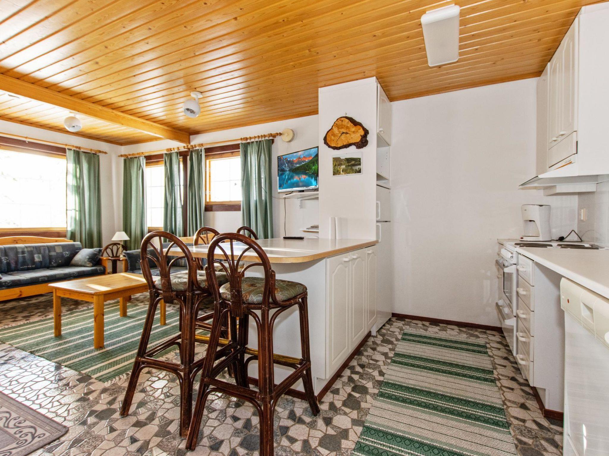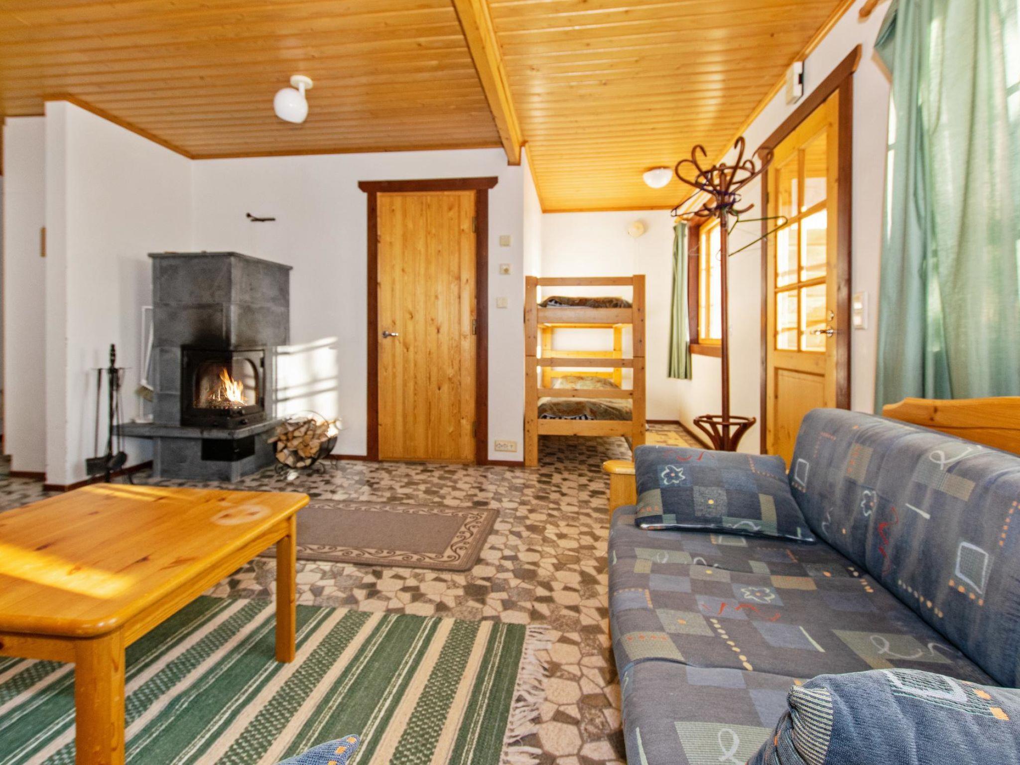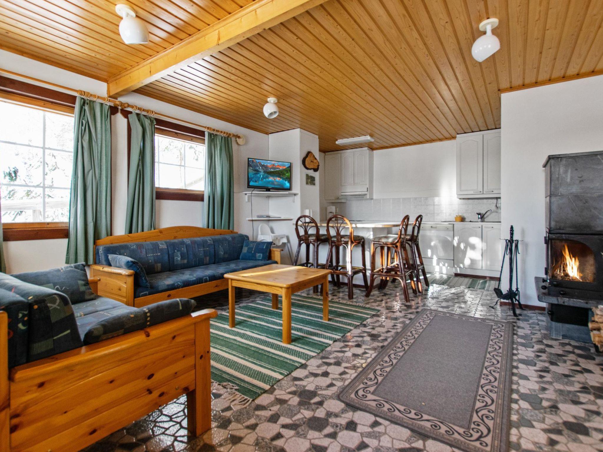 The downstairs of a semi-detached house located in the Ukkohalla tourism centre, 4 + 2persons, 42m², built in 1990, kitchen, 2 sleeping corners, sauna, shower room/toilet, fireplace, bunk bed in the sleeping corner, 2 beds in the other sleeping corner, an opening sofa-bed in the living room. Not suitable for people with reduced mobility. The entrance is located down the stairs from the street level.