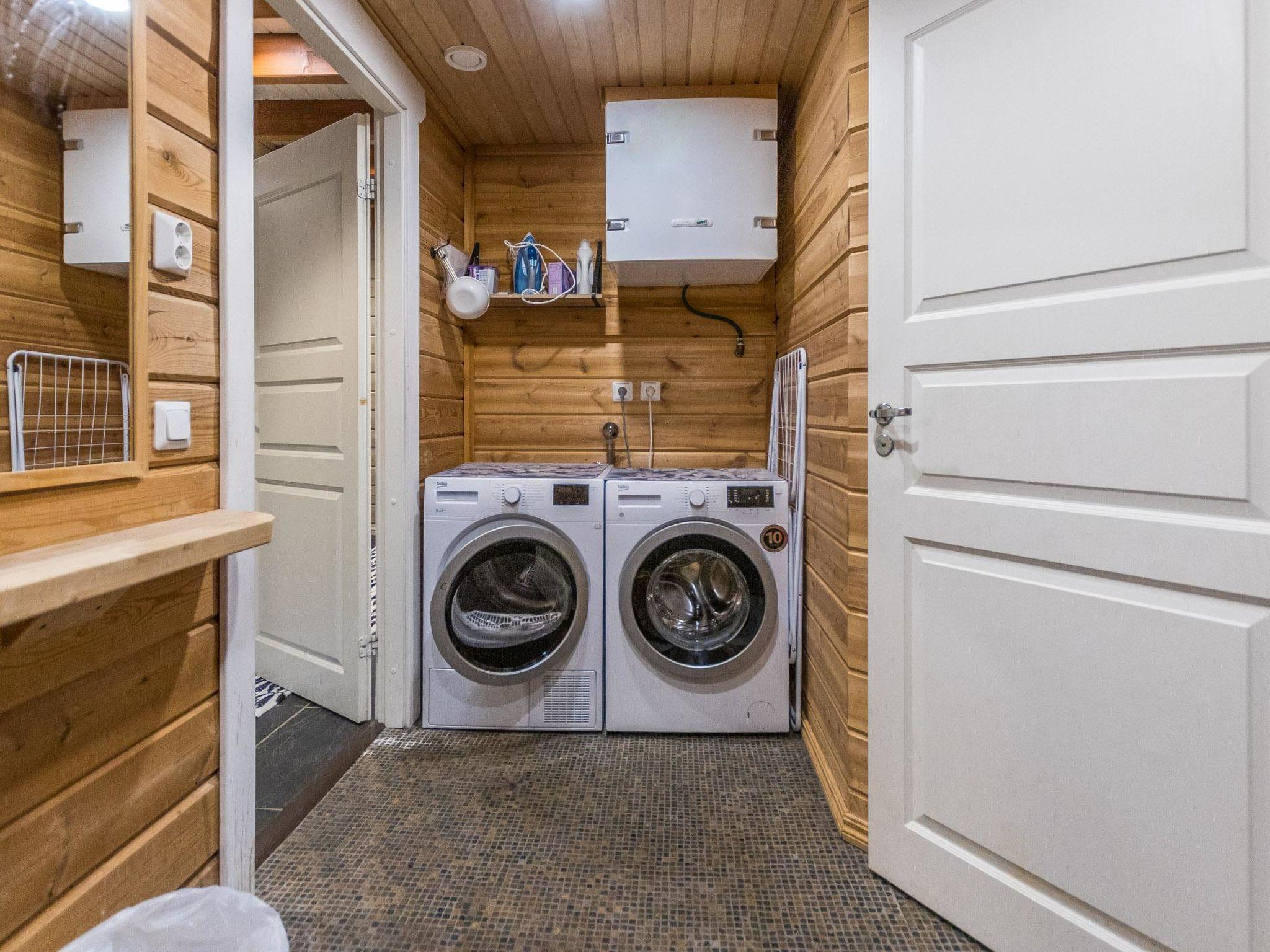A drying cabinet in the hall and a washing machine and tumble dryer in the utility room.