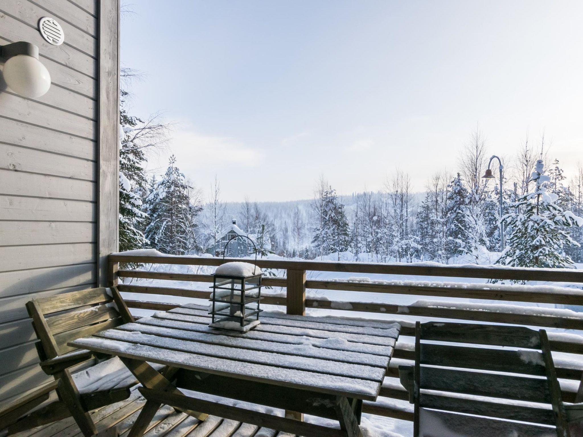 A log cottage located in the Ukkohalla tourism centre, for 4 + 4 persons, 54 m² + loft 25 m², built in 2008, kitchen, 1 bedroom with a double bed, loft, sauna, shower room, separate toilet, vestibule, fireplace. On the loft a double bed, a sofa-bed, extra bed and mattress.