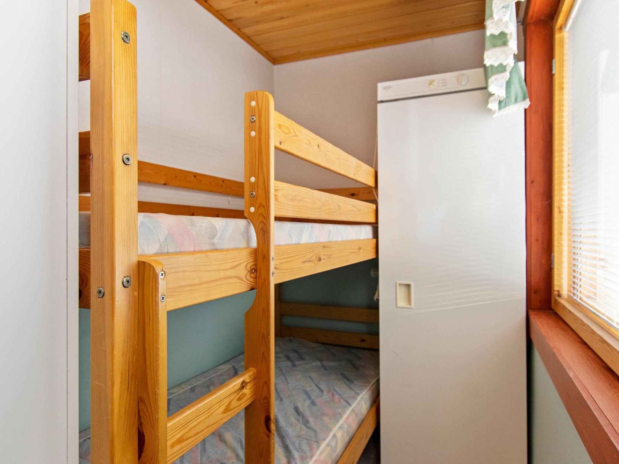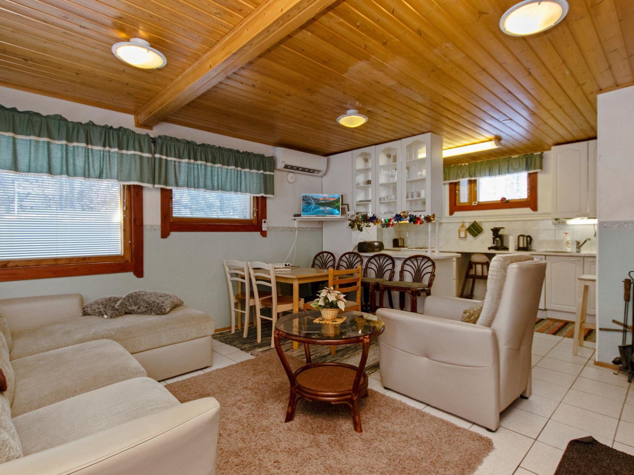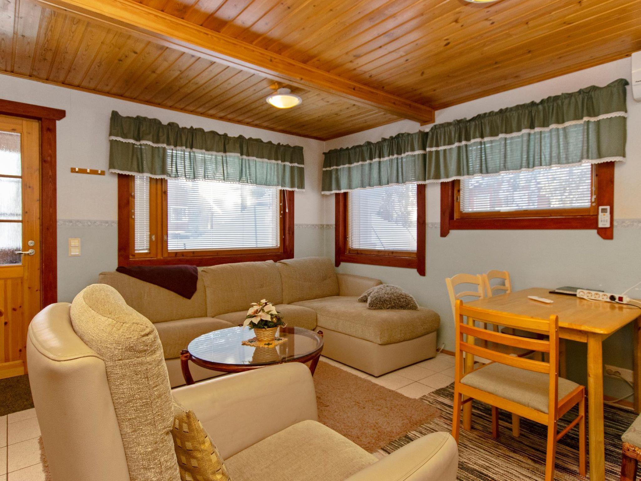 The downstairs of a semi-detached house located in the Ukkohalla tourism centre, 42 m², built in 1997. Kitchen, 2 sleeping corners, sauna, shower room/toilet, fireplace. Double bed in the other sleeping corner and a bunk bed in the other, sofa-bed in the living room.