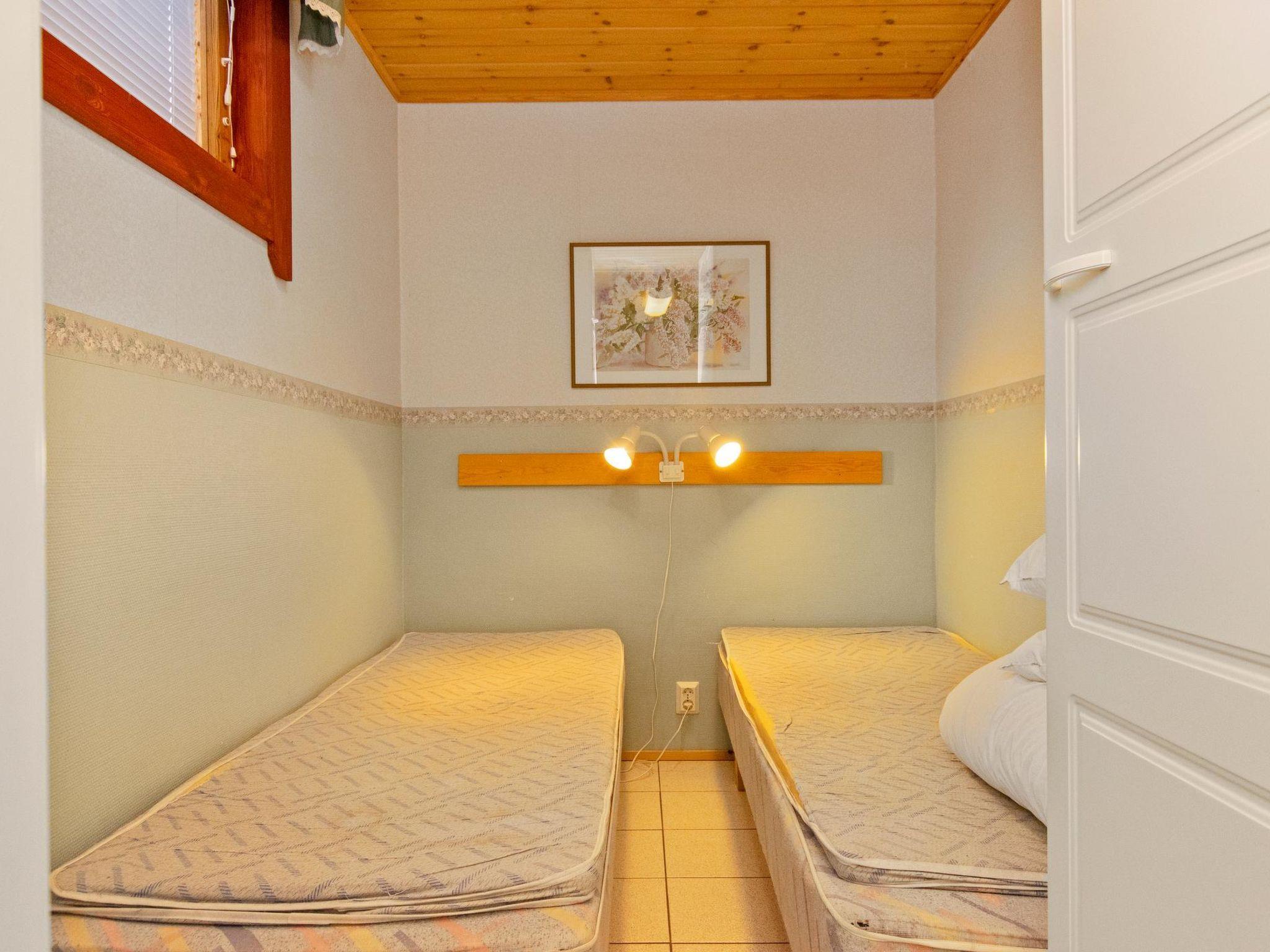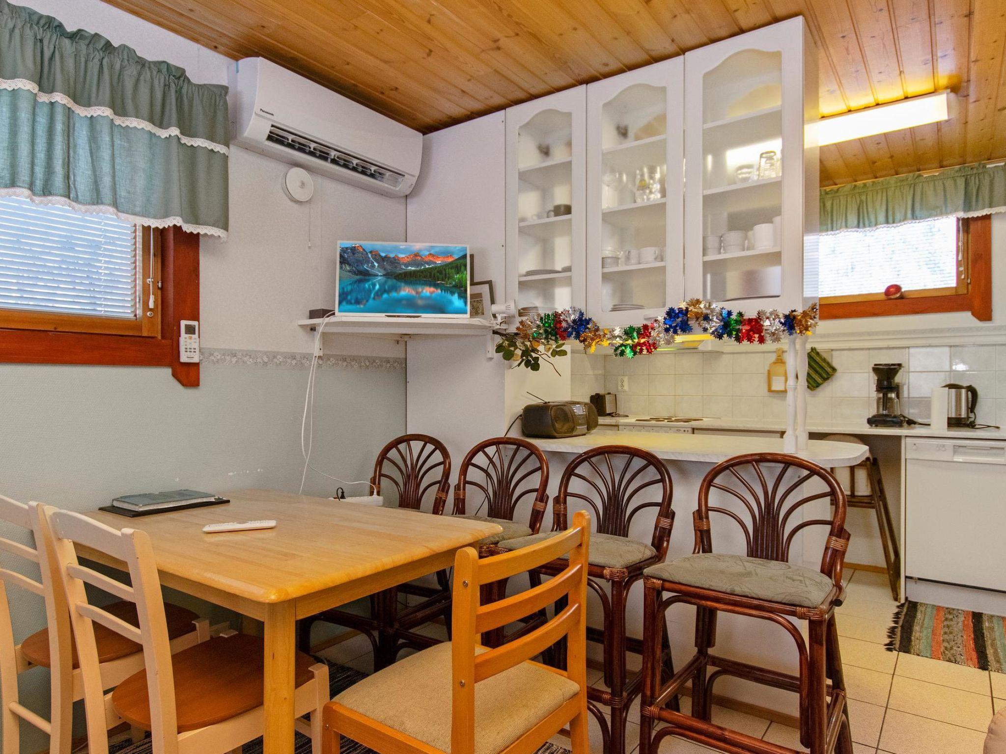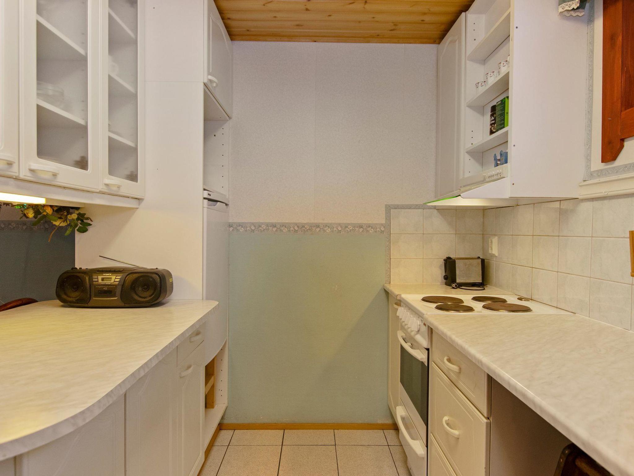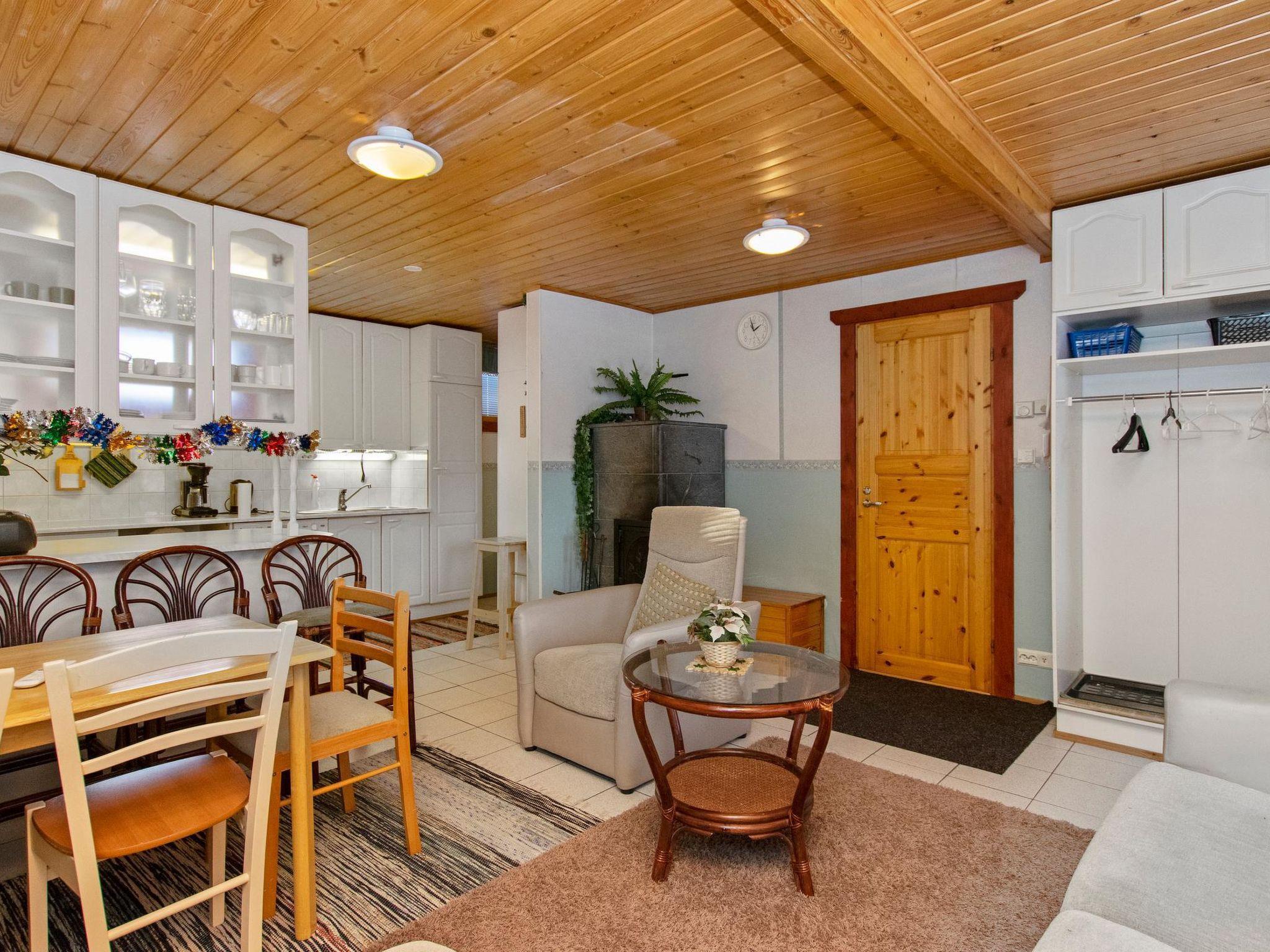 The downstairs of a semi-detached house located in the Ukkohalla tourism centre, 42 m², built in 1997. Kitchen, 2 sleeping corners, sauna, shower room/toilet, fireplace. Double bed in the other sleeping corner and a bunk bed in the other, sofa-bed in the living room.