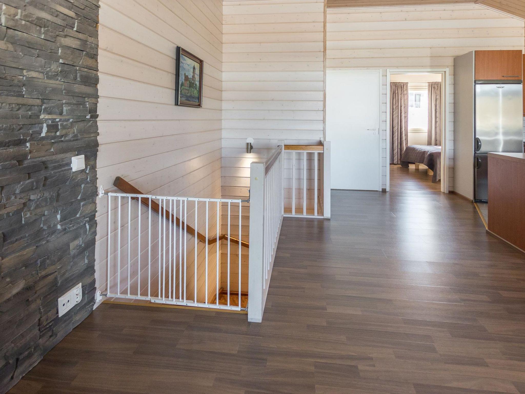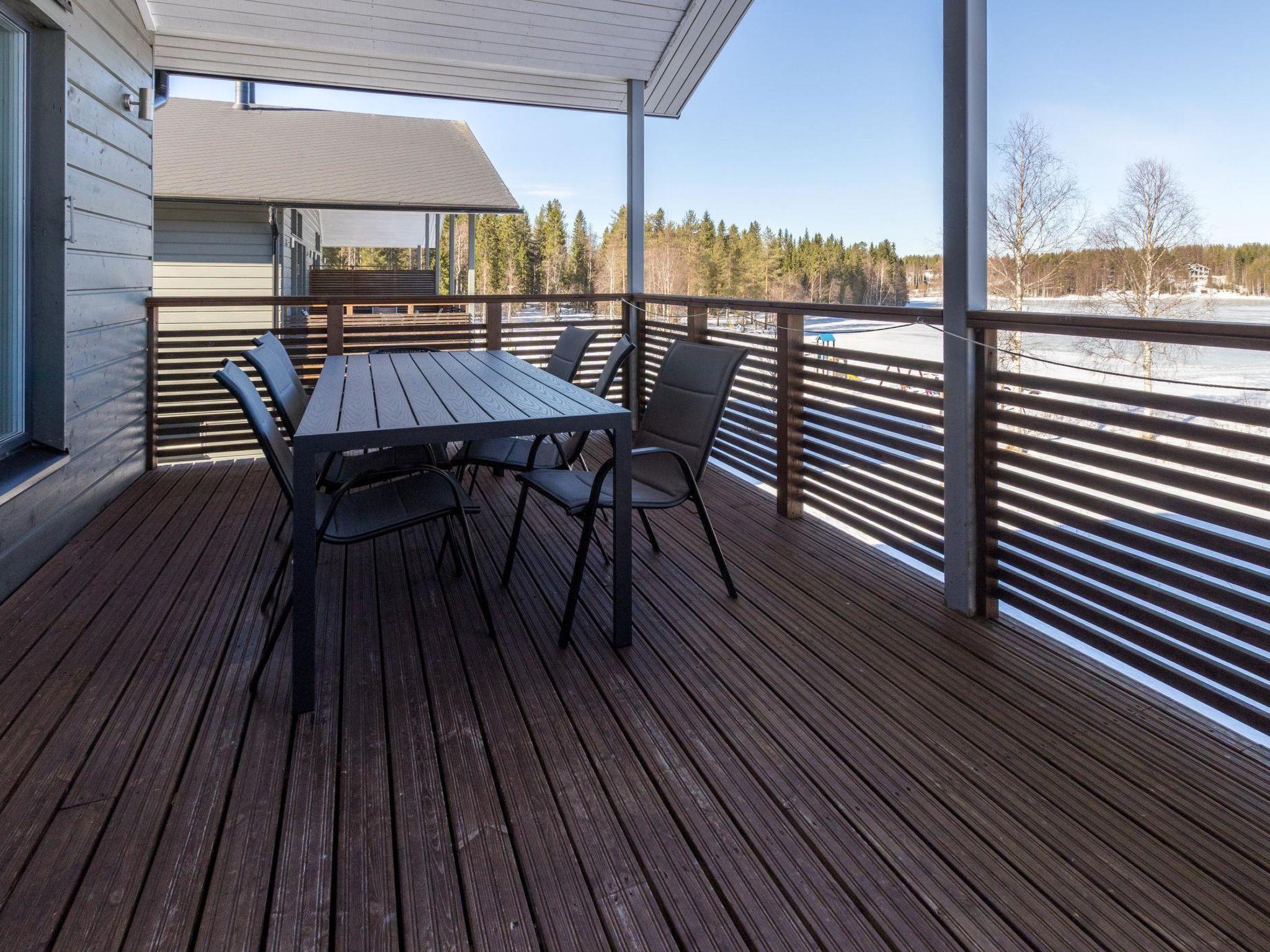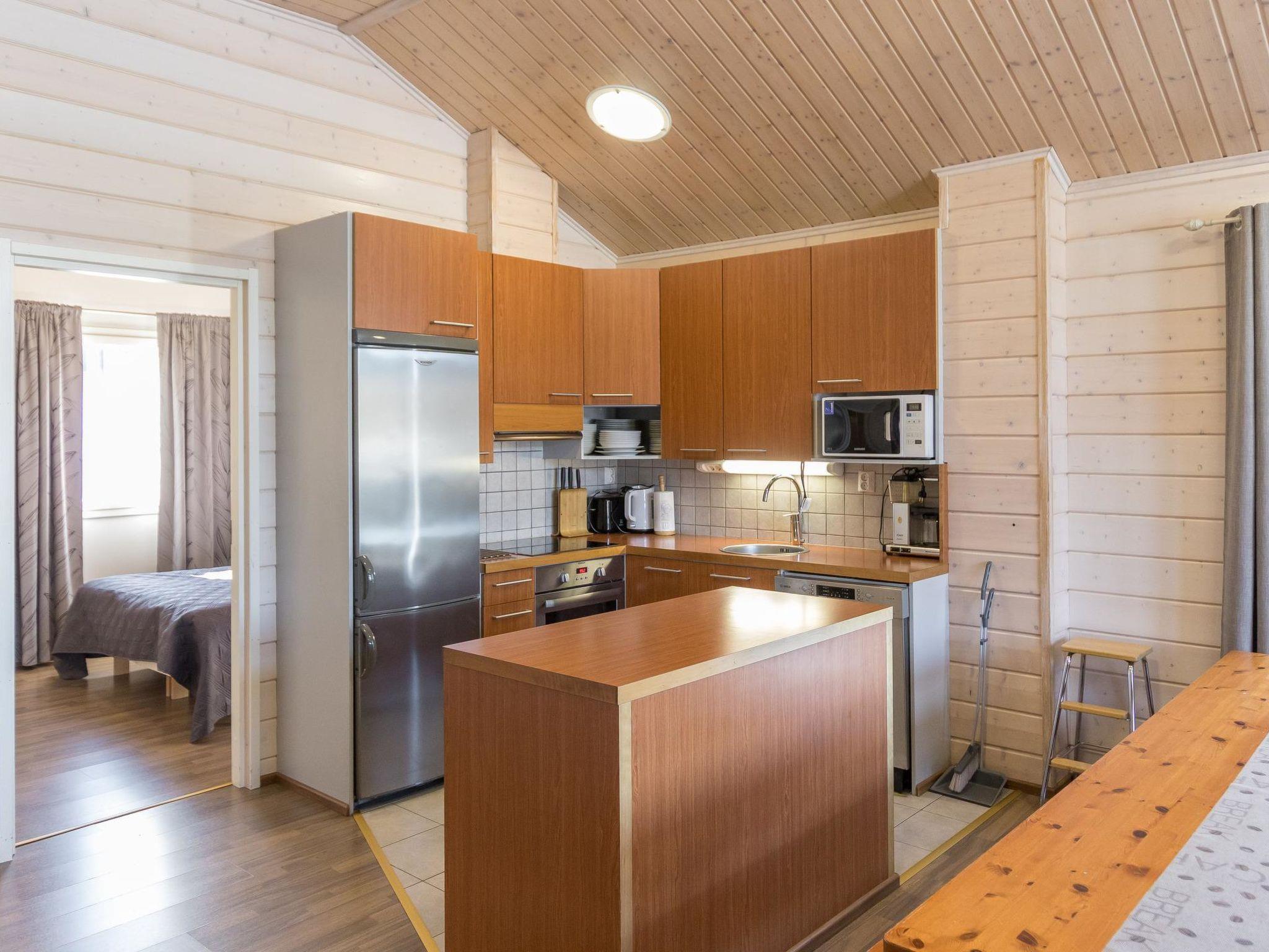 A semi-detached house located in the Ukkohalla tourism centre, 125 m2, for 10-14 persons, built in 2009.Premises on 2 floors; on the first floor 2 bedrooms, livingroom, sauna, shower room/toilet, terrace. On the second floor kitchen, 1 bedroom, shower room/toilet, terrace. Storage, fireplace. View to the lake Syväjärvi. In 2 bedrooms 2 beds/room, double bed in one bedroom, sofa-bed and 2 extra beds in the livingroom and in the kitchen. Price includes 1 bag of firewood. Extra wood from caretaker 10 euroa/bag.
