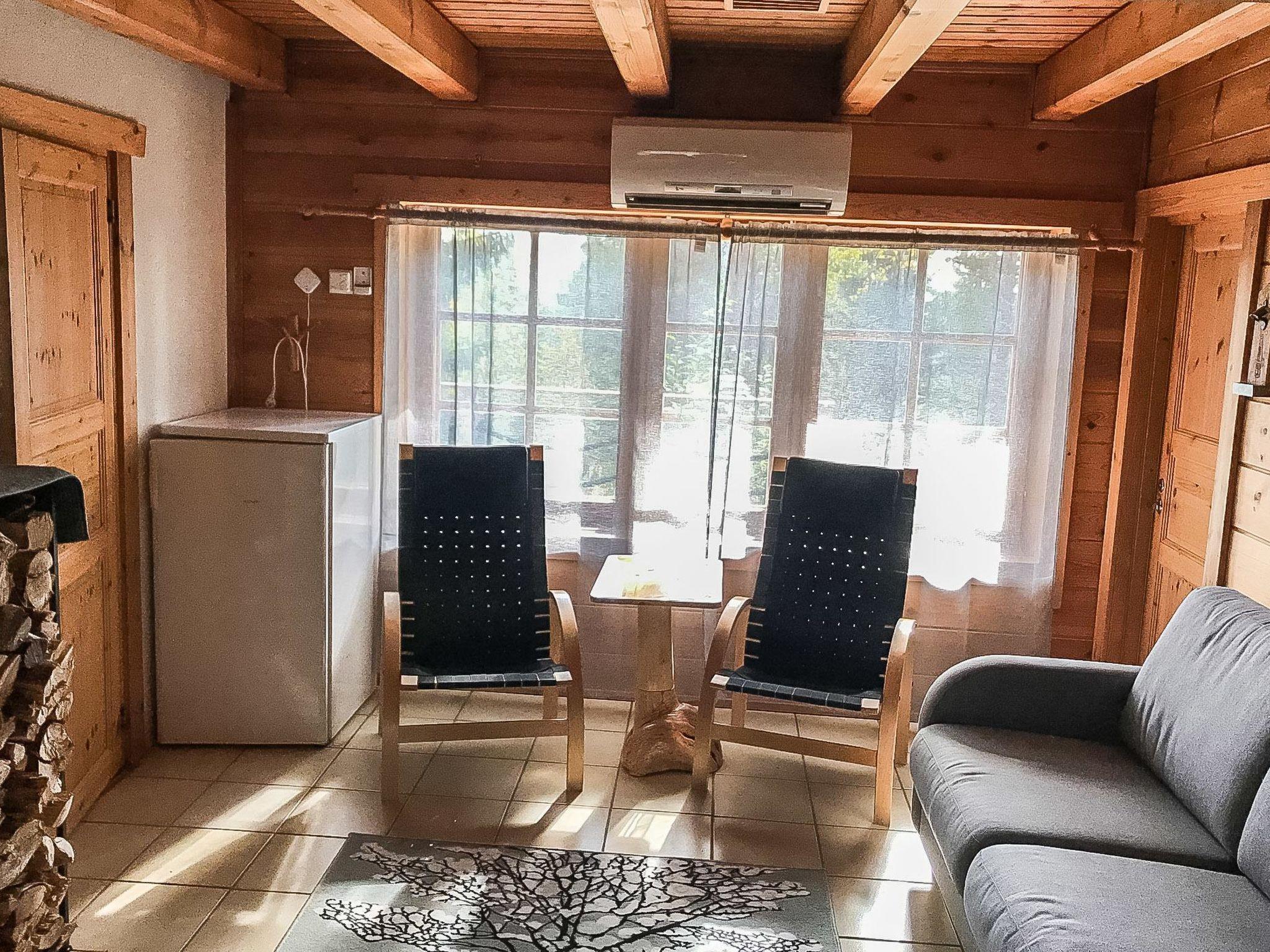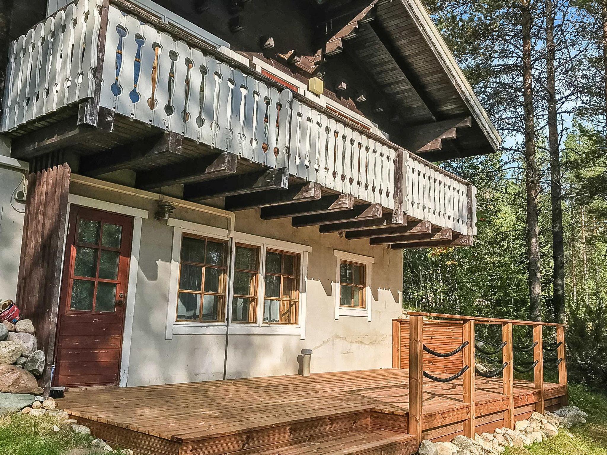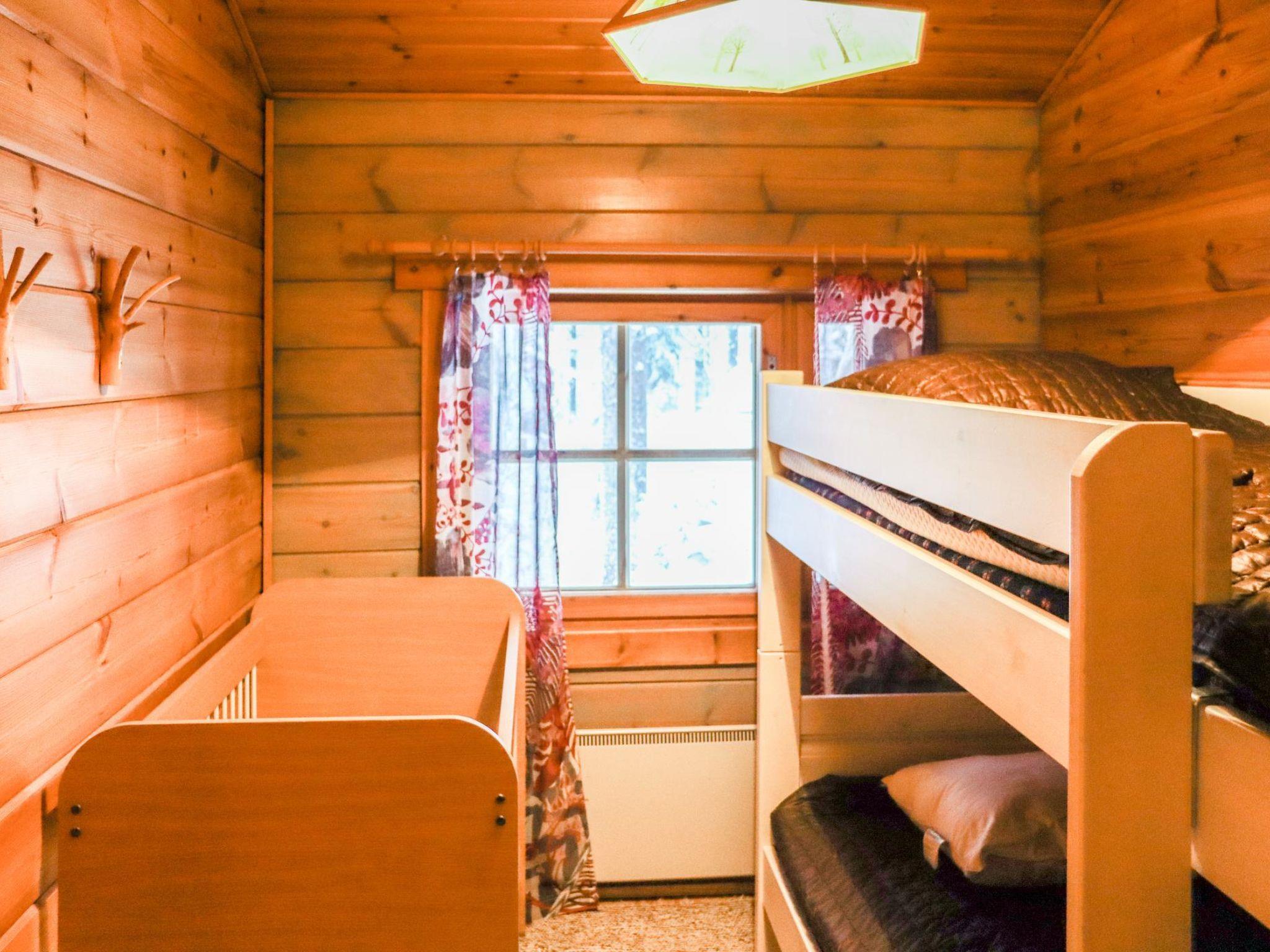 Log cottage located in the Ukkohalla tourism centre, 90m2 + loft 12m2, built in 1991. Premises on 3 floors, kitchen, 2 bedrooms, sleeping corner, loft, sauna, shower room/toilet, separate toilet, room with a fireplace including a bed and a sofa-bed, storage, balcony, terrace, porch, fireplace and firewoods.. A double bed in the other bedroom and a bunk bed in the other, 2 mattresses on the loft, a sofa-bed in the living room.