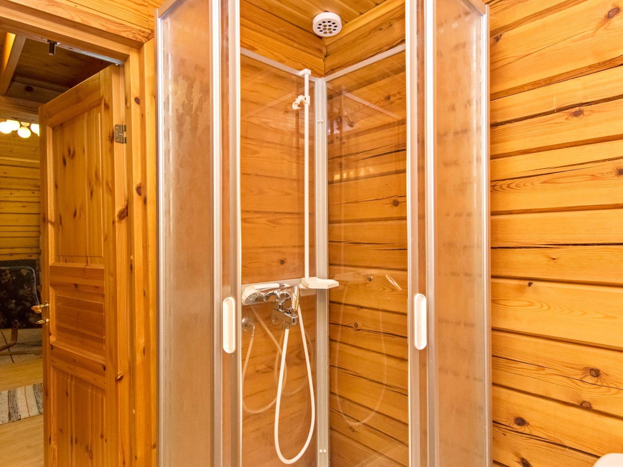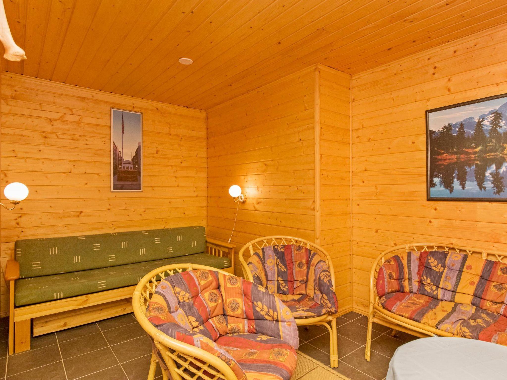 On the ground floor, bedroom (8 m², no window) with two beds, 2 WC, dressing room, 3 showers, large electric sauna.