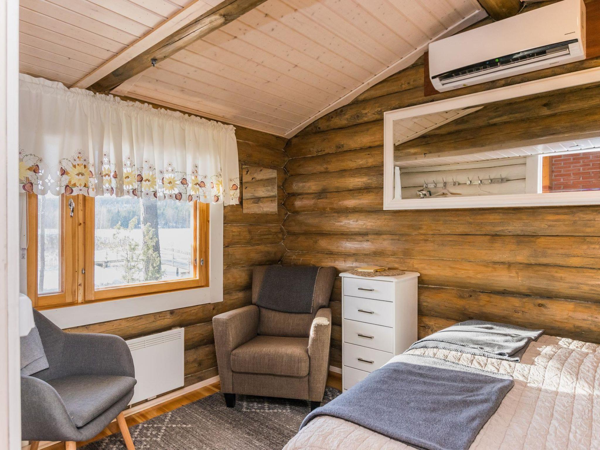 47 km to the east of Lahti, Lake Iso Valkjärvi 20 m, shallow, gradually deepening sandy bottom, a pier, and rowing boat. The log cabin, built in 1995 and renovated in 2023, living room/kitchen, bedroom with a double bed and two armchairs, a WC corner with a curtain, and a sauna with wood-burning sauna stove and shower.