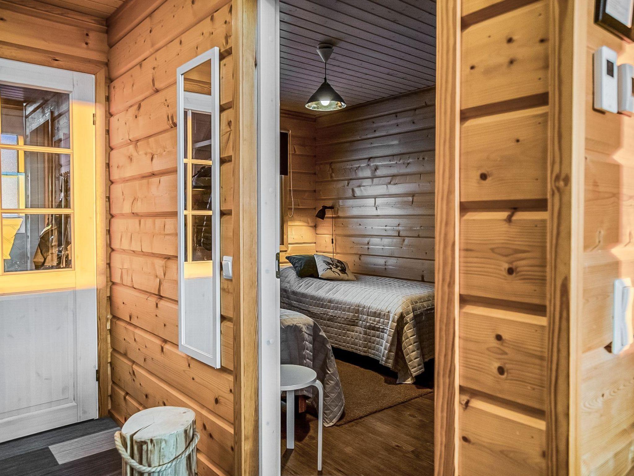 The 75-square-meter log cabin has a kitchen/livingroom, 2 bedrooms, a loft, a washroom, a sauna, a toilet, a utility room and a terrace. A ski maintenance room with a lubrication rack and iron and a carport.