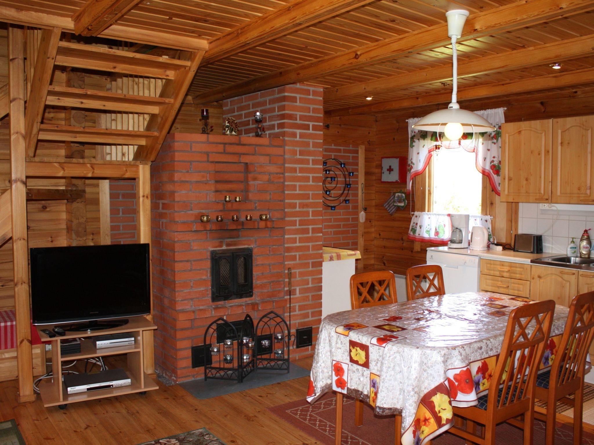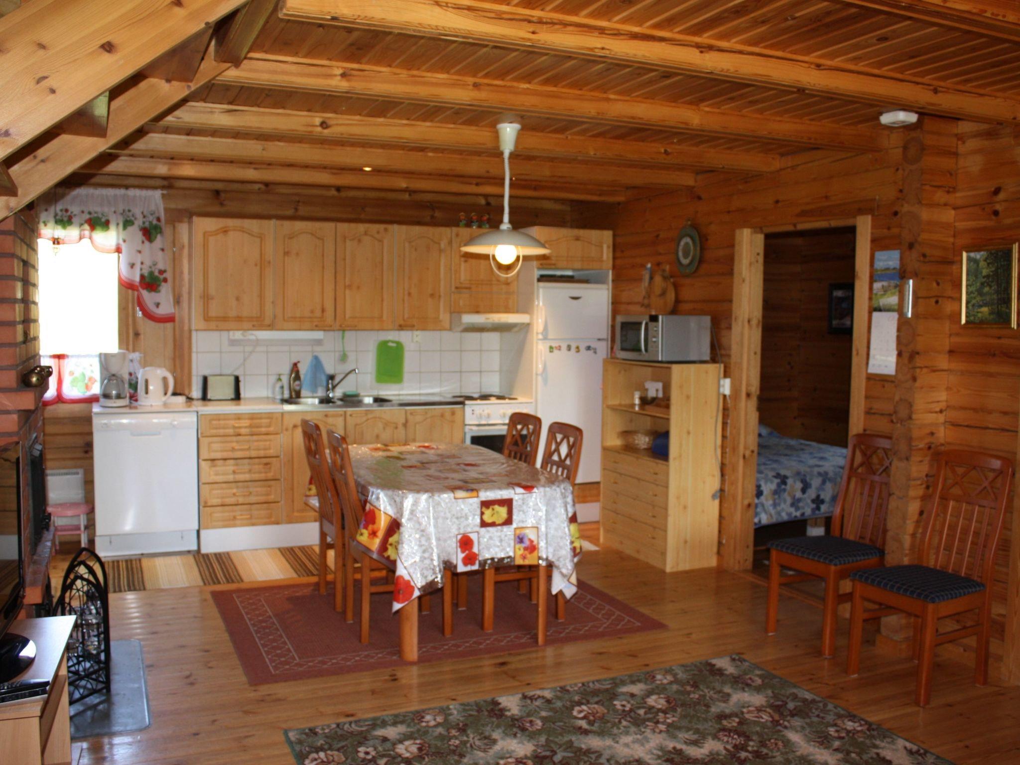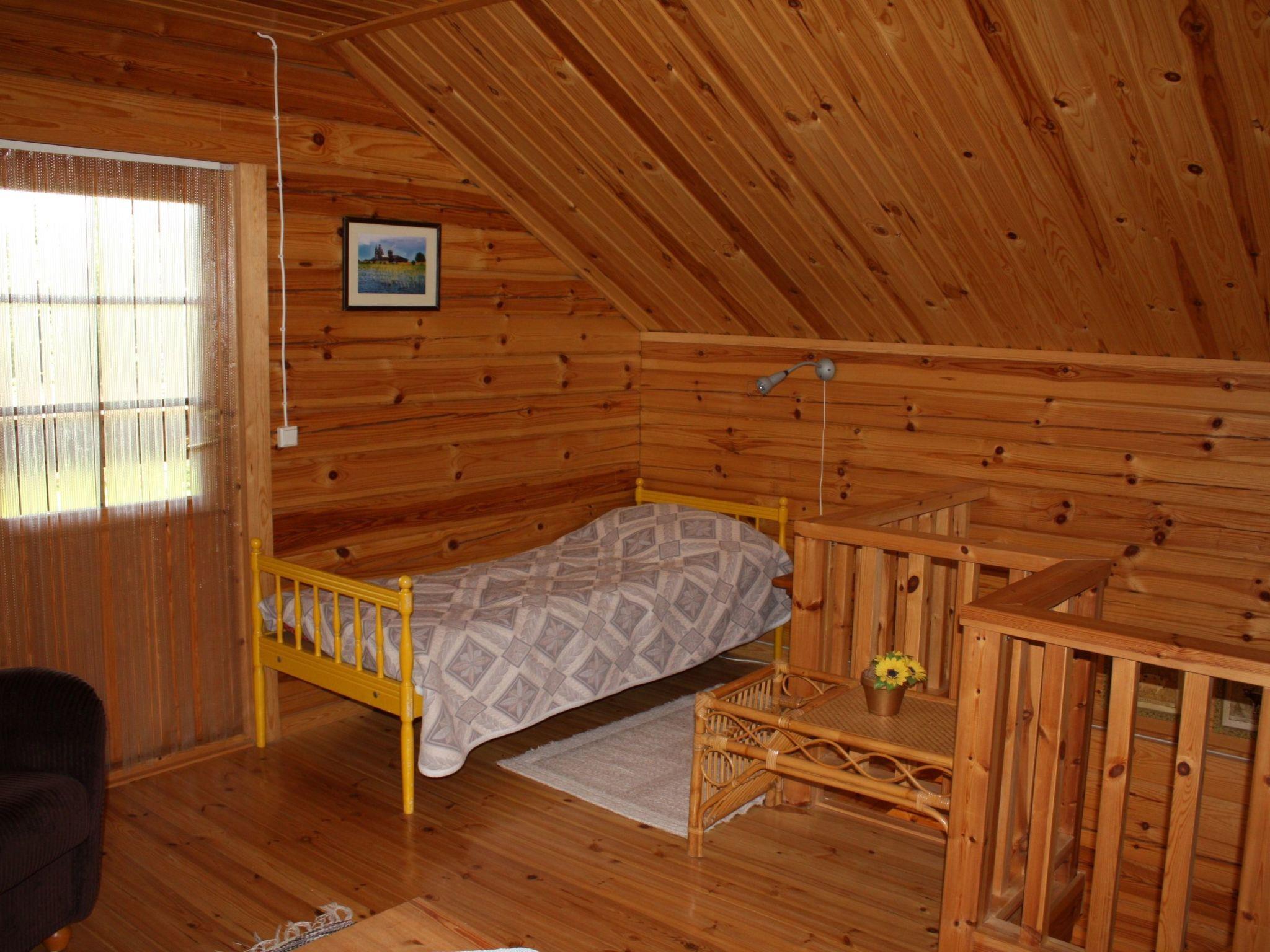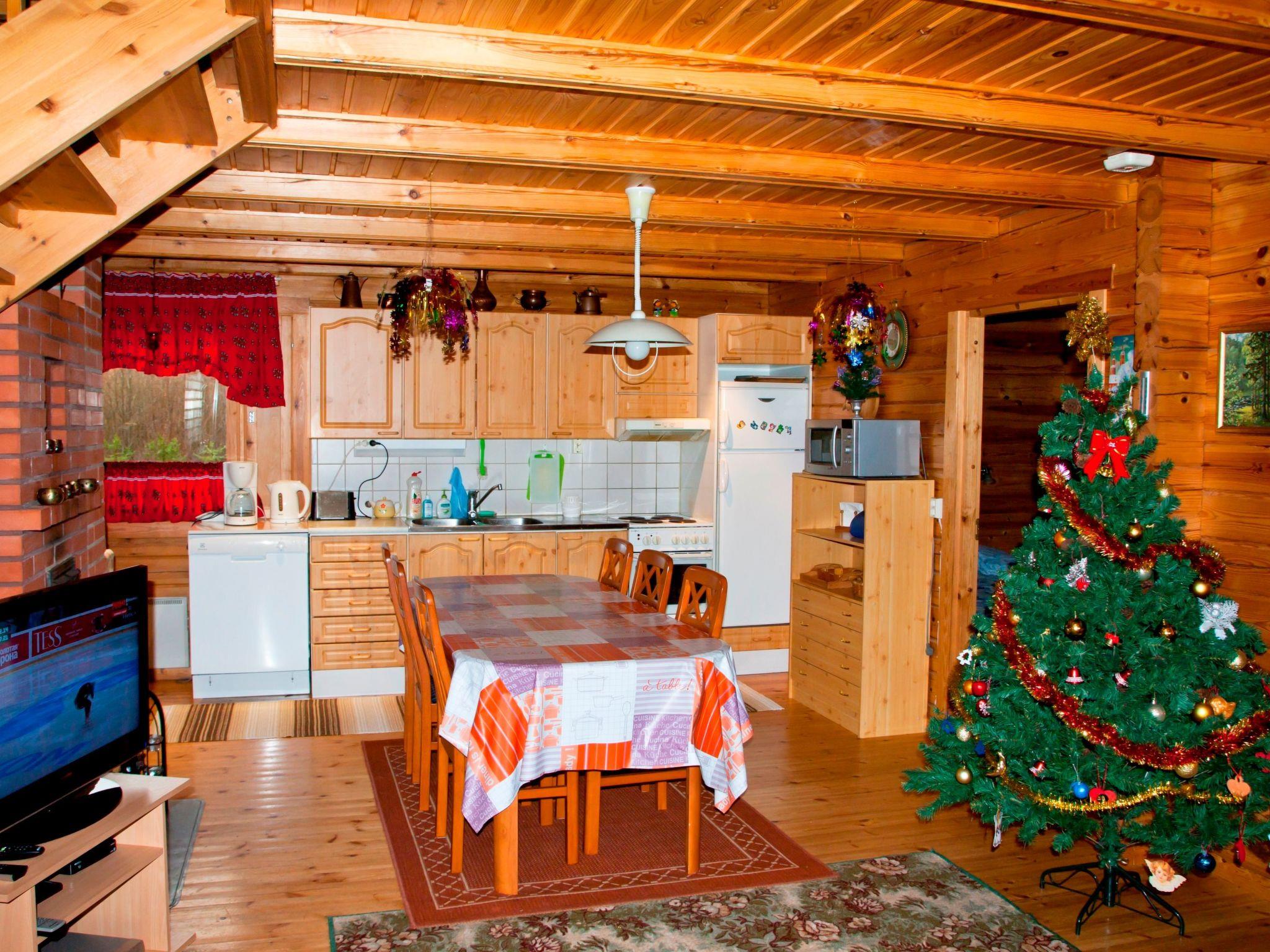 The cottage has 3 separate bedrooms on the first floor -two (two beds), one on the second floor (three beds). In the hall on the second floor of a sofa bed, a single bed, an extra refrigerator. Additionally there are cot and mattress. There is a cot and highchair. Maximum capacity - 8 people (two for an additional fee). Living room with sofas, fireplace, TV, CD, Wi-Fi. Fully equipped appartment: large dining table, fridge-freezer, microwave, dishwasher, coffee maker, toaster, dishes for 12 people and other kitchen utensils, electric stove, wood stove. On the ground floor toilet, wood-fired sauna, shower, washing machine. The cottage has hot and cold water, electric heating (+ wood-burning fireplace and stove). There is a vacuum cleaner, ironing board and iron.
