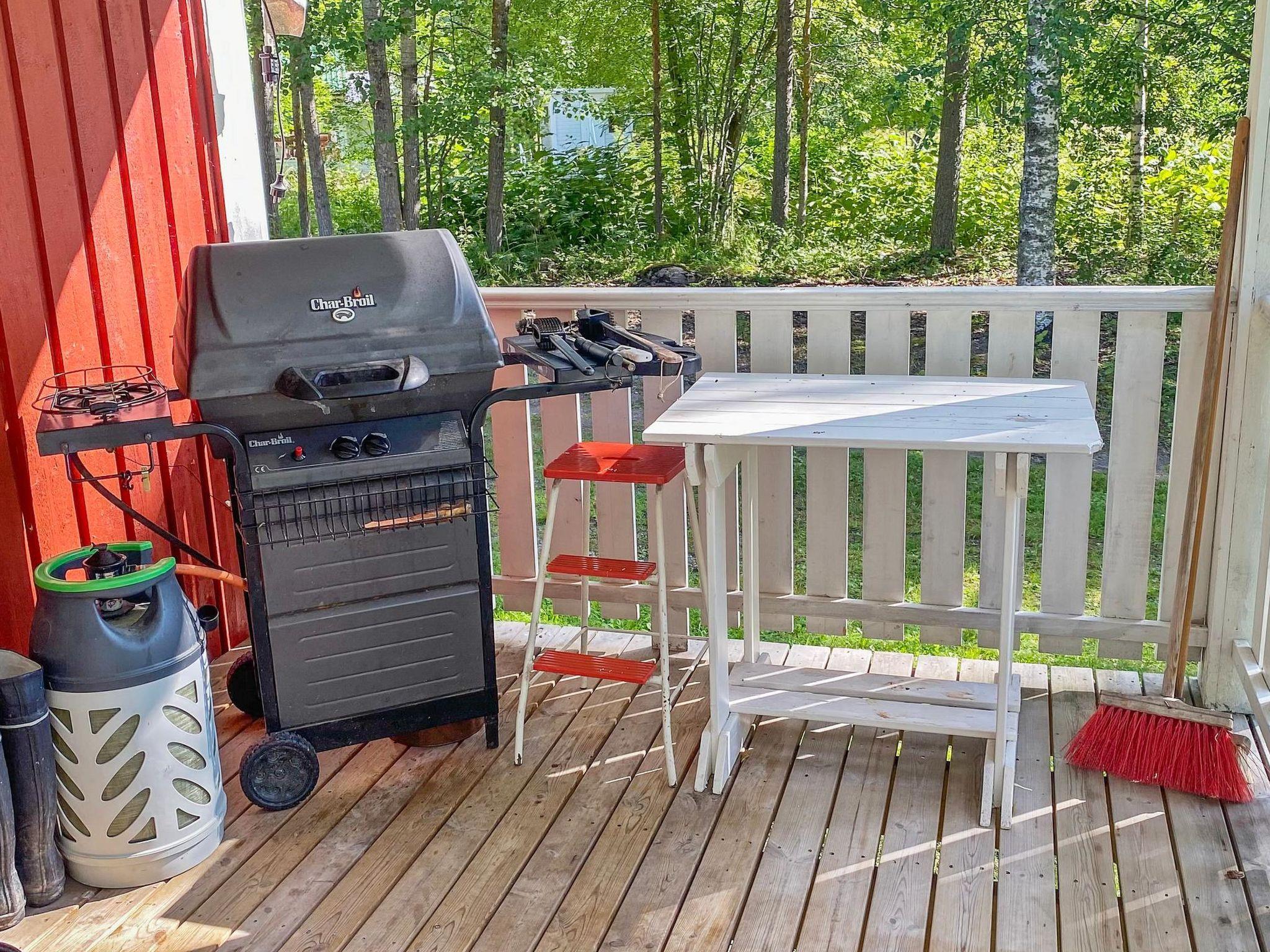 Board-cladded cabin (built in 2013), features a well-equipped kitchen, a living room with a heat-storing fireplace, and two sofa beds (one 130x190 cm and the other 140x180 cm). In the bedroom, there is a 120x200 cm bed and a 80x200 cm bed. The cabin includes a bathroom with a shower and WC, an electric sauna, and an additional separate WC. The terrace has a gas grill and patio furniture, providing a great view of the lake. Please note that the upper floor of the building is not accessible to customers.