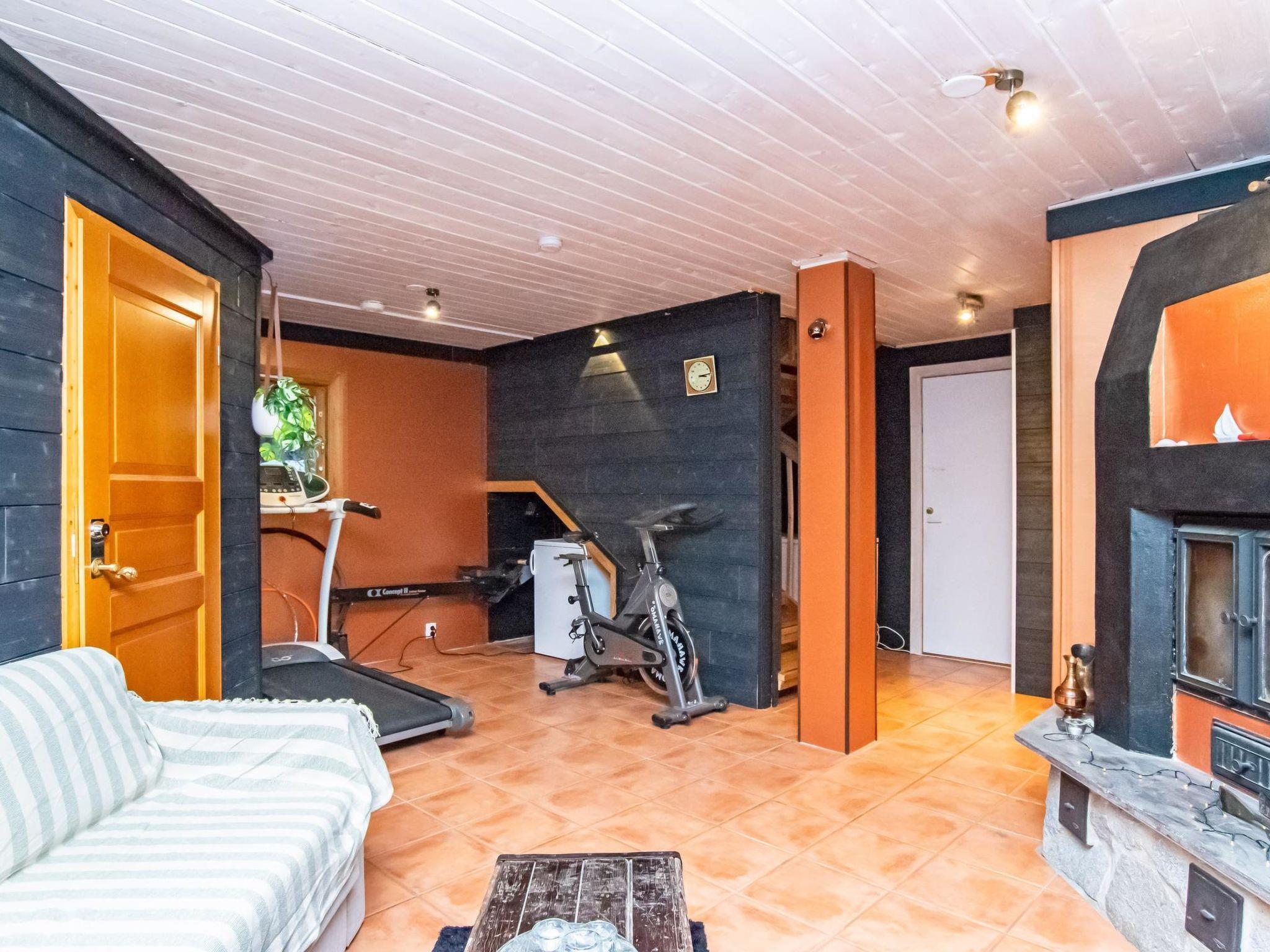 The ground floor includes a fireplace room, a small gym, an infrared sauna, a dressing room, a bathroom with a bathtub and two showers, an electric sauna, and a WC.
