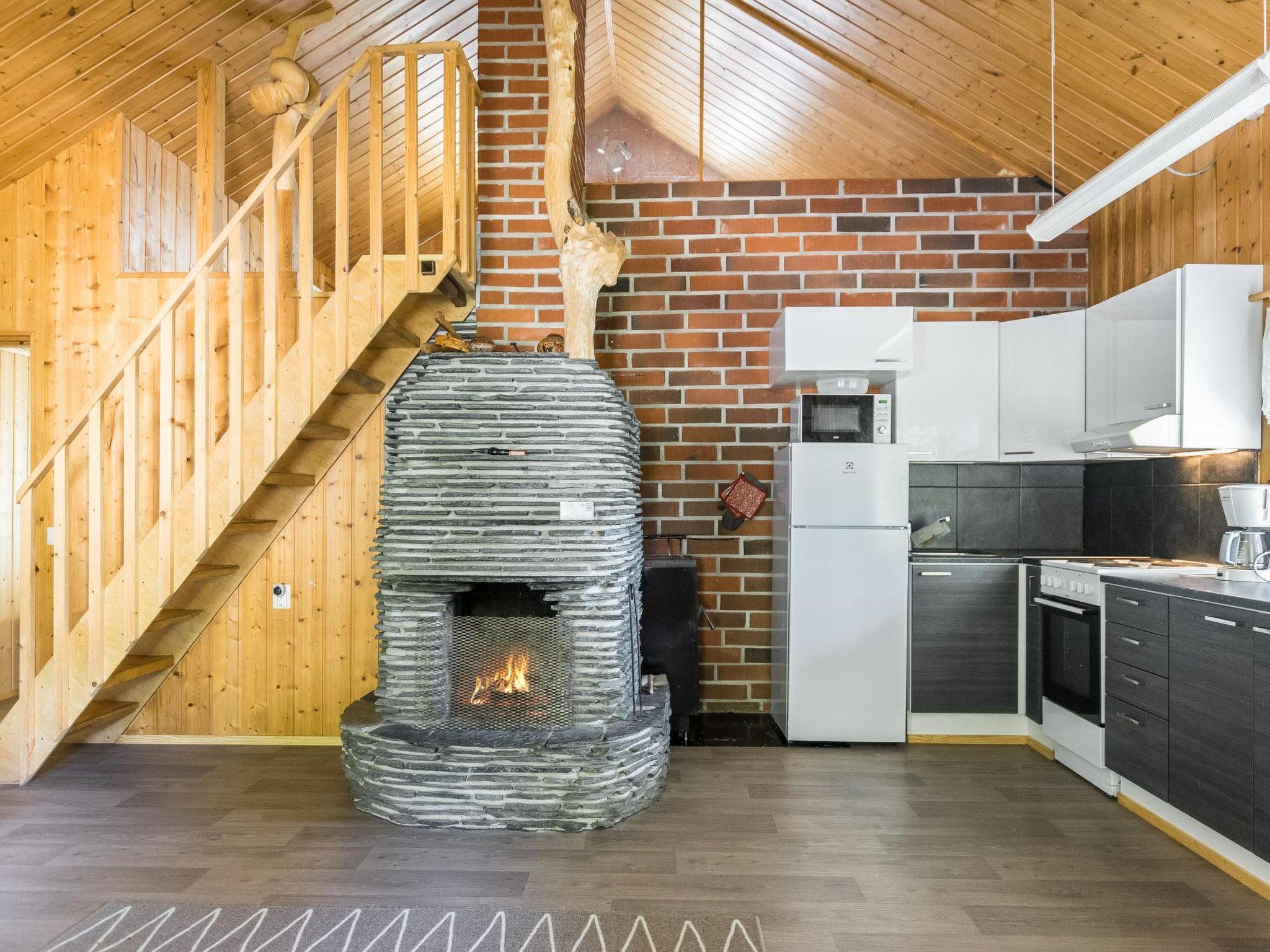 Wooden cottage (1989), living room with sofa bed (140x200 cm bed for two), soapstone fireplace, TV and kitchenette. The bedroom has a double bed, two lofts, one of which has one 120x200 cm bed, the other loft, which is accessed by steep stairs, has one 80x200 cm bed.