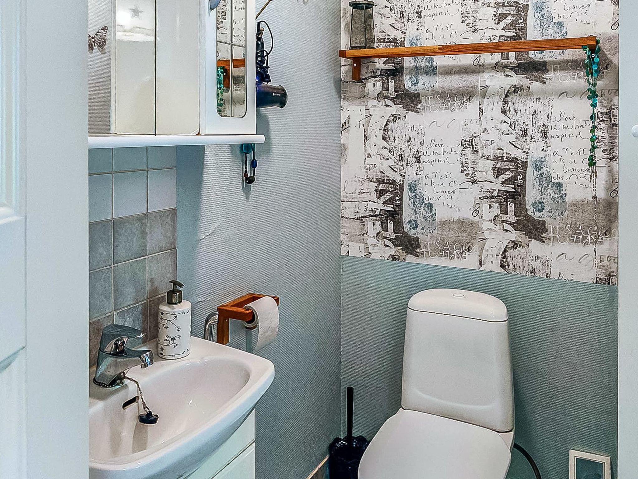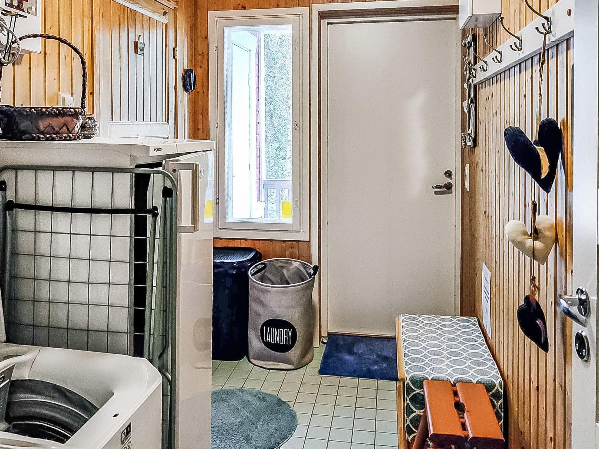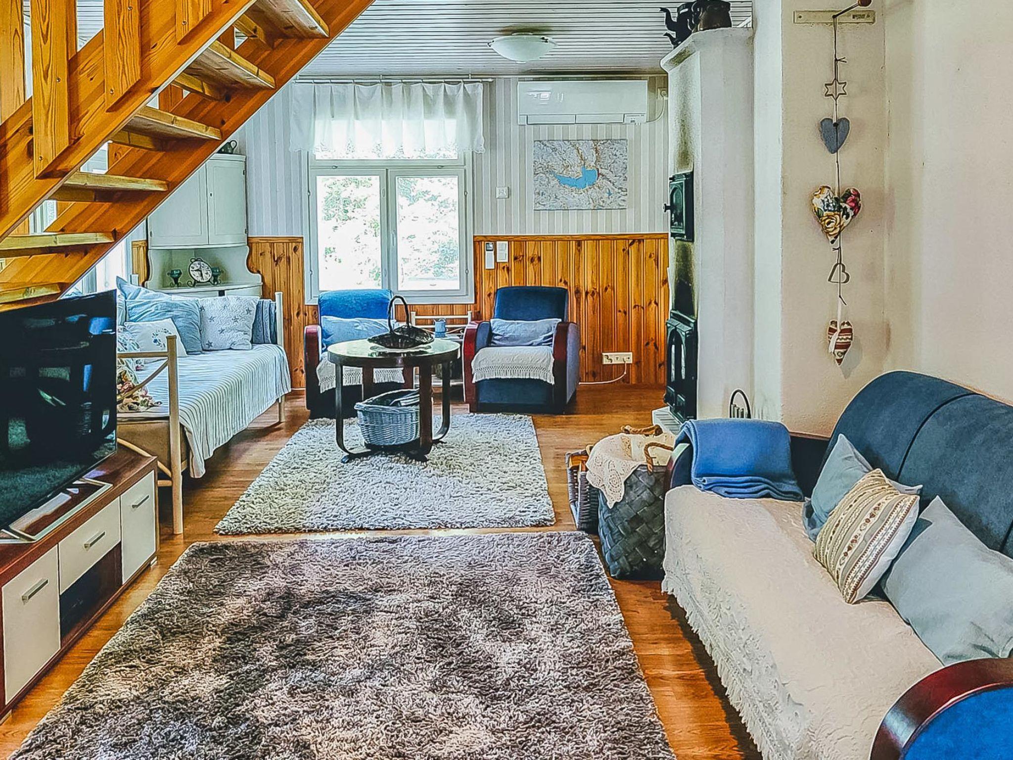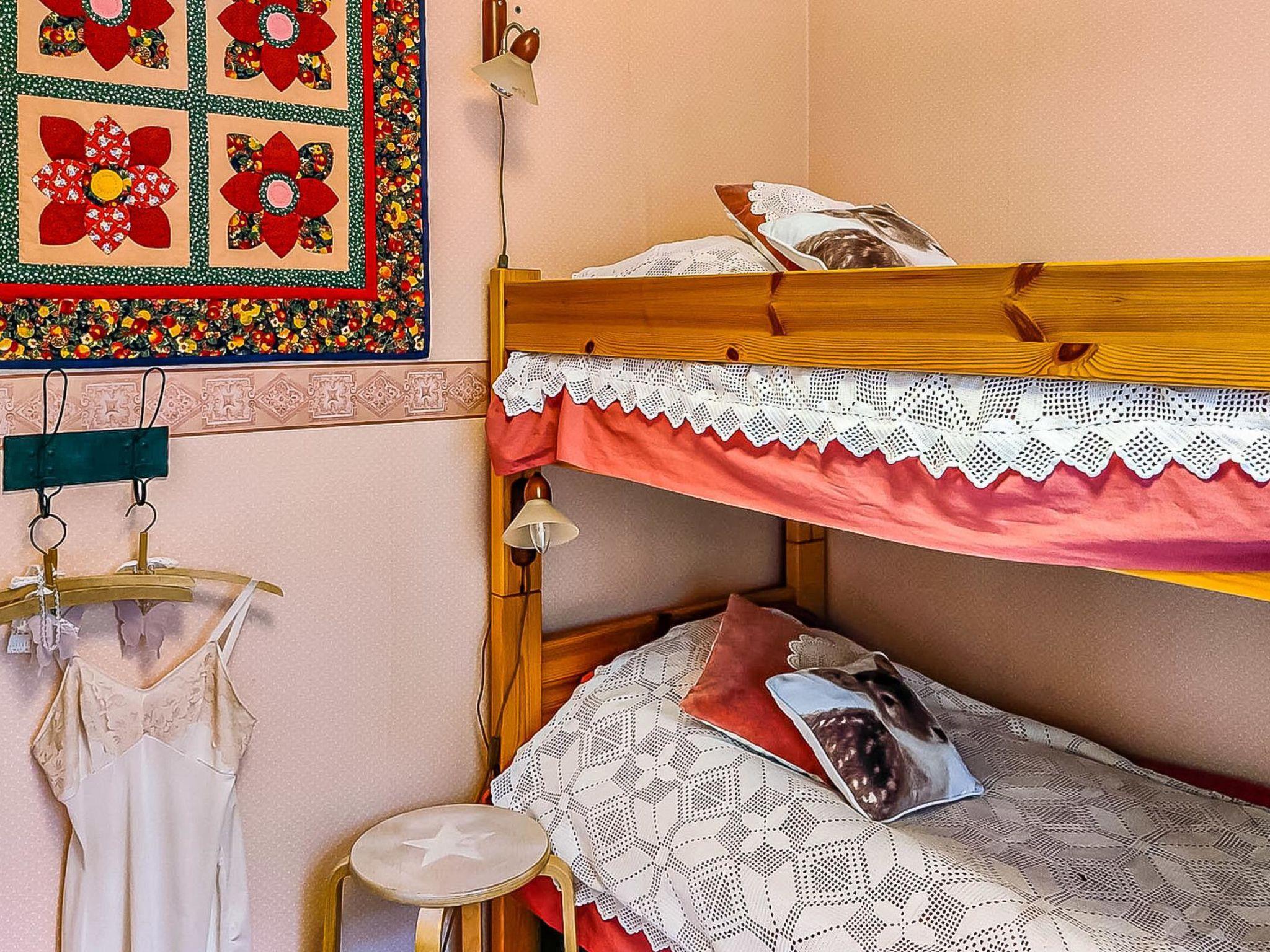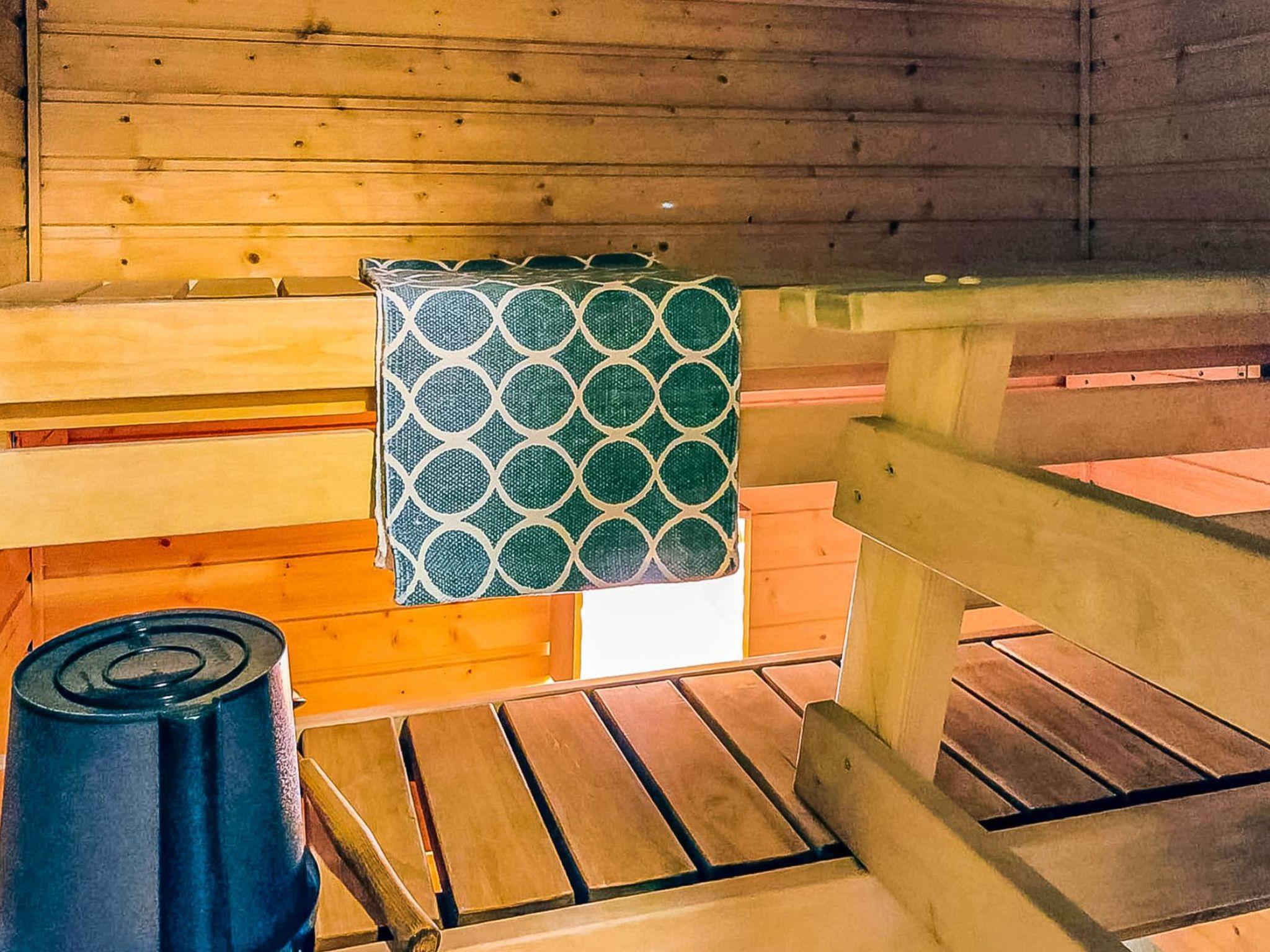 Downstairs: living room (sofa bed for 1 person), kitchen, one bedroom with a double bed, one bedroom with a bunk bed, air source heat pump, separate toilet, wash room and electric sauna.