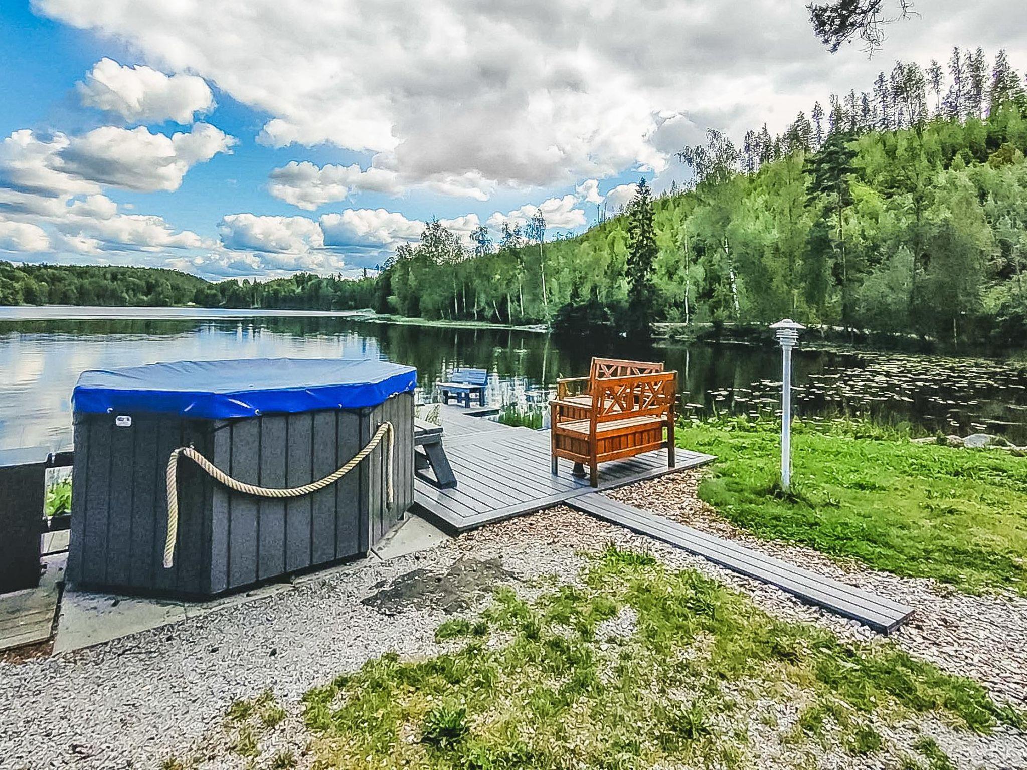 Hot tub is easy to fill by water pump from the lake. Please notice! Hot tub has to be filled first and after that heating can start.