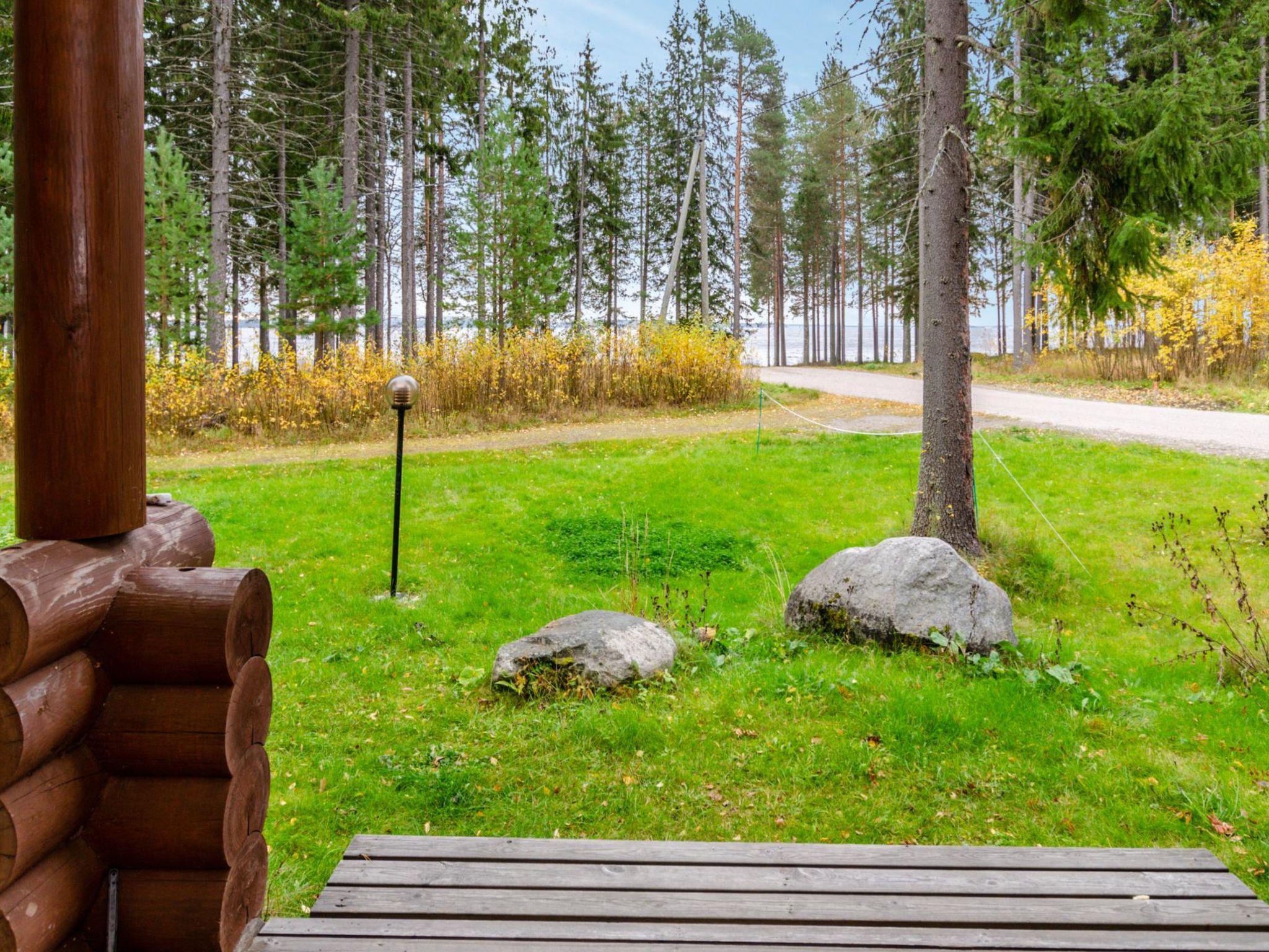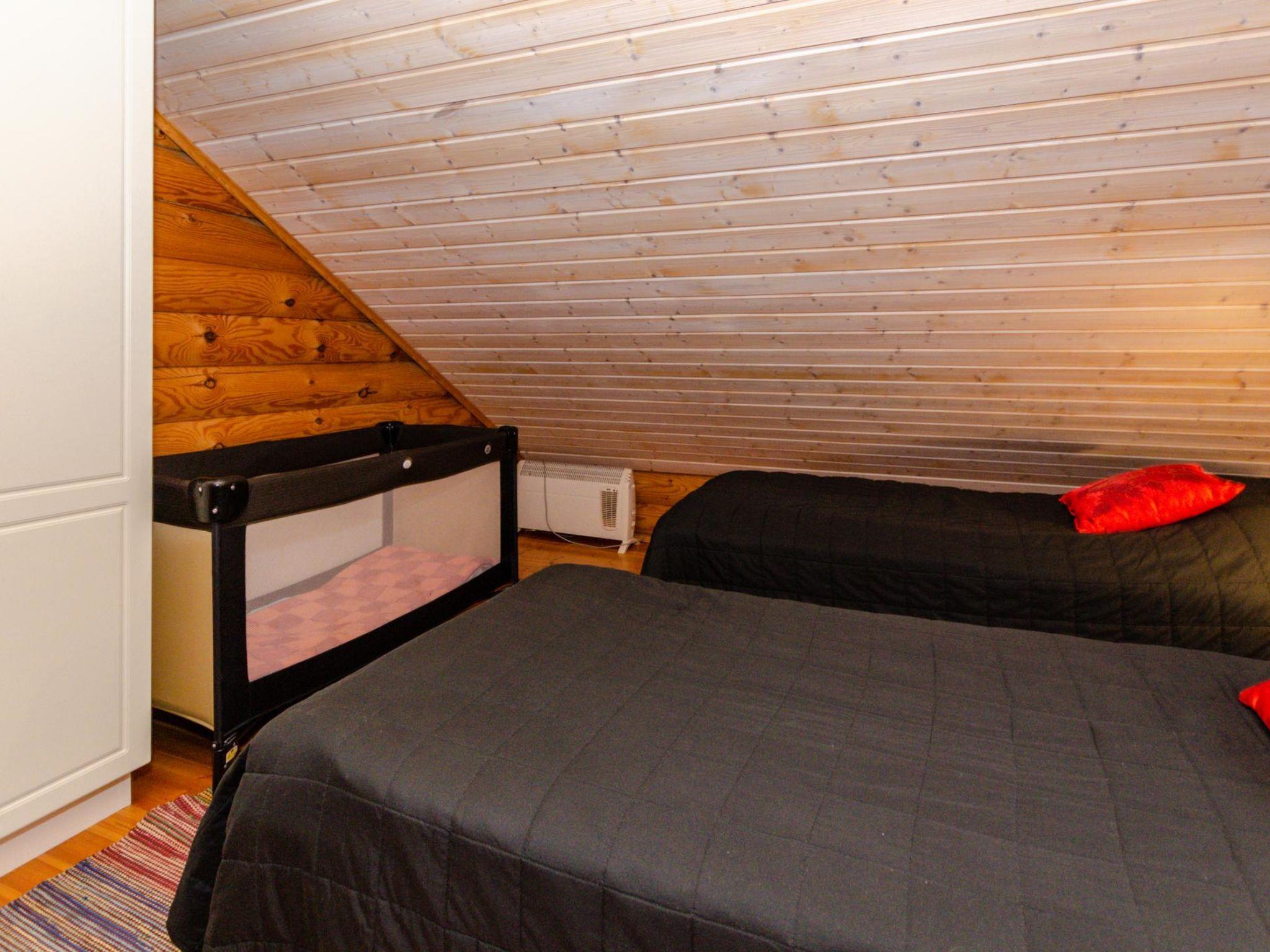 70 km north of Joensuu, L.Pielinen (871,2 km2) 60 m, common shore with shallow sand bottom and some rocks (also lot of boats on the beach), own boat. Log cottage 2001, kitchen-living room, bedroom with double bed, sleeping gallery with convertible sofa, bedroom with three beds, washing room, sauna (elec. stove), terrace, balcony.