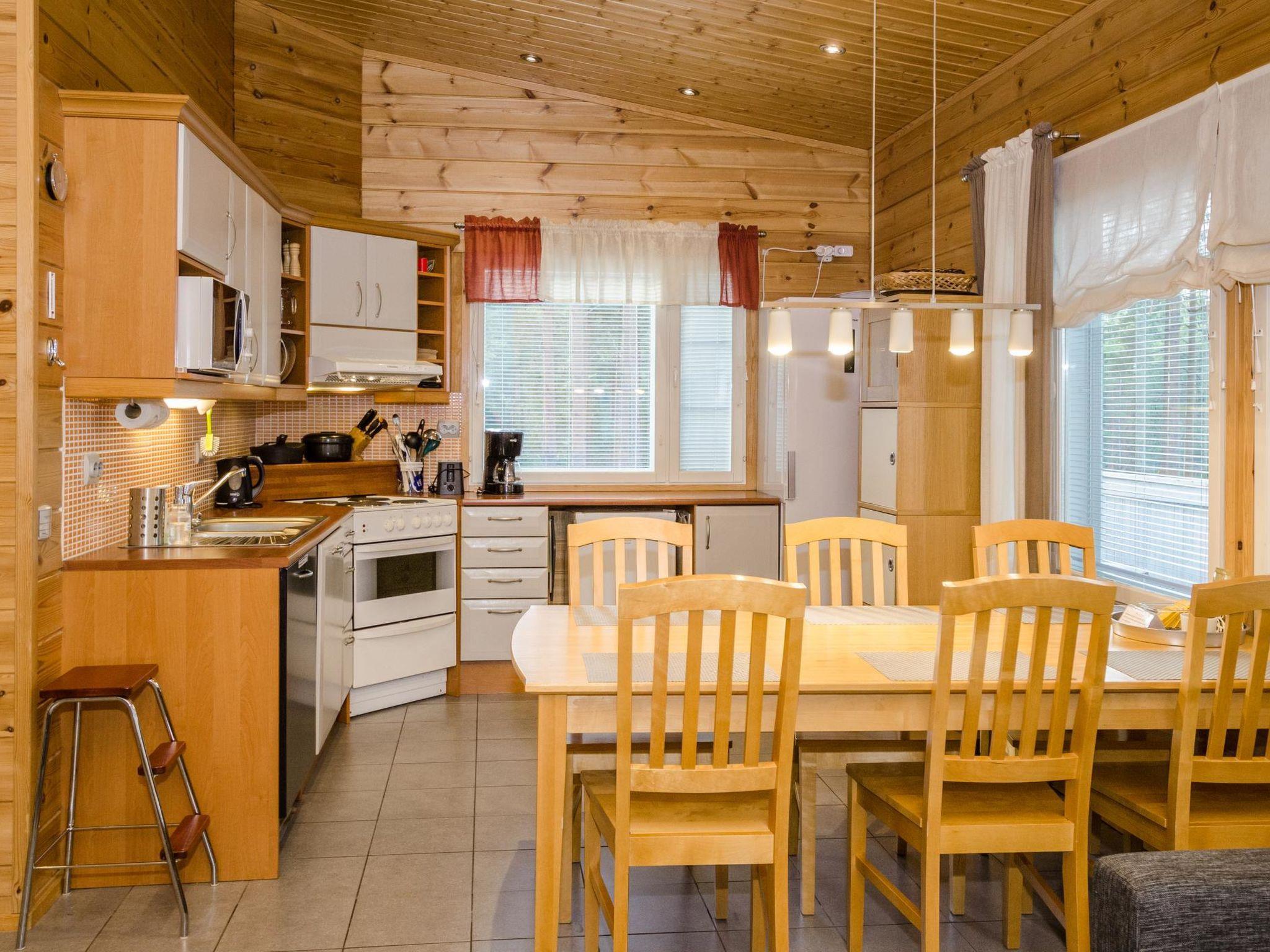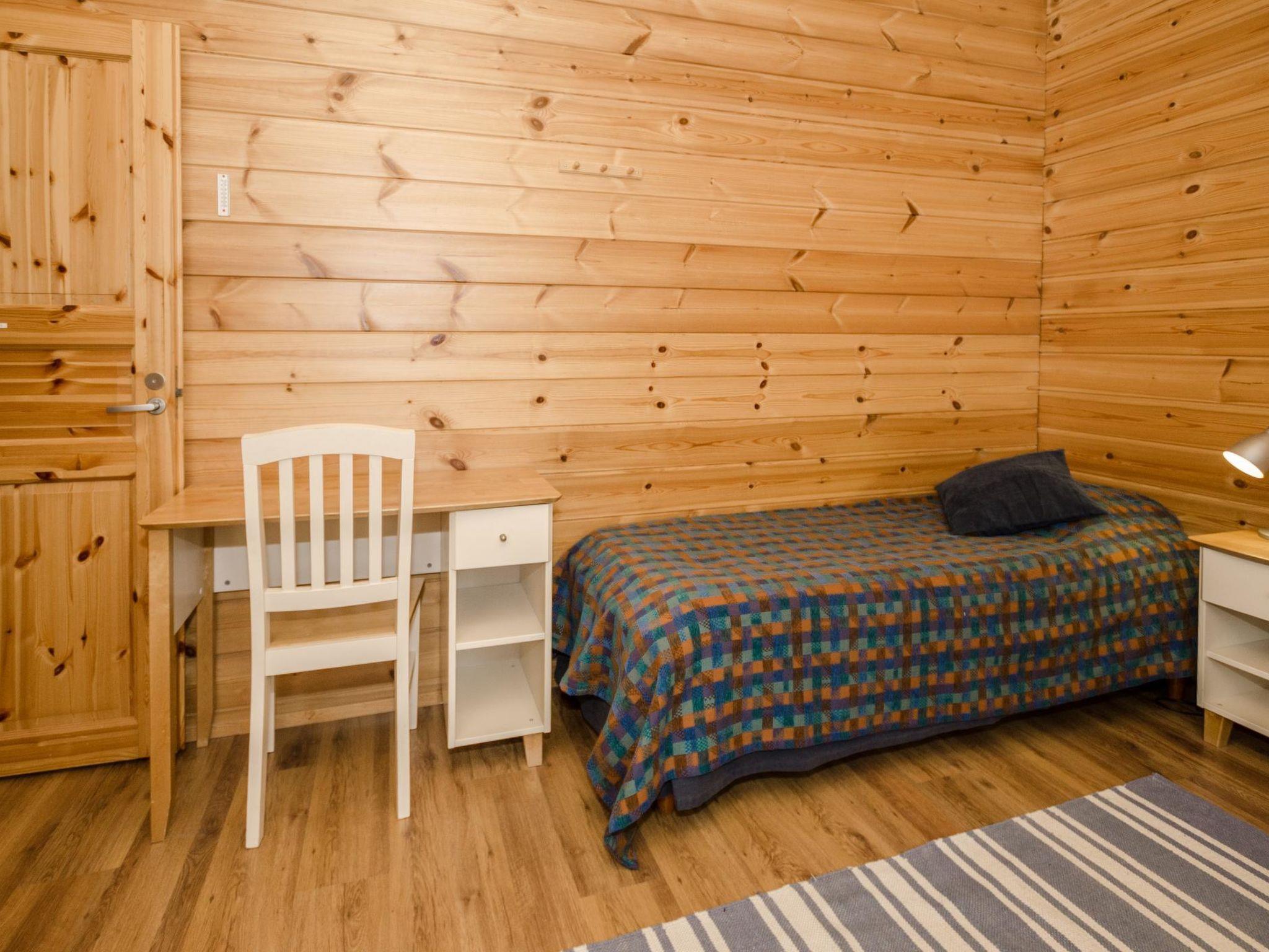 77 km north of Joensuu, Lake Pielinen 40 m (871,2 km2) own beach with deep bottom and some rocks and partly sand, own boat and jetty. Log cottage 2006, kitchen-living room with divan, bedroom with two beds, bedroom with two beds, bedroom with two beds, household room – dressing room, washroom, sauna (elec. stove) and terrace. There is an own, separate sauna by the shore with dressing/fireplace room. Steep slope to the shore. Water for the sauna fetched from the lake.