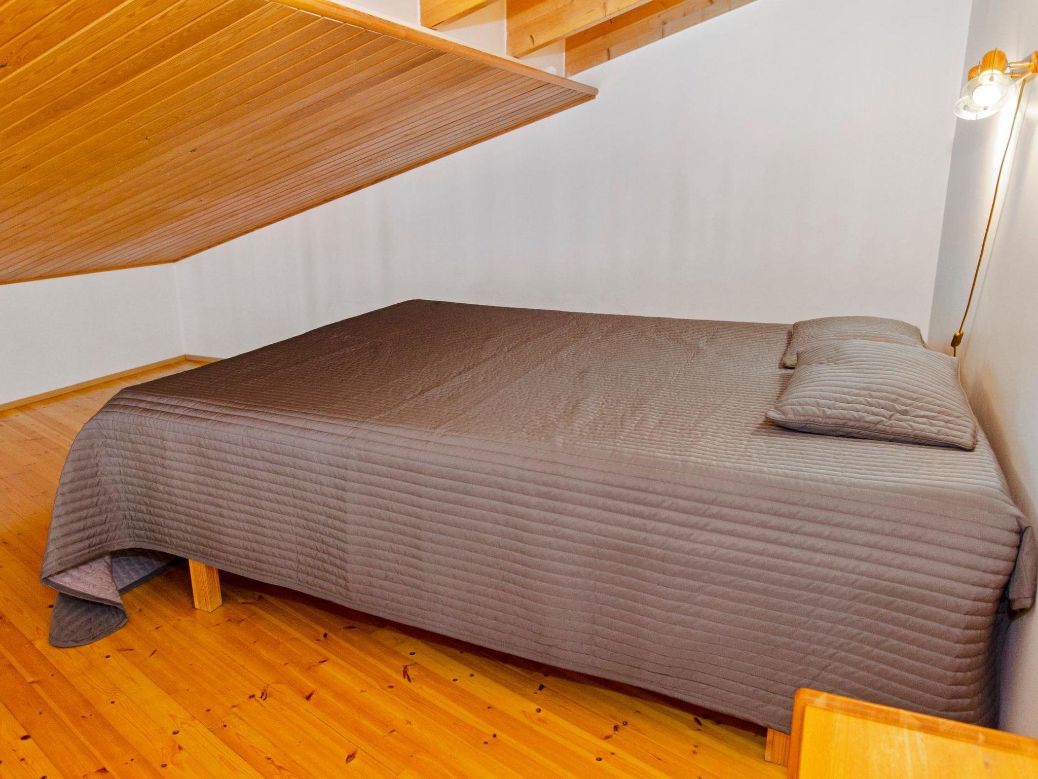 77 km north of Joensuu, Pond Käränkälampi 60 m (length 2 km, width 1,5 km), common beach with shallow hard sand bottom, jetty. Wooden/concrete flat 1990, kitchen-living room, bedroom with double bed, bedroom with bunk bed, bedroom with convertible sofa, sleeping gallery with two beds, dressing room, washroom, sauna (elec. stove), veranda and balcony.