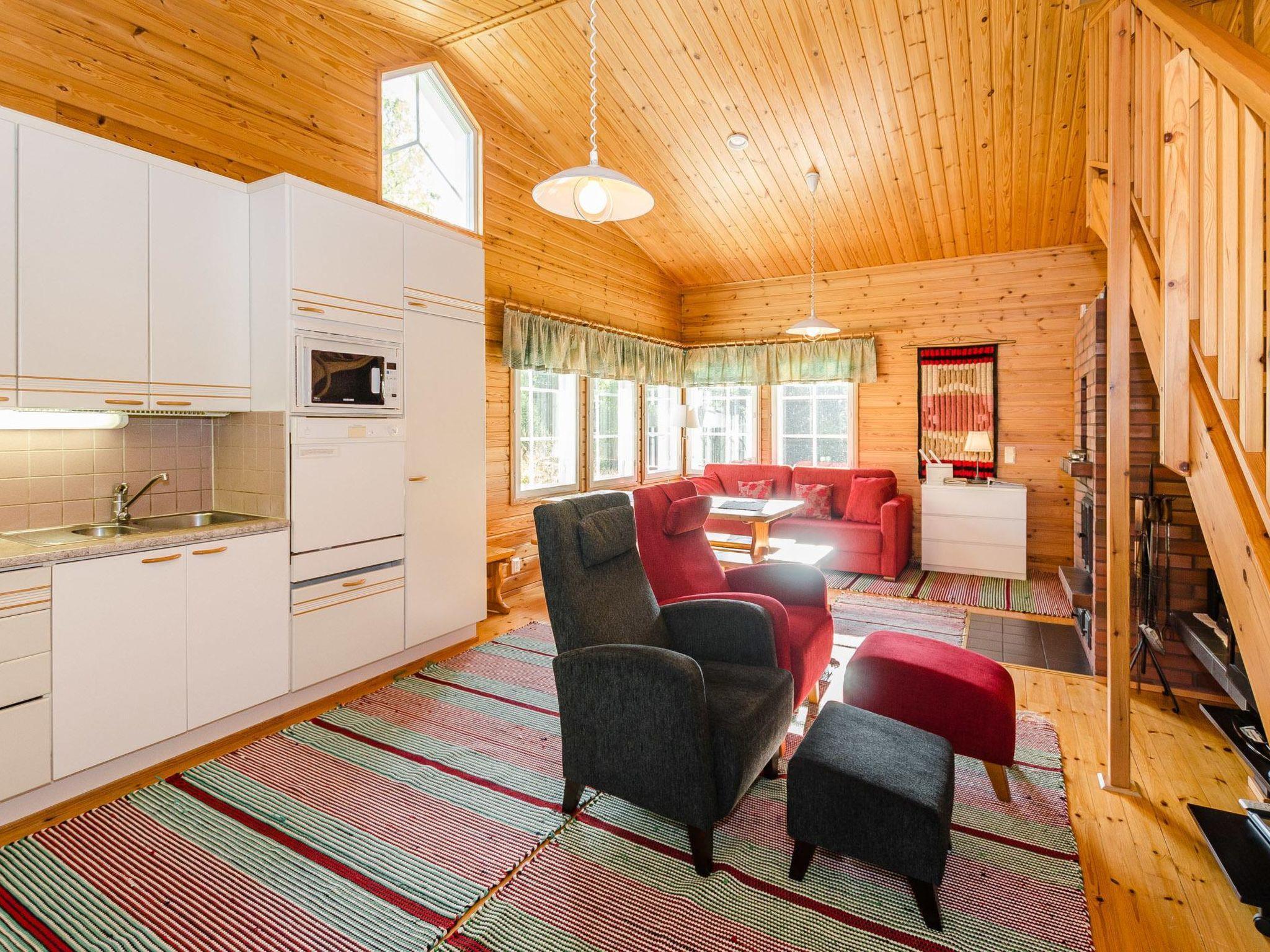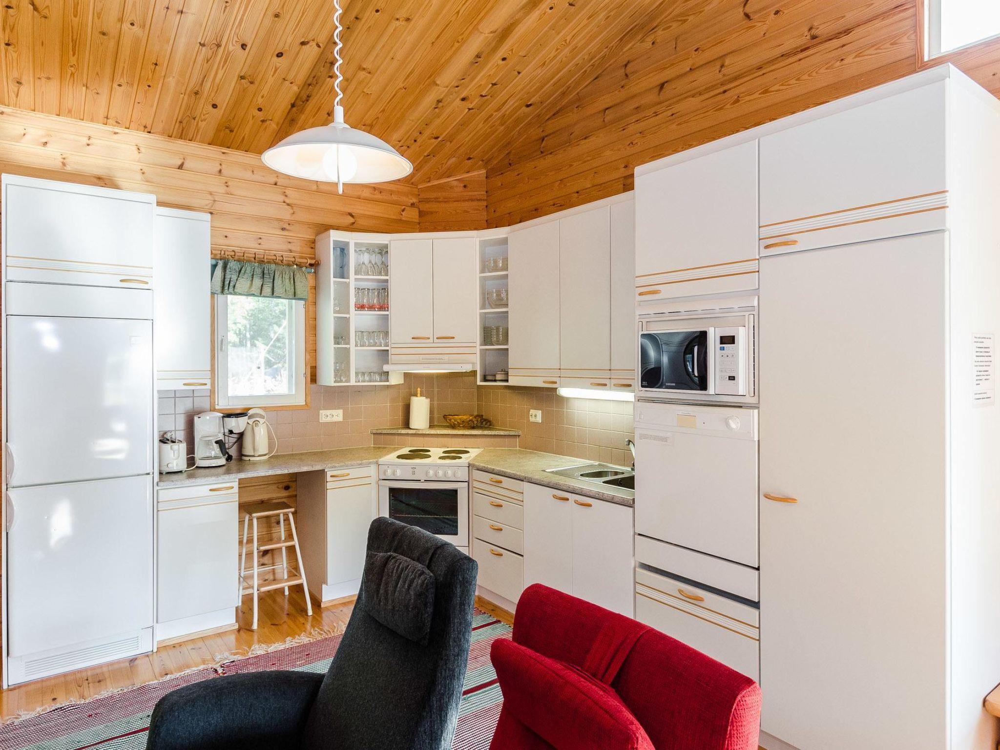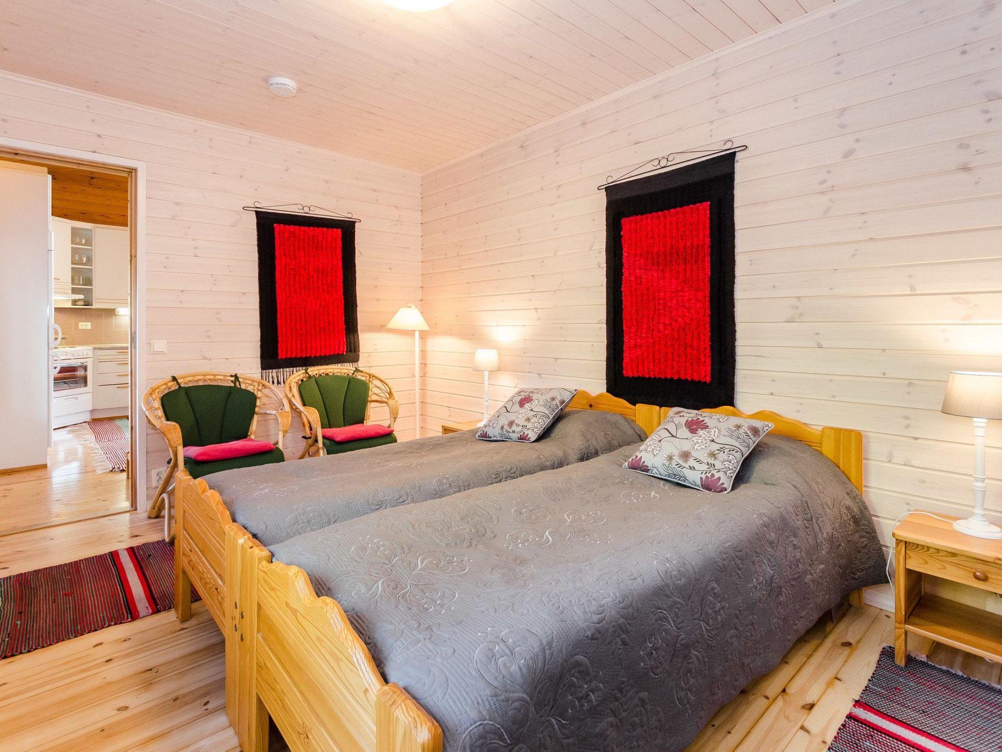 75 km north of Joensuu, artificial pond 30 m. Wooden cottage 1997, kitchen-living room with convertible sofa, bedroom with 2 bed, upstairs bedroom with 4 beds, dressing room, washroom, sauna (both elect. and wooden heated stove), terrace and balcony.