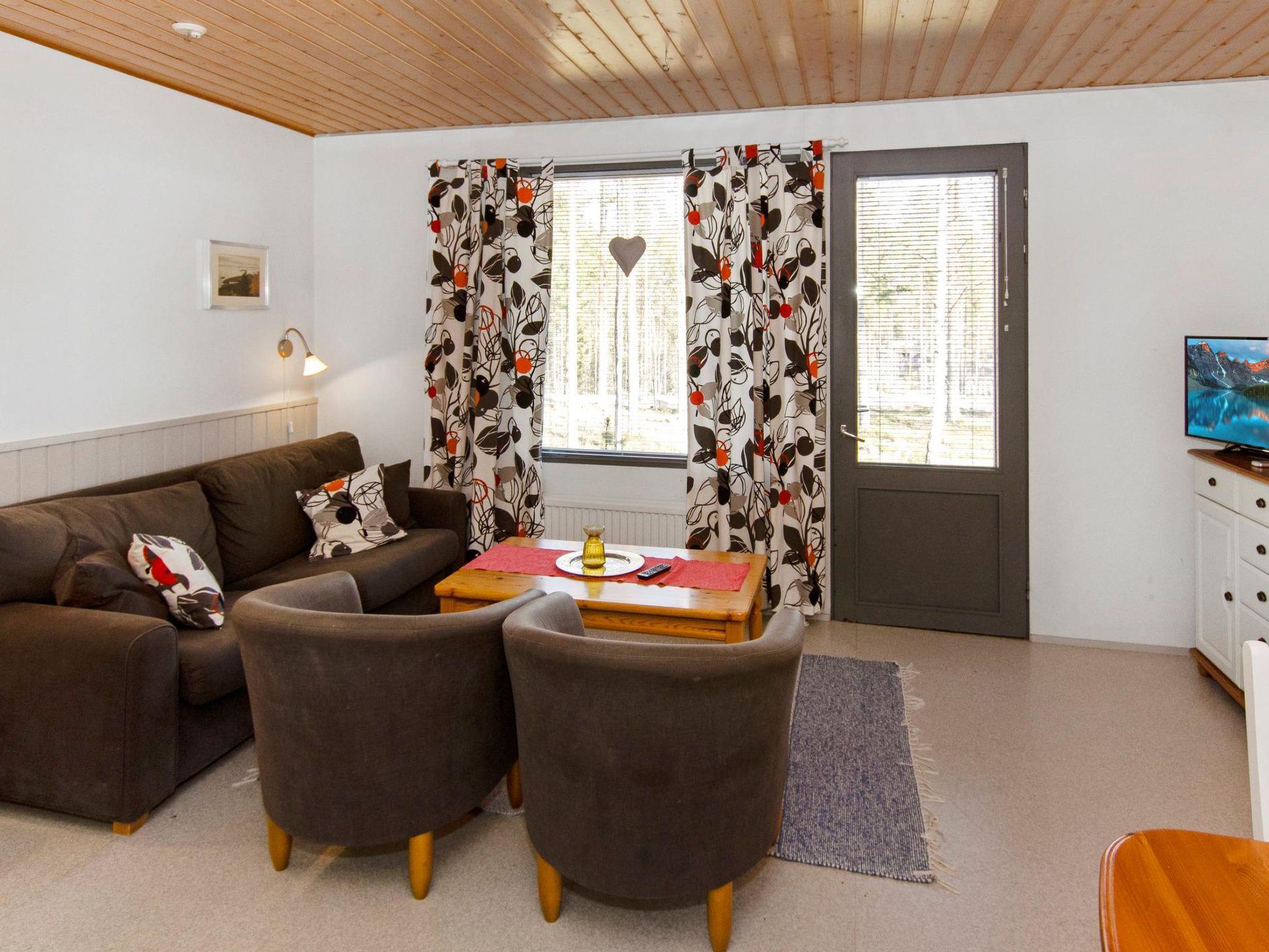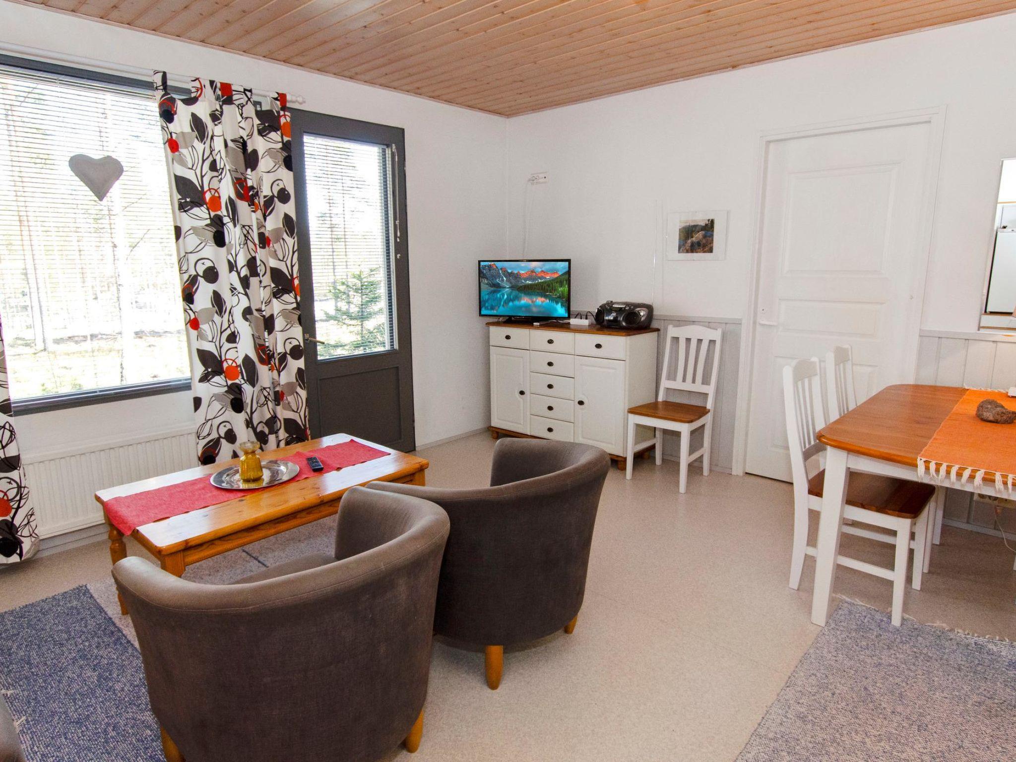 77 km north of Joensuu, Pond Käränkälampi 180 m (length 2 km, width 1,5 km). Wooden row house flat, renovated 1990, kitchen-living room, bedroom with double bed, small bed room with 2 beds, washroom, sauna (elec. stove), small terrace.