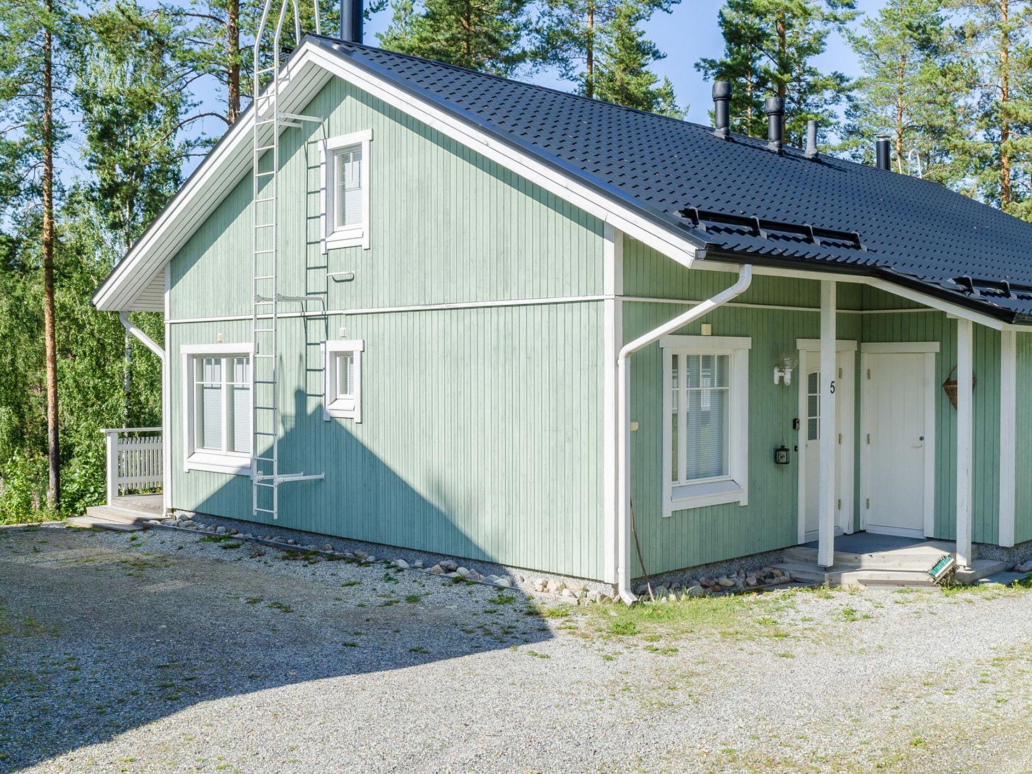 77 north of Joensuu, Pond Käränkälampi 70 m (length 2 km, width 1,5 km), common beach with shallow bottom 70 m along the path down to the beach, Wood semi-detached house 2005, kitchen-living room, small bedroom (with door, but no window) with double bed, bed room with 2 beds, sleeping gallery with double bed (width 120 cm) and 2 beds, washroom, sauna (elec. stove) and terrace.