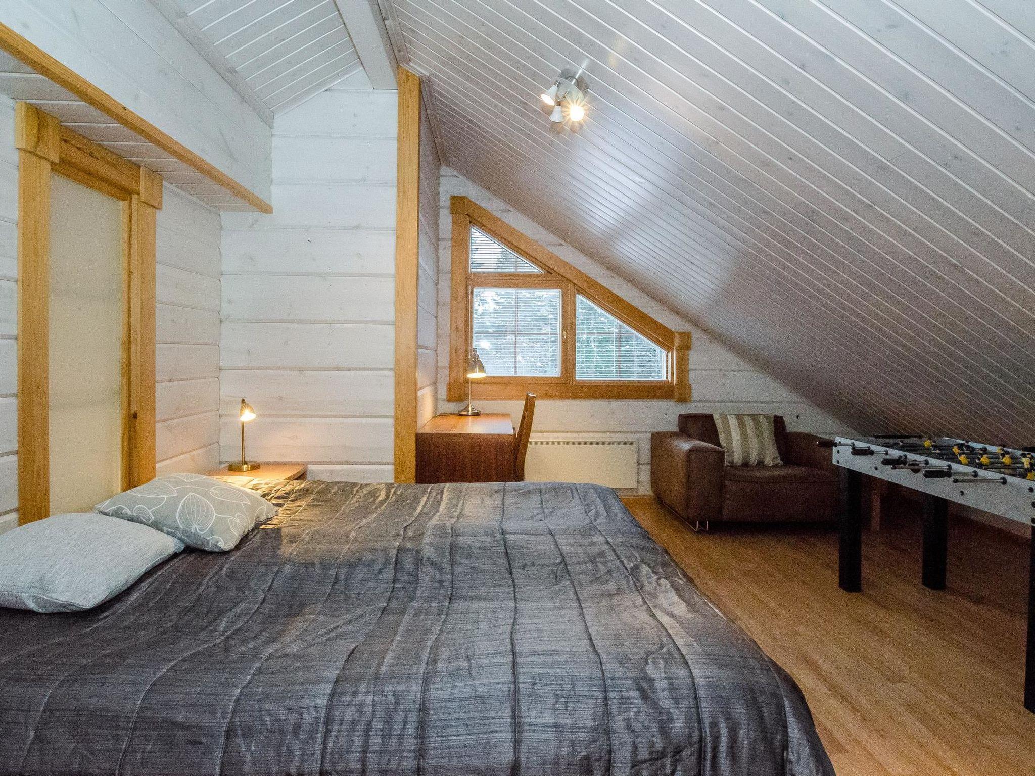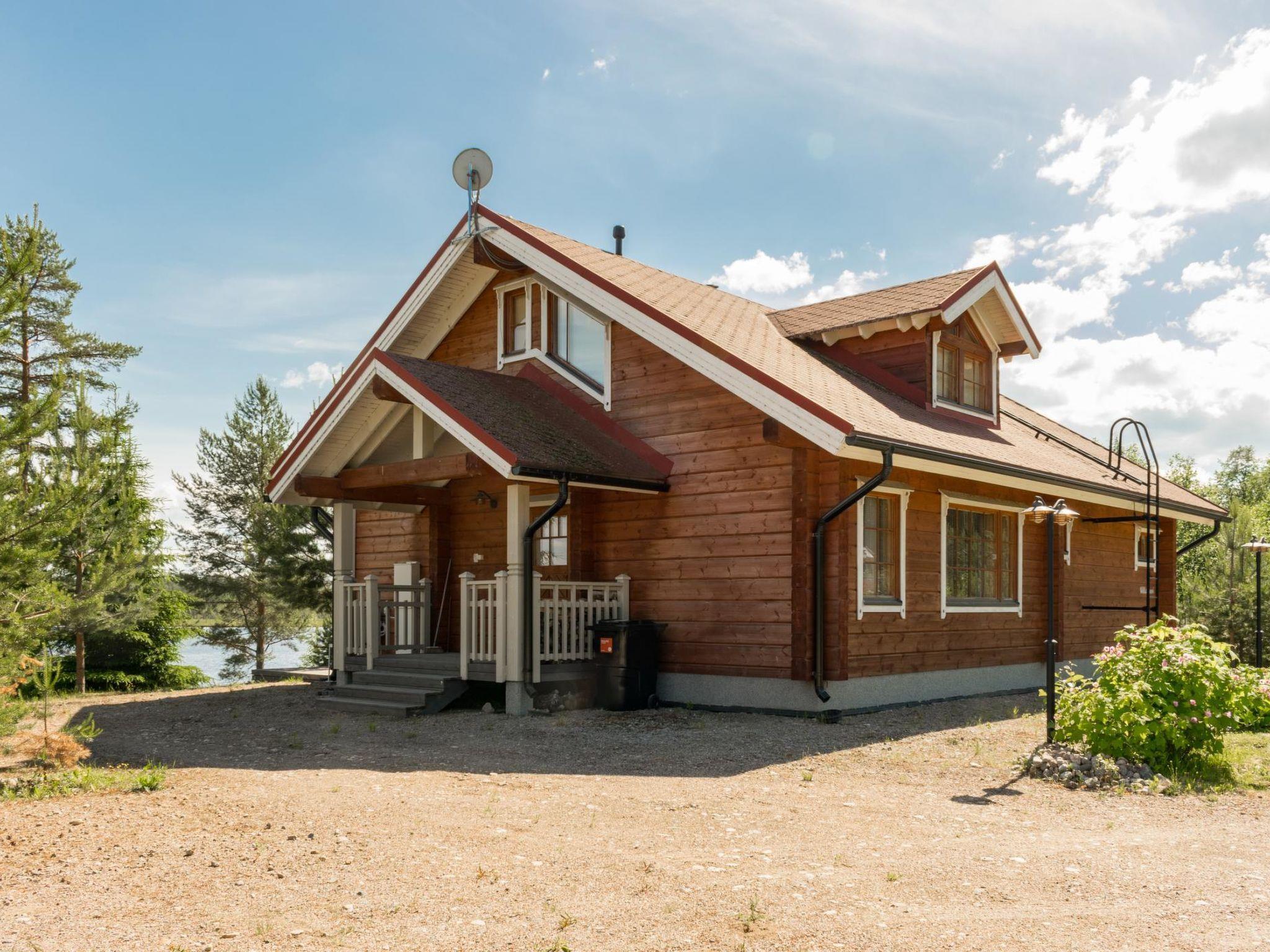 Built in 2009, the 125 m² log cabin is located 72 km to the north of Joensuu. The distance to Koli village is 6.5 km. The shore of the Käränkälampi pond 40 m (2 km long, 1.5 km wide). Private beach, gently deepening bottom, rowing boat. The cabin has a living room/kitchen, 2 bedrooms on the ground floor, one with a double bed and the other with 2 single beds. The upper floor features a lounge and 2 additional bedrooms, one with a double bed and the other with 2 separate beds. The dressing room/utility room, washroom, and electric sauna are located at the other end of the apartment. In addition, there are 2 open porches, one of which has garden furniture.