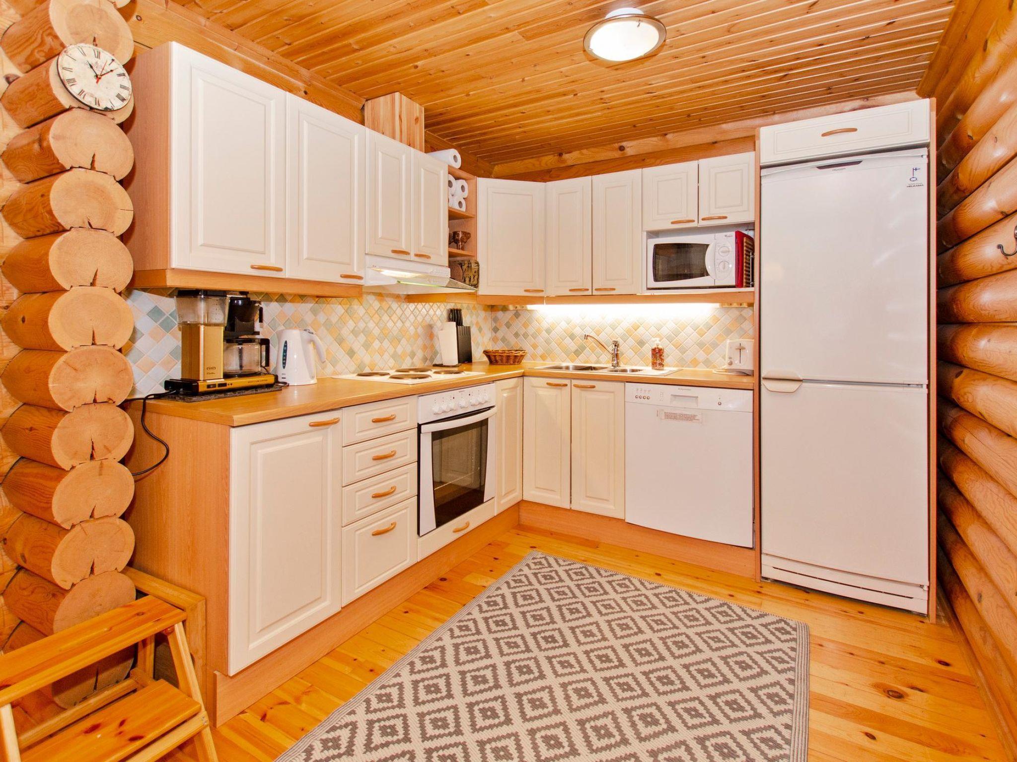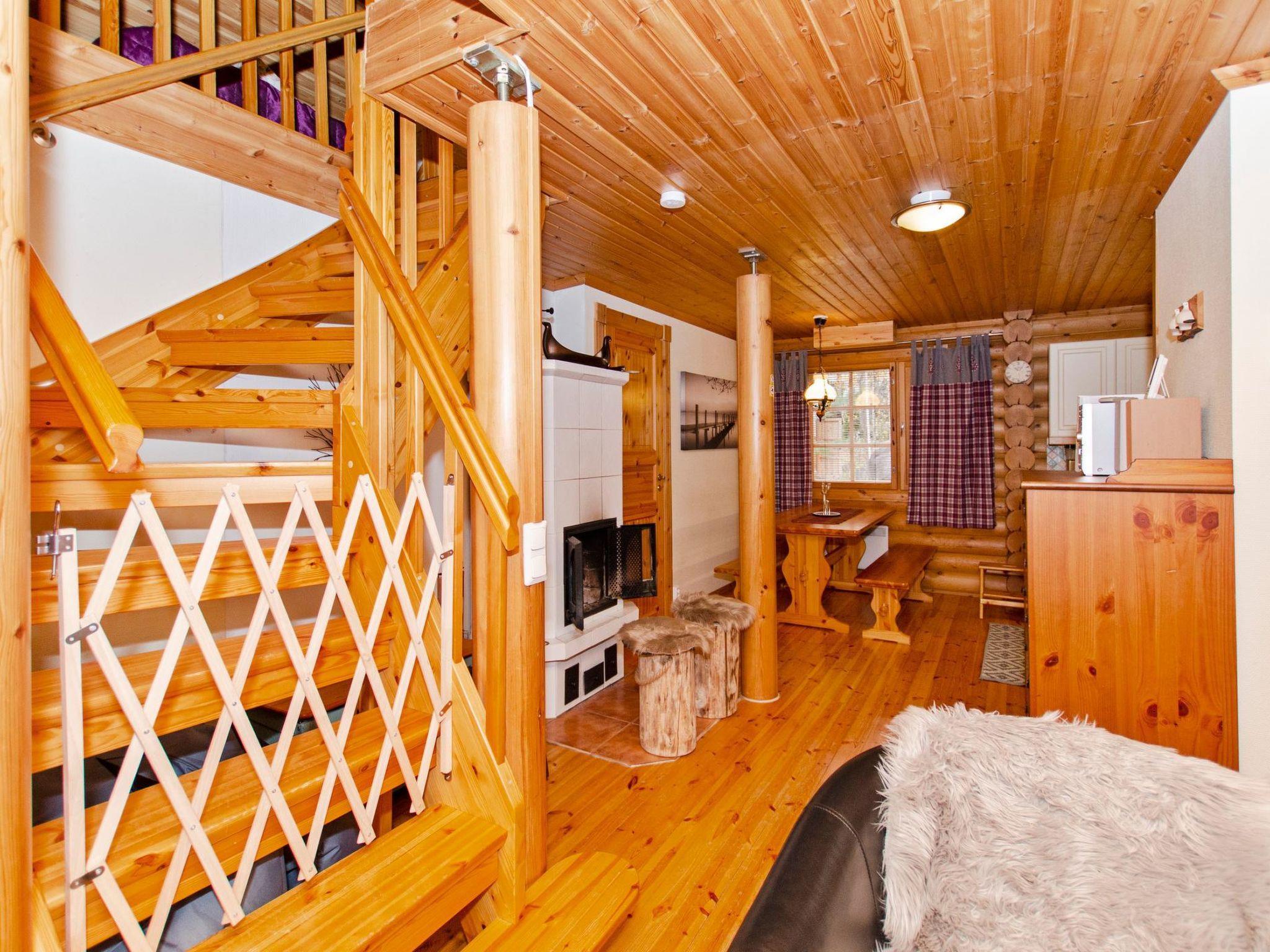 71 km north of Joensuu, Lake Pielinen 200 m (871.2 km²), shallow sandy beach shared by the Purnuniemi cottage area, with many boats from the cottages in the area. There is no boat in this cottage. Round log cabin 2003, living room-kitchen, downstairs bedroom with 2 beds, upstairs 2 bedrooms, each with 2 beds, lounge loft (22 m²) 1 bed, bathroom, sauna (wood-heated), terrace, balcony. On the covered terrace there is a large 6-person corner sofa where you can sit comfortably while enjoying the outdoors.