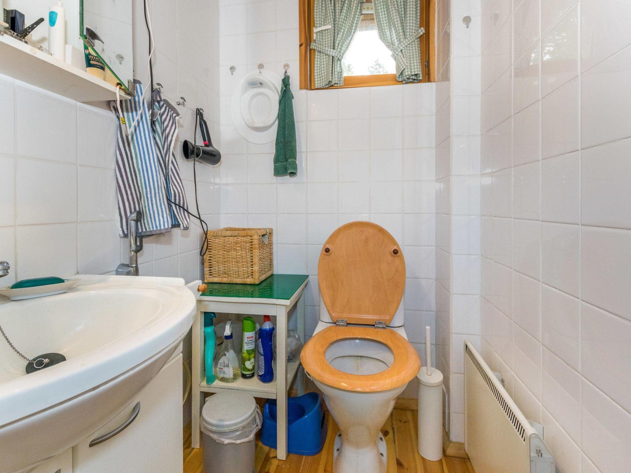 Log cottage 2002, kitchen-living room, bedroom with double bed, small bedroom with 1 bed, sauna (wood-burning stove), washing room (shower), dressing room, toilet, hallway and large partially-covered terrace spaces.