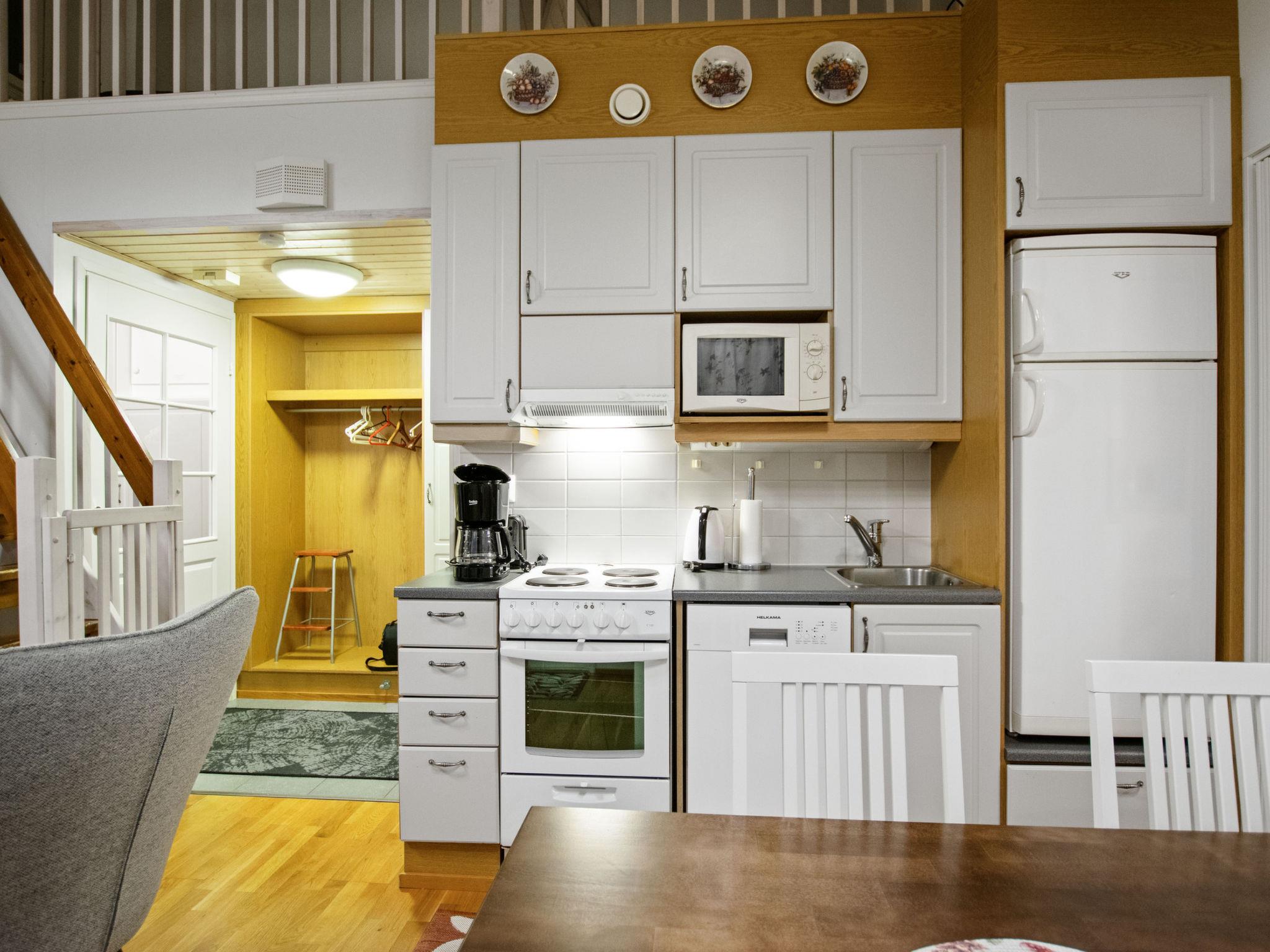 Apartment is built-up 2006 and it's area is 55 m² of which 15 m² on the loft. In ground floor there is a bedroom (folding door) with double bed, open kitchen/living room, balcony and electric heating sauna.