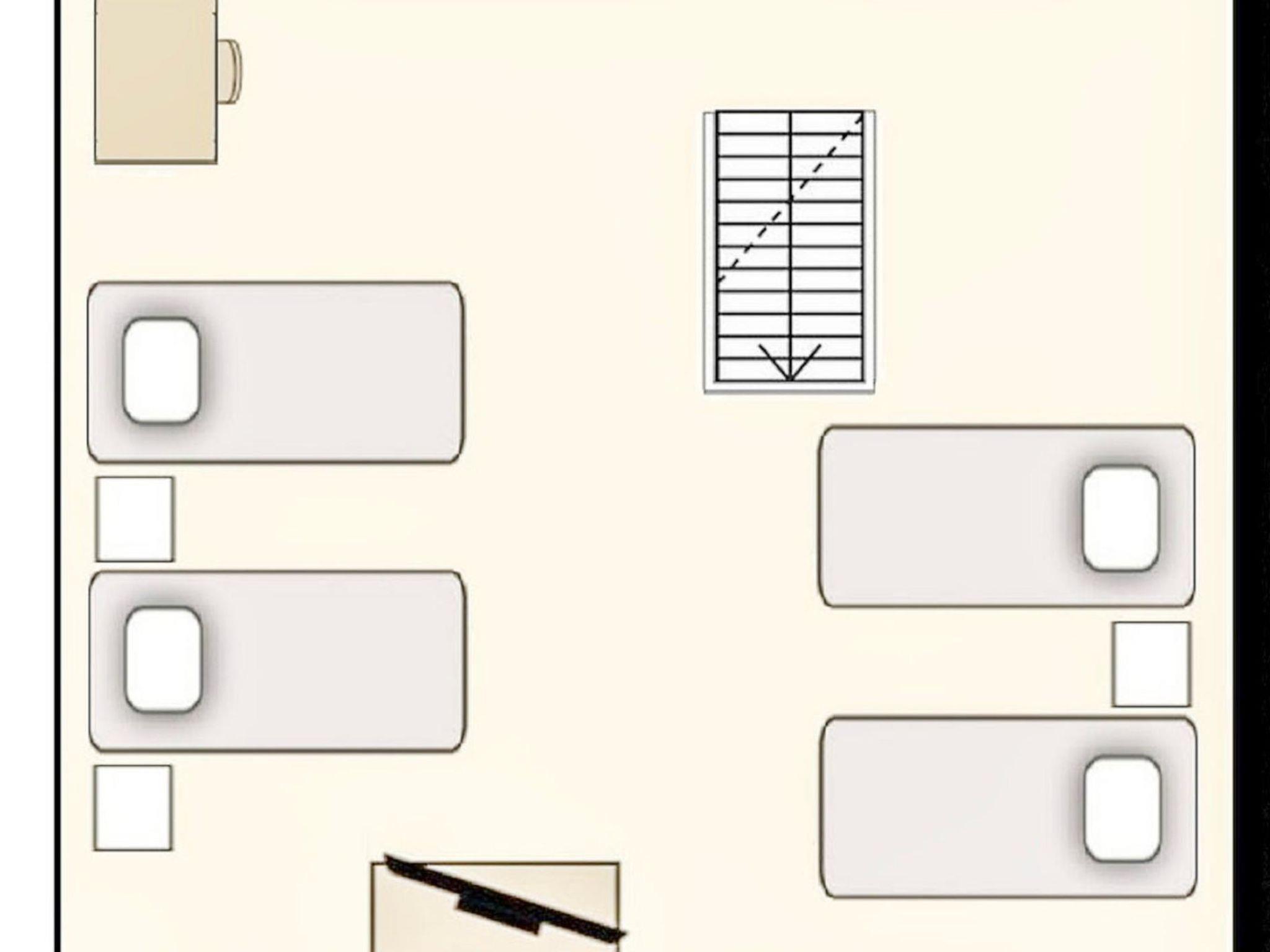 In the ground floor kitchen/living room, bed room 2 beds (100cm wide, reneved 10/23) , washroom, sauna (elect. stove), WC, open porch. Upstairs loft (30 sqm, steep stairs) with 4 beds. Child safety gate at the top of the stairs. Air source heat pump.