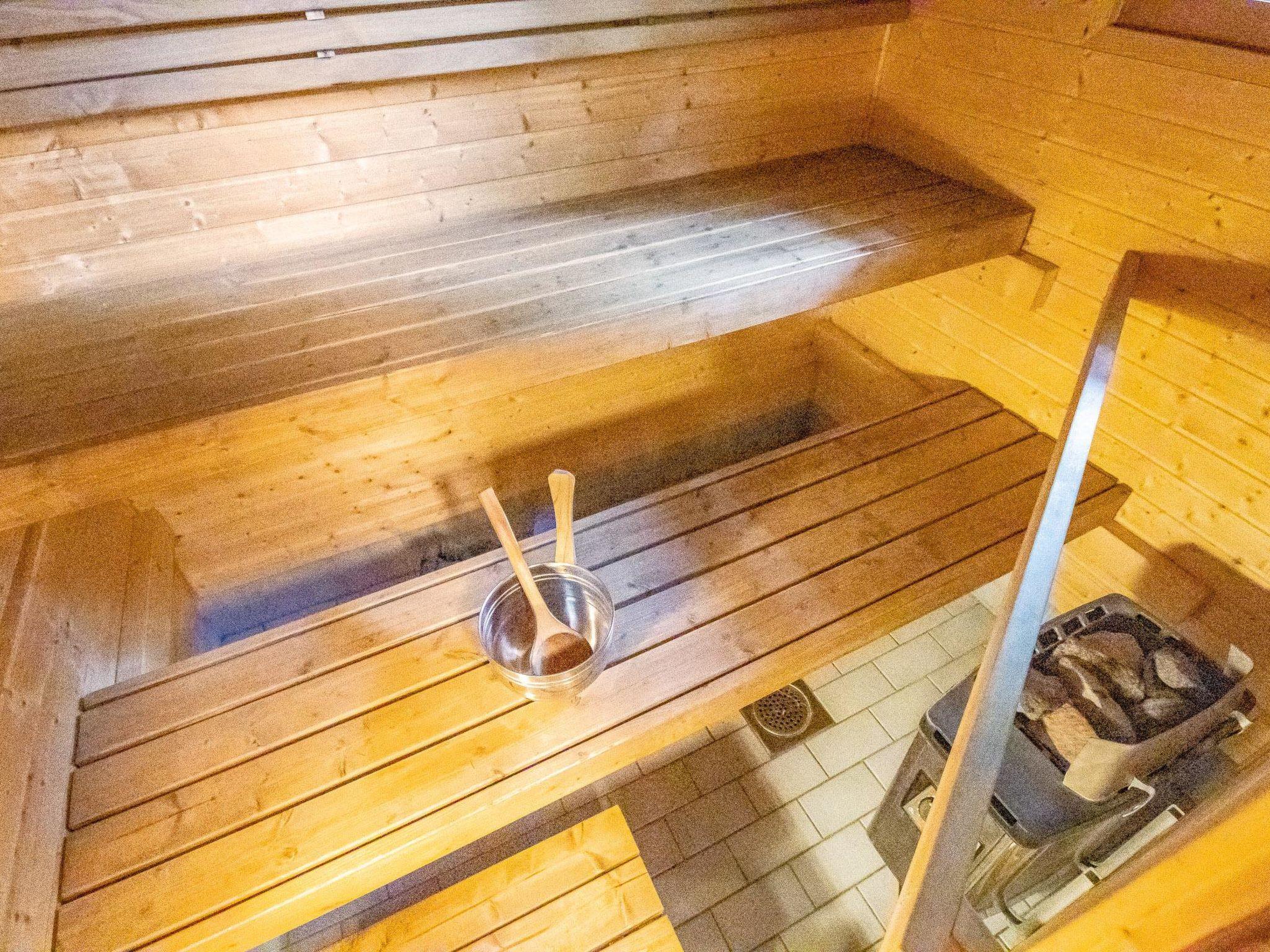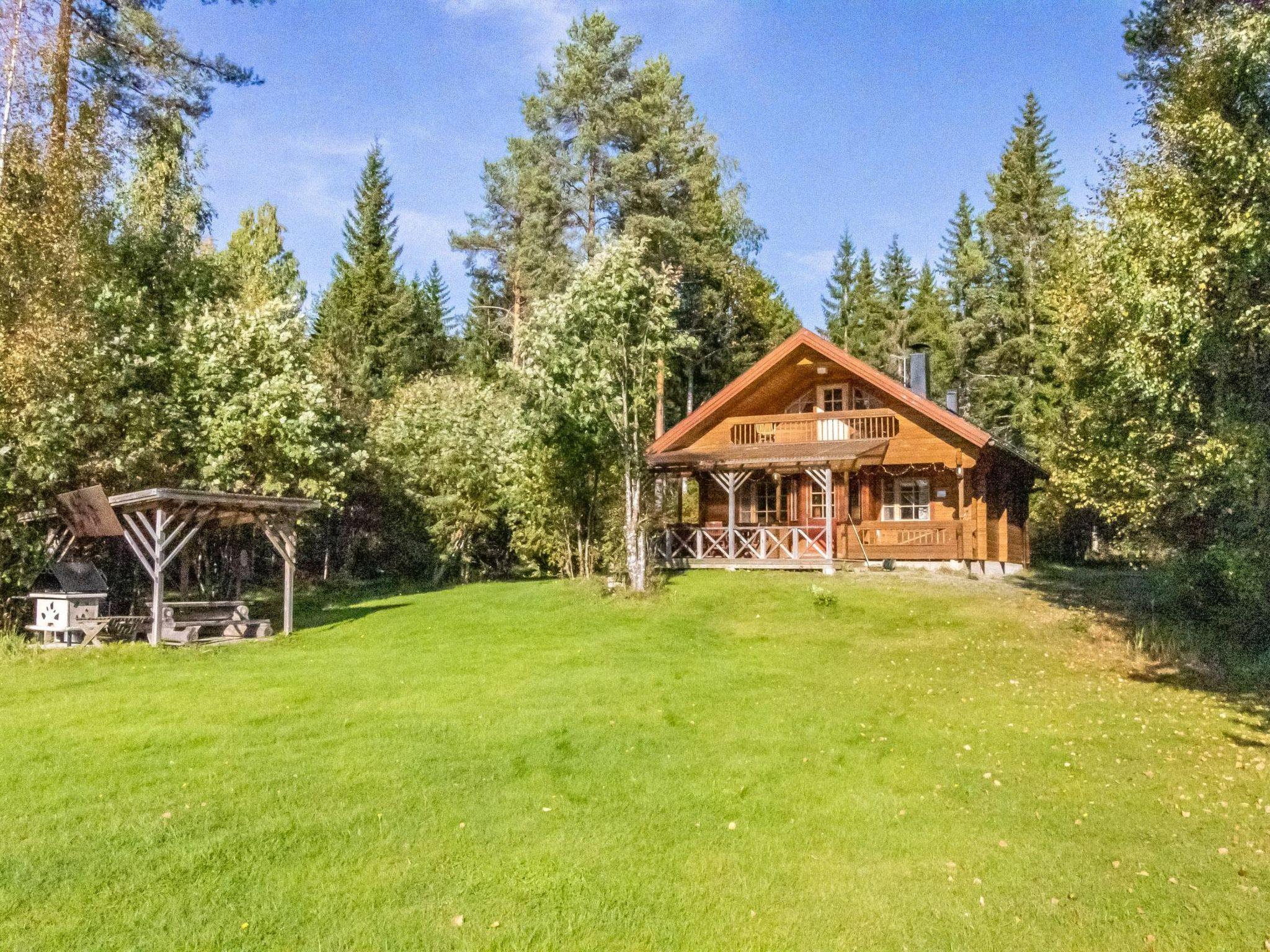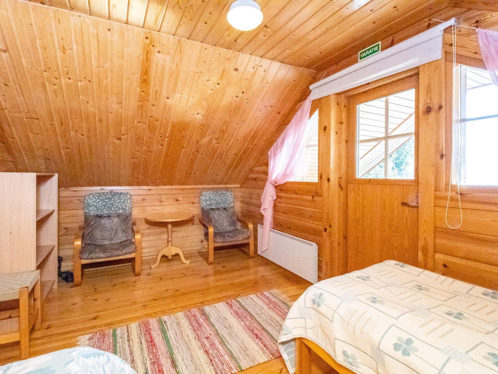 Log cabin 1998, living room/kitchen, bedroom 2 beds, in upper floor 2 bedrooms both with 2beds, Child safety gate in downstairs, washroom, sauna (electric sauna stove), open veranda. One WC in upper floor, another downstairs.