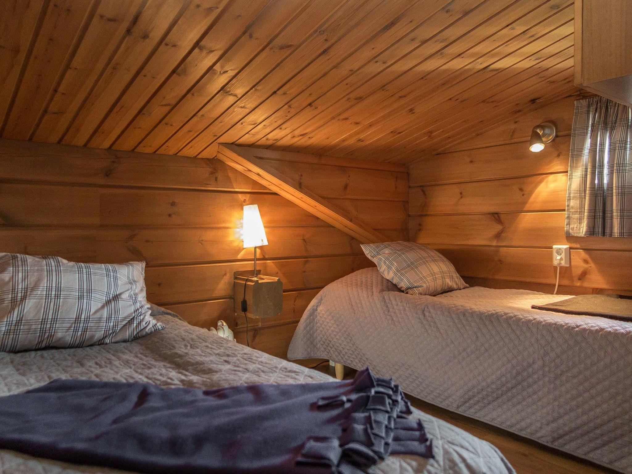 Tahkonbalju main chalet (170 m²) was built in 2005 and the sauna section (85 m²) in 2008. Downstairs: living room/kitchen, 2 bedrooms 2 beds in each (double beds with mattress overlay), washroom, WC, sauna (electric stove). Upstairs: 3 single bedrooms, alcove 2 beds, hall 2 beds, WC. Steep spiral staircase to upstairs. Two separate bedrooms 2 beds in each; these bedrooms are located in a separate part of the chalet, with access via the porch. Air source heat pump.