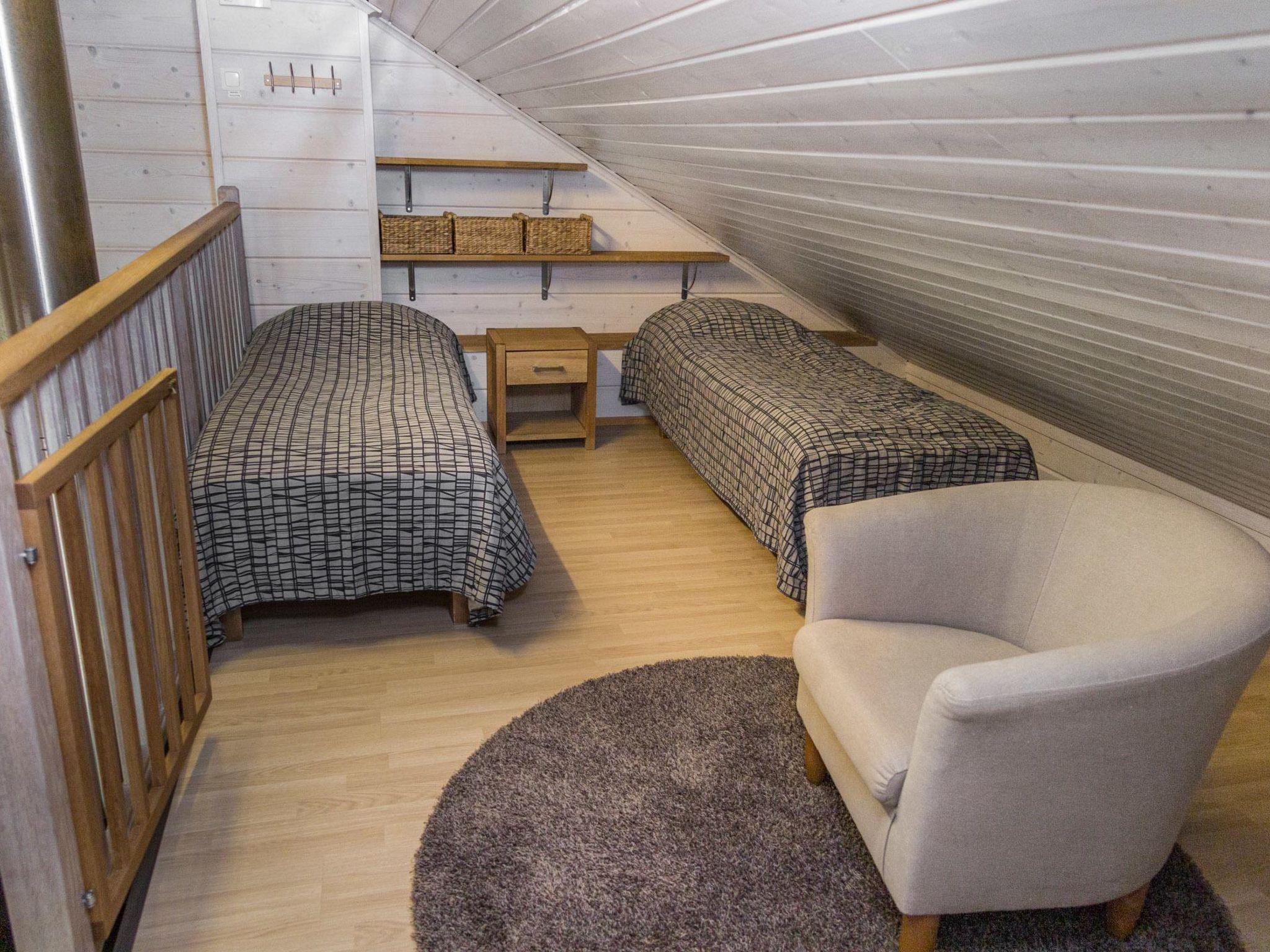 One half of semi-detached house unit, renovated in 2013, kitchen-living room, bedroom with two beds, low loft 2 +2 beds, washroom, sauna (electric stove).