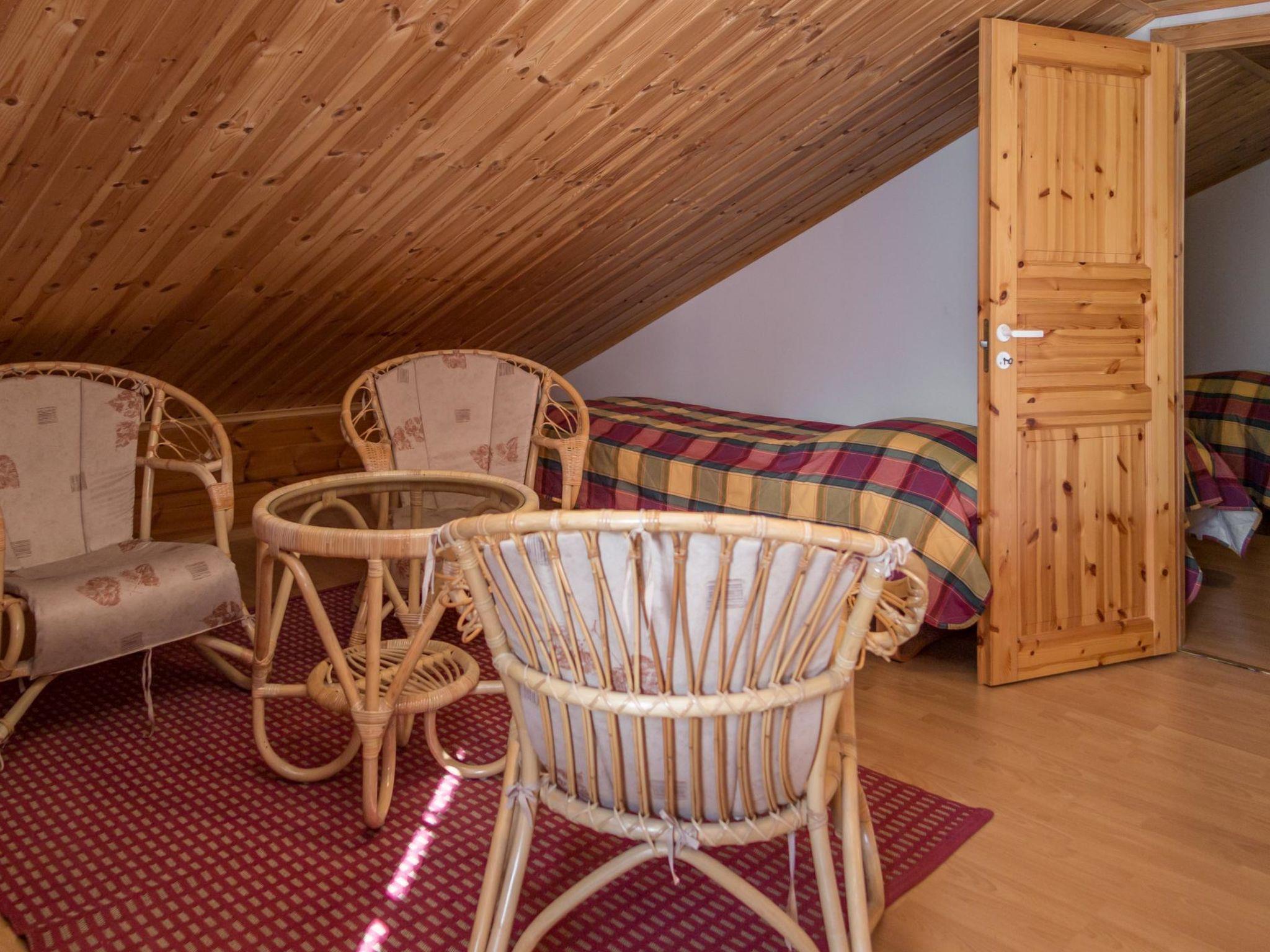 A semi-detached house built 2003, living room kitchen, bedroom with double bed (140 cm wide), bedroom with two beds, a shower room, small sauna (electric stove), separate toilet. Upstairs bedroom 2 beds, sleeping loft with 2 beds. Terraces on both sides of the building.