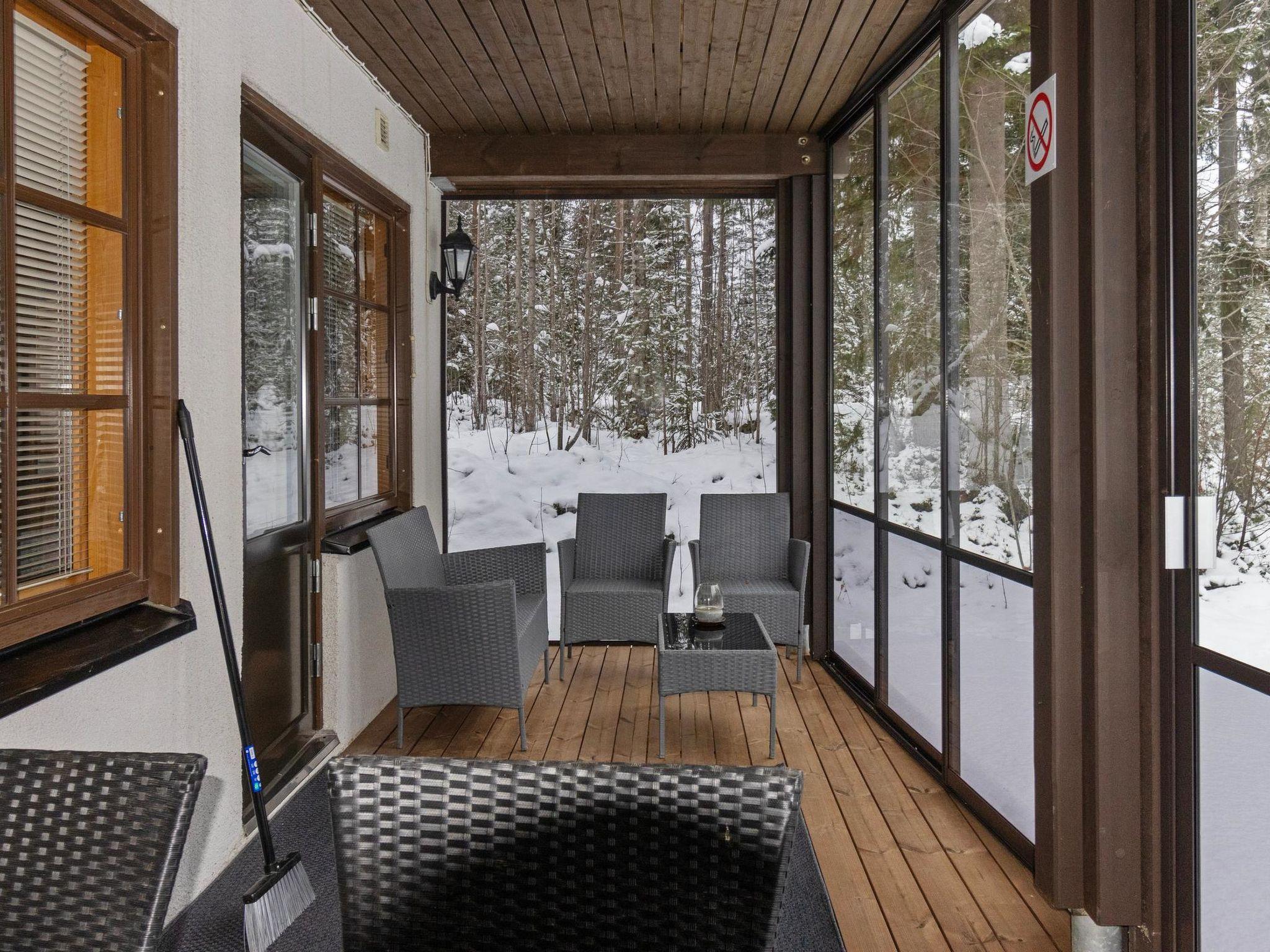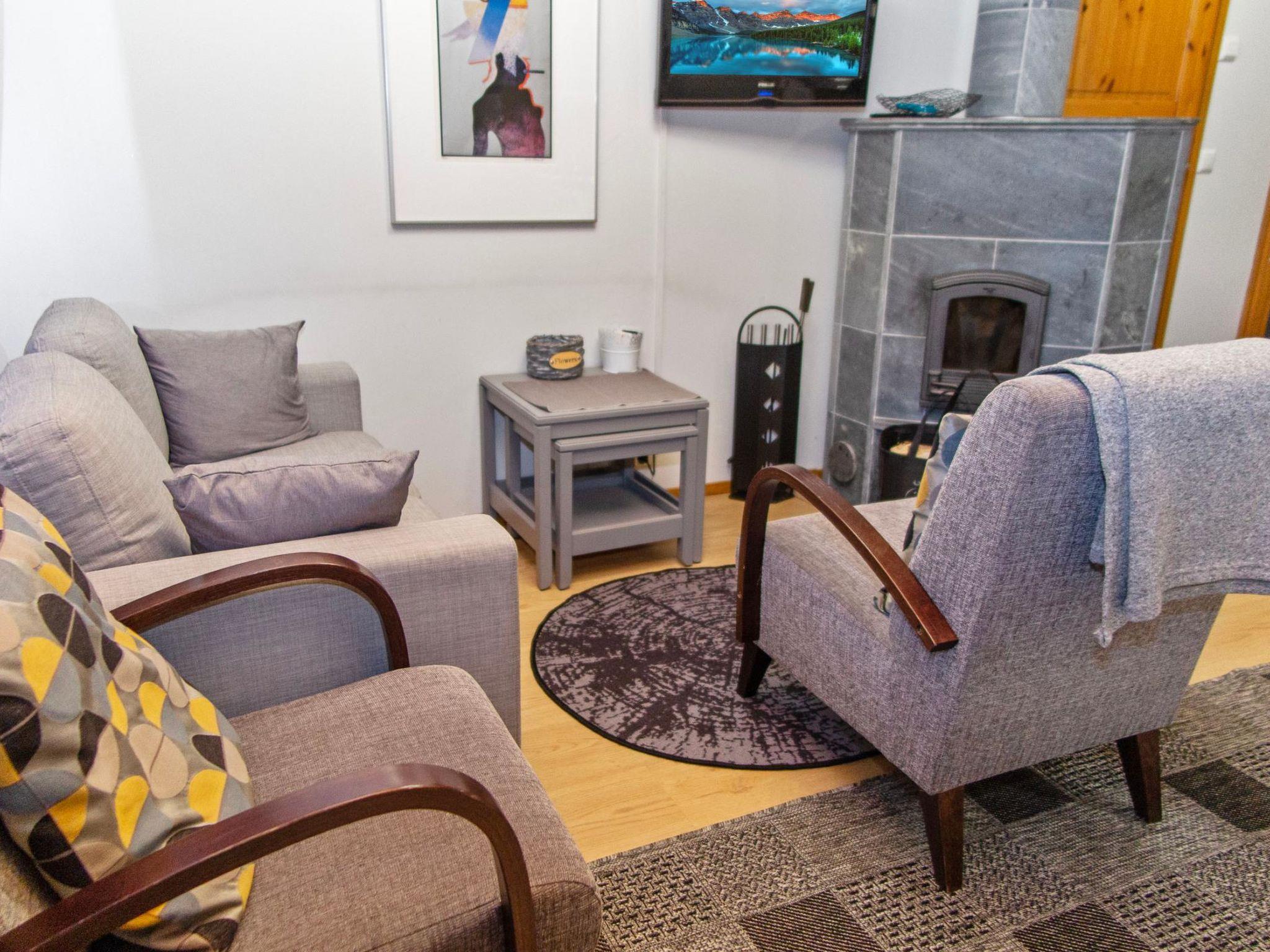 Two-storey chalet 2002, an apartement in the first floor, kitchen-living room, bedroom with 2 beds, bedroom with double bed. Washroom, sauna (electric stove), hall and a big glased terrace. Skistorage, one car plug. There is an air source heat pump with cooling and warming functionality on the cabin. Wifi 300 Mbit/s and Smart TV.