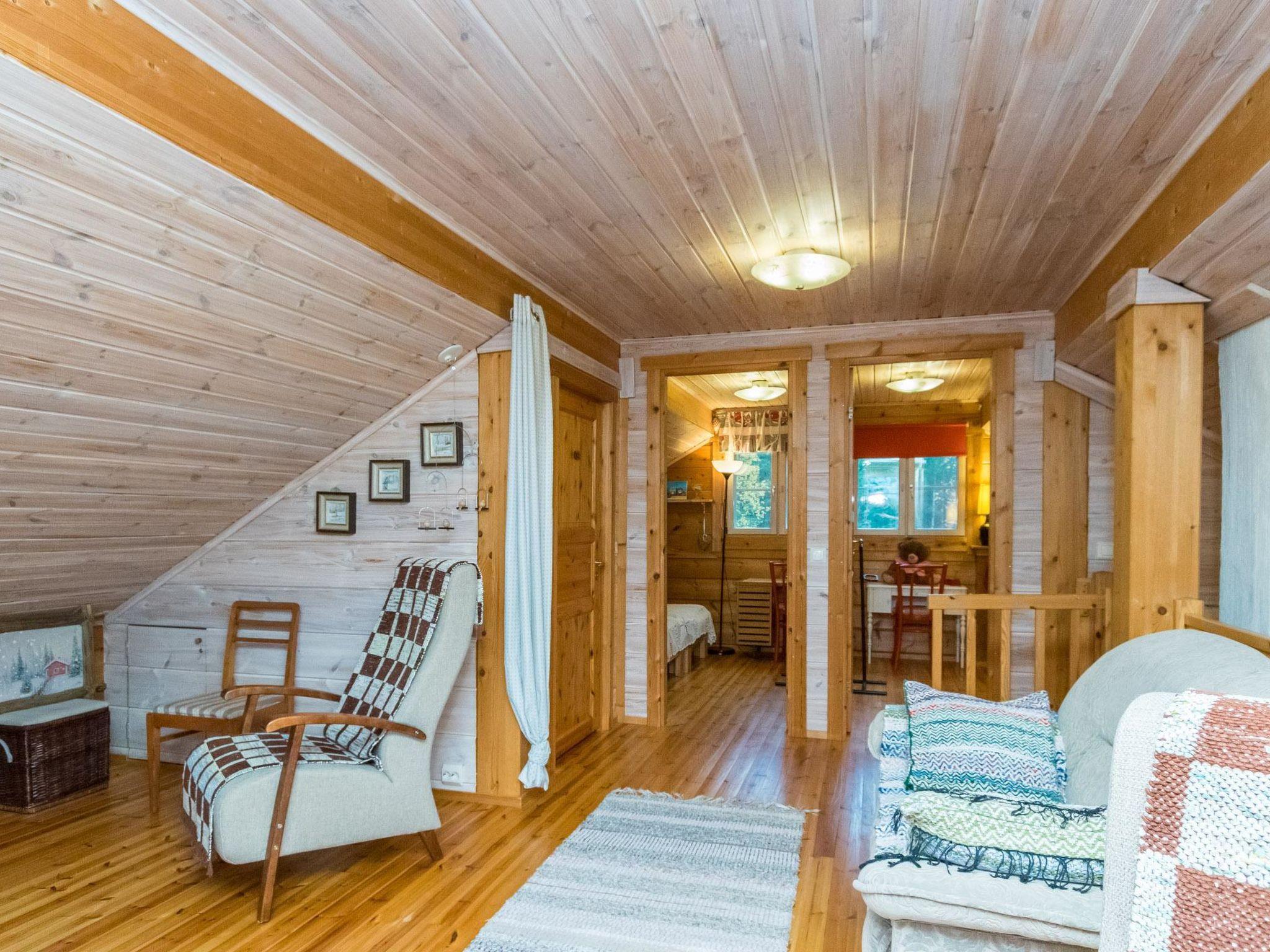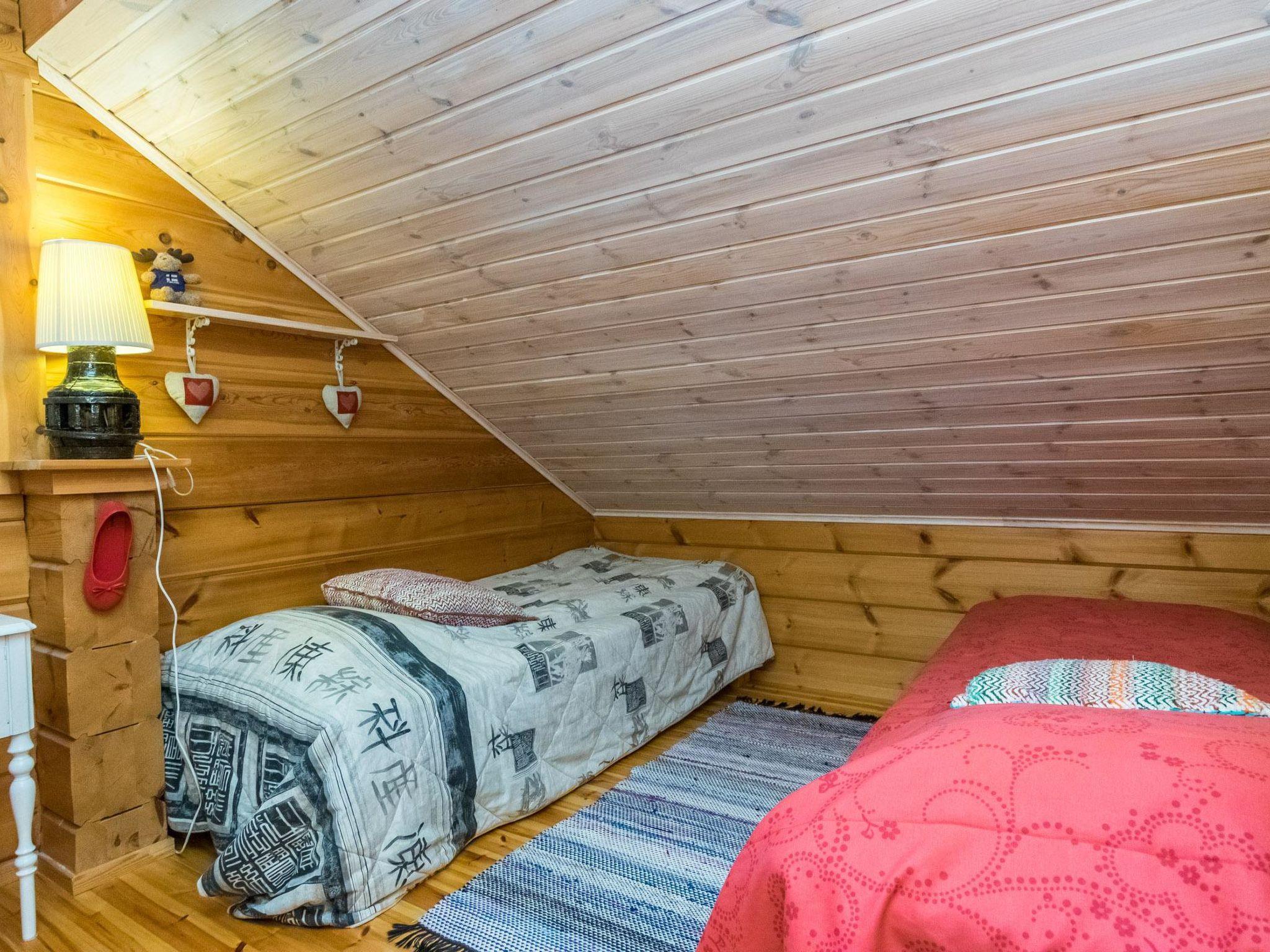 52 km north from Kemijärvi. Two storey log cabin built in 2009, with living room/kitchen, bedroom with 120 cm wide bed, toilet/washroom, sauna (electric stove). Upstairs: 2 bedrooms with 2 single beds in each, toilet and TV lobby.