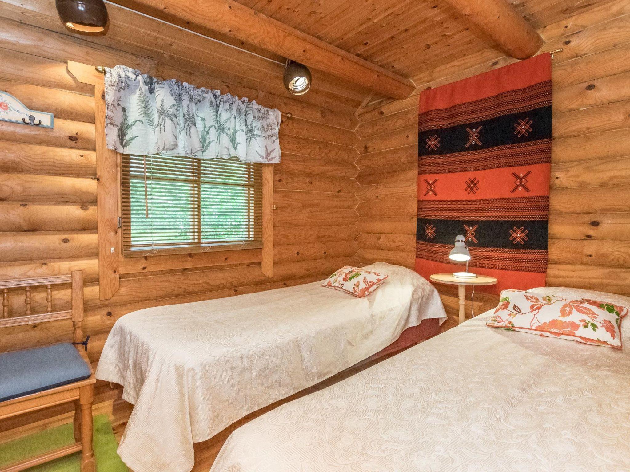 Log cottage 1982, complete renovation 2001, living room/kitchen, 2 bedrooms both with 1 bed (80x200 cm), washing room with shower and toilet, upstairs alcove with a double bed (160x200 cm), lobby with 1 bed (80x200 cm), entrance from the lobby to a covered balcony. Covered porch.