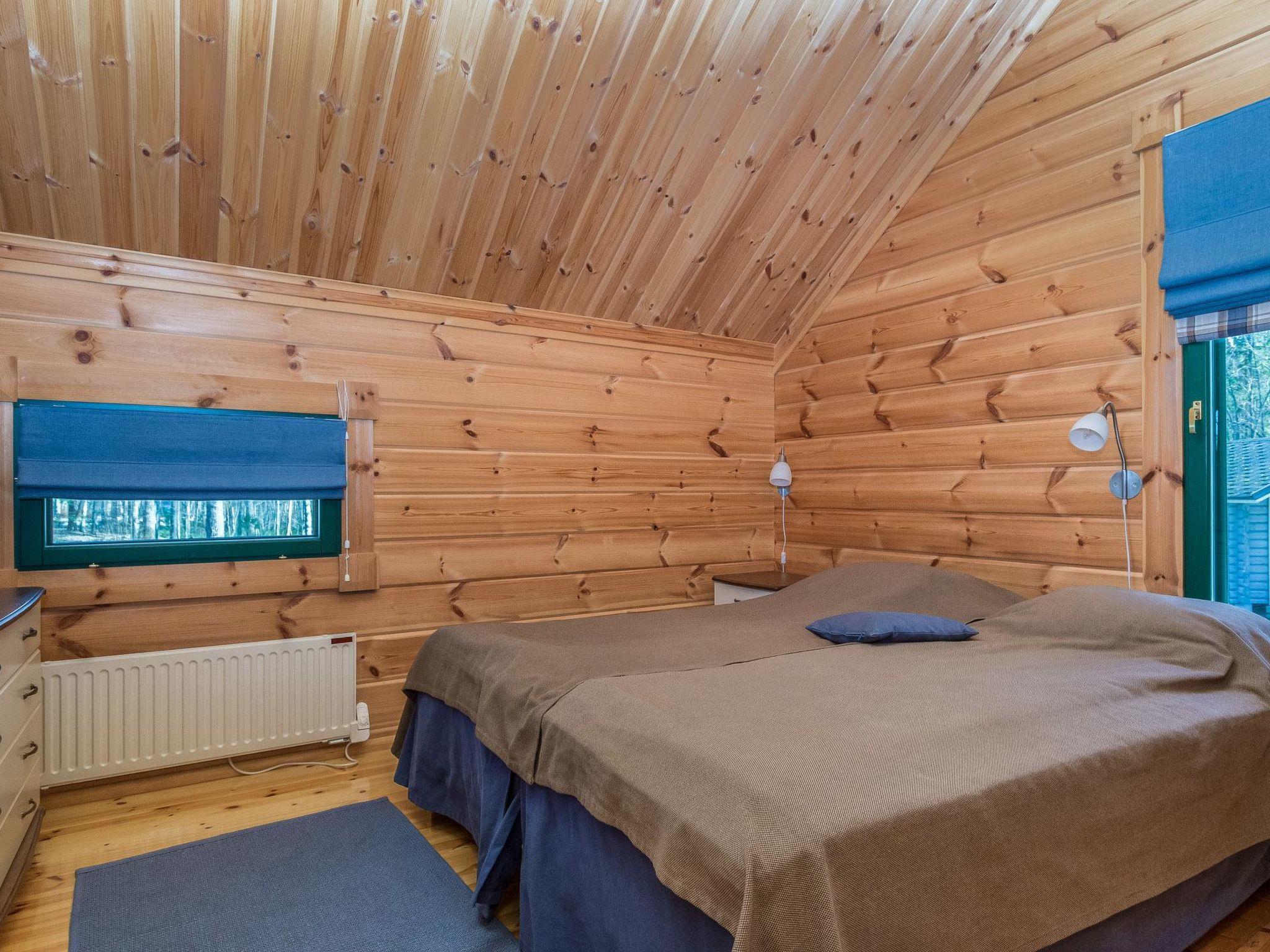 Log villa 2006, living room, kitchen, two beds in bedroom (11 m²), dressing room, washroom, sauna with both electric and wood-burning sauna stove, separate WC. Tower room where one person can sleep on a mattress.
