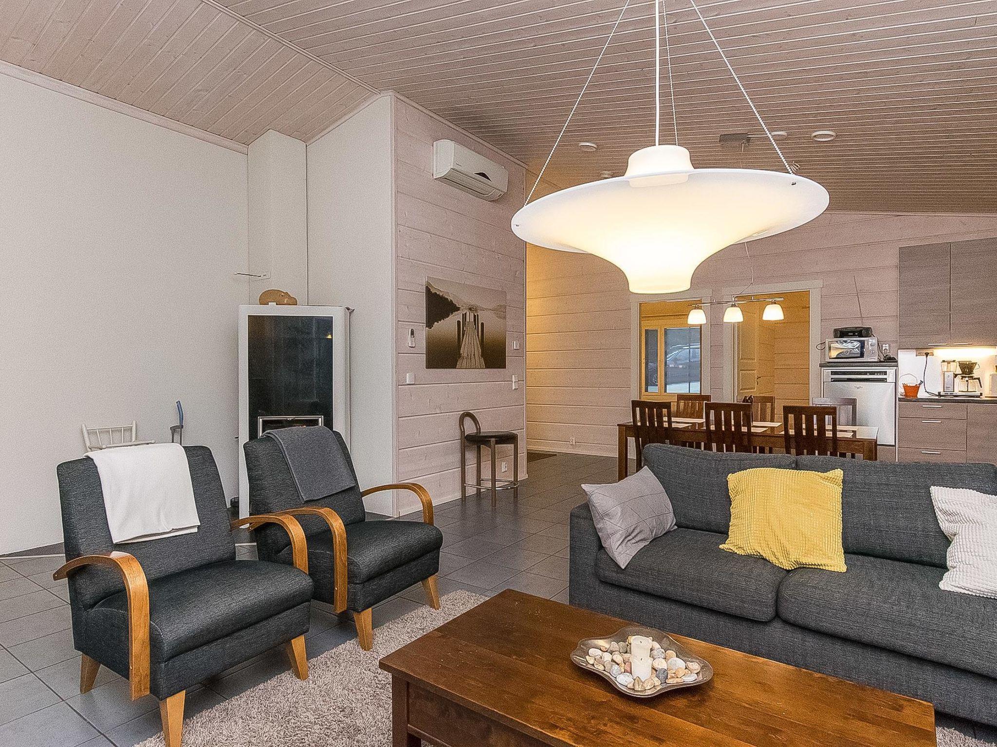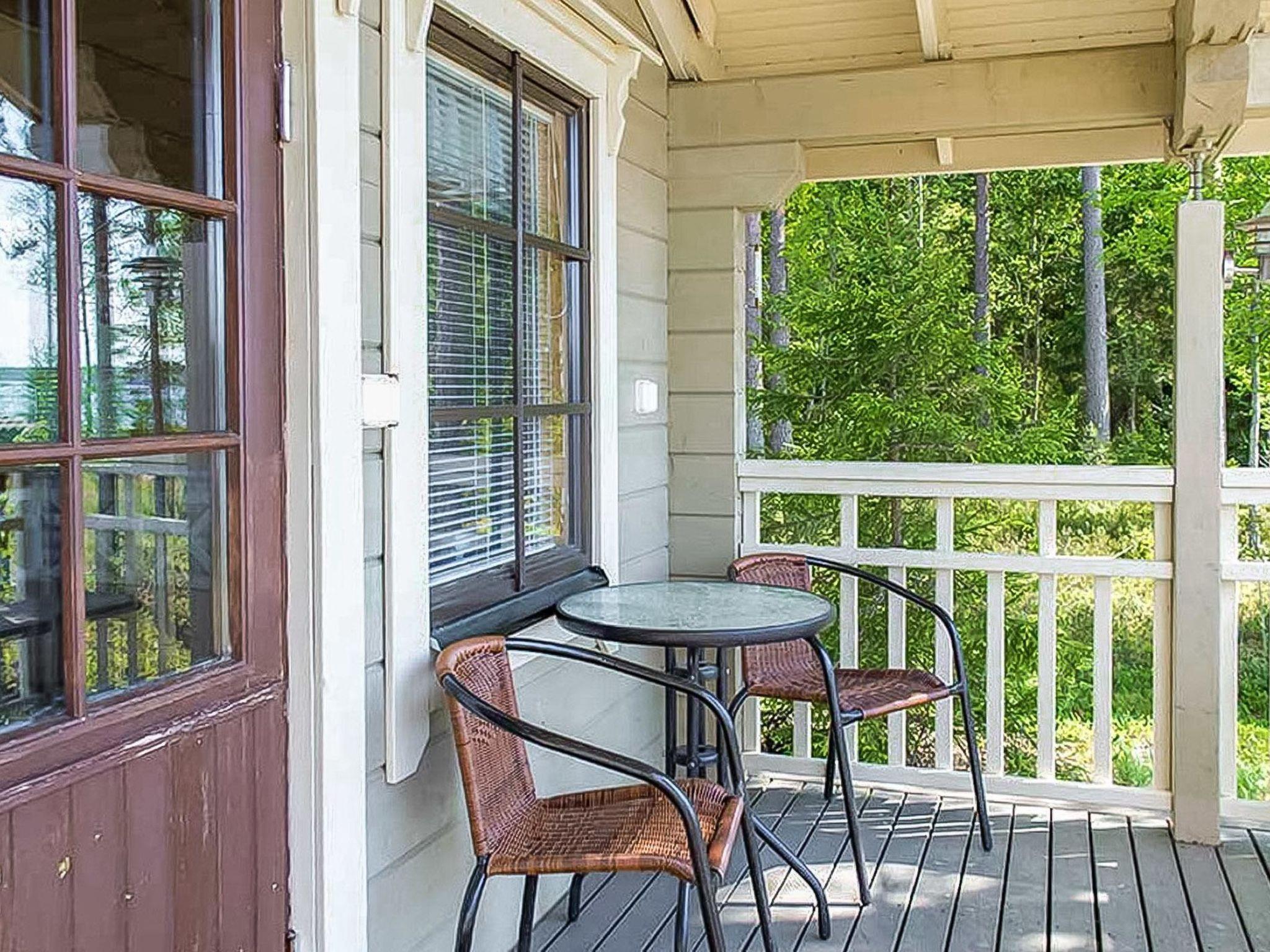 Log villa 2014, living room/kitchen, three bedrooms (10 m²), one with double bed and other two with two beds, all with spacious wardrobes, dressing room, washroom (2 showers and WC) sauna with electric sauna stove, separate WC, terrace.