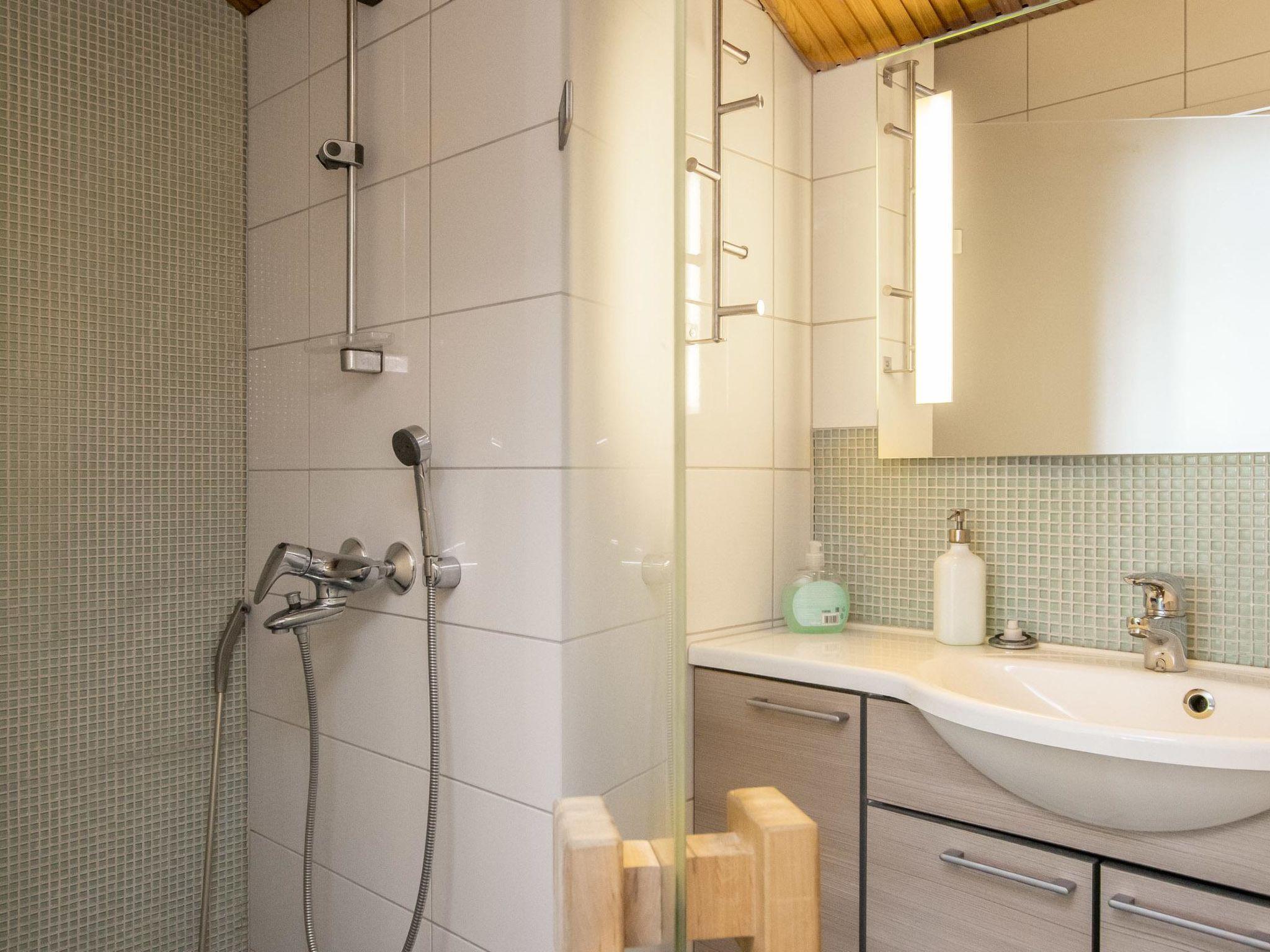 Lakeside sauna, 120 cm wide bed, living room/kitchen, dressing room and sauna (wood-burning sauna stove) and covered porch. There is also an outdoor shower available during summer.