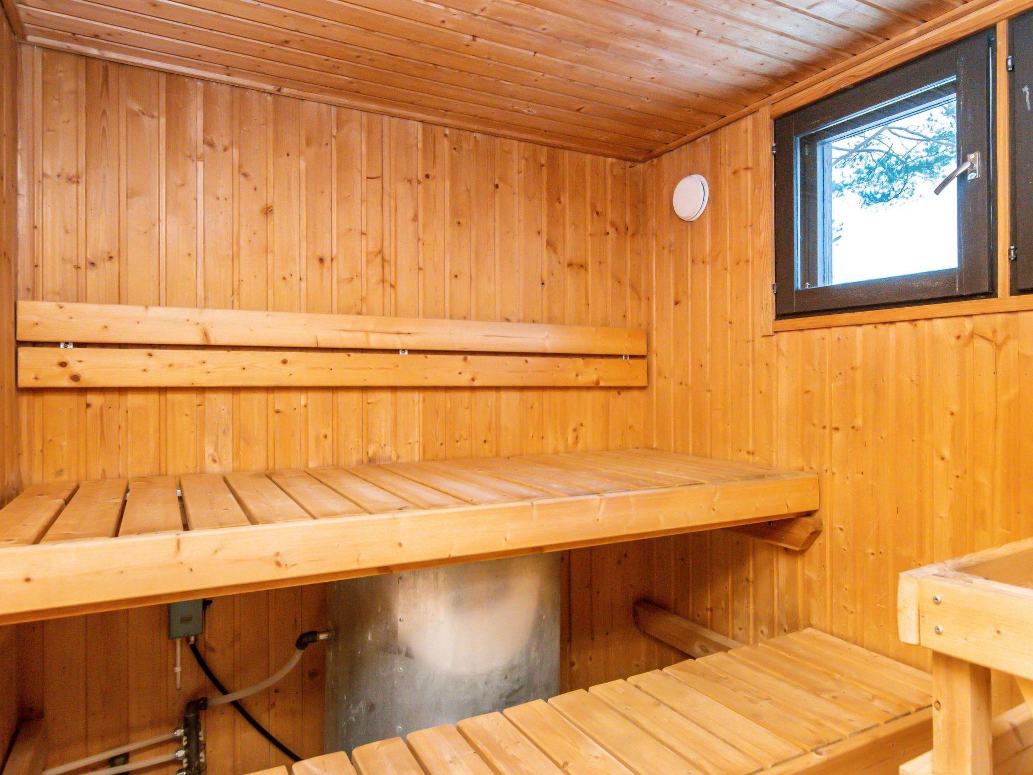 Wooden cabin with boarded outer walls, built in 1985, and refurbished in 2024. A kitchen with two hot plates but no oven, a living room with a sofa bed for two, and a bedroom with two single beds. The washroom features a shower and a WC, and the sauna is equipped with an electric stove.