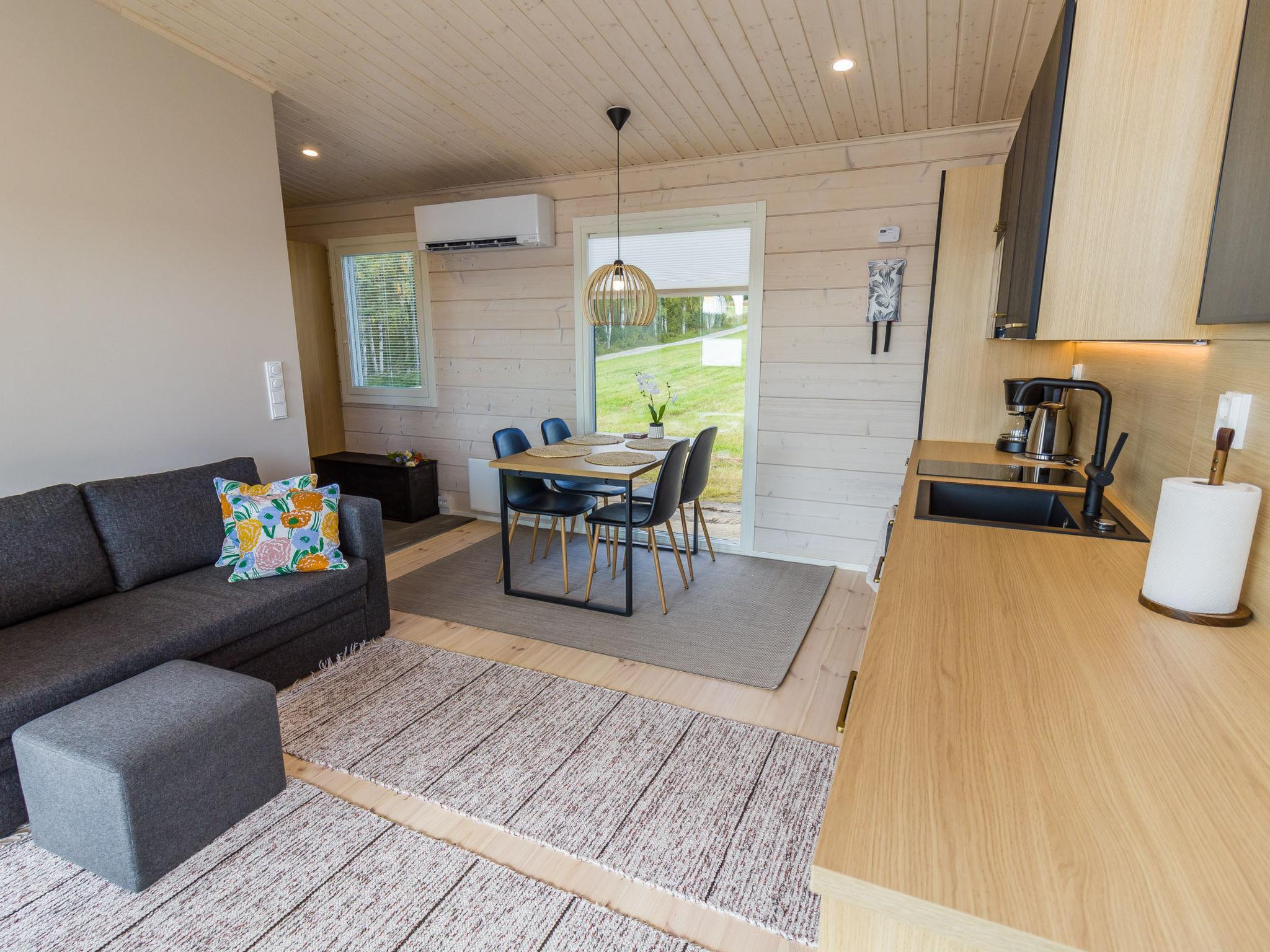 This cozy cabin features a bedroom with a double bed and a living room with a sofa bed for two, making it an excellent choice for families or couples.