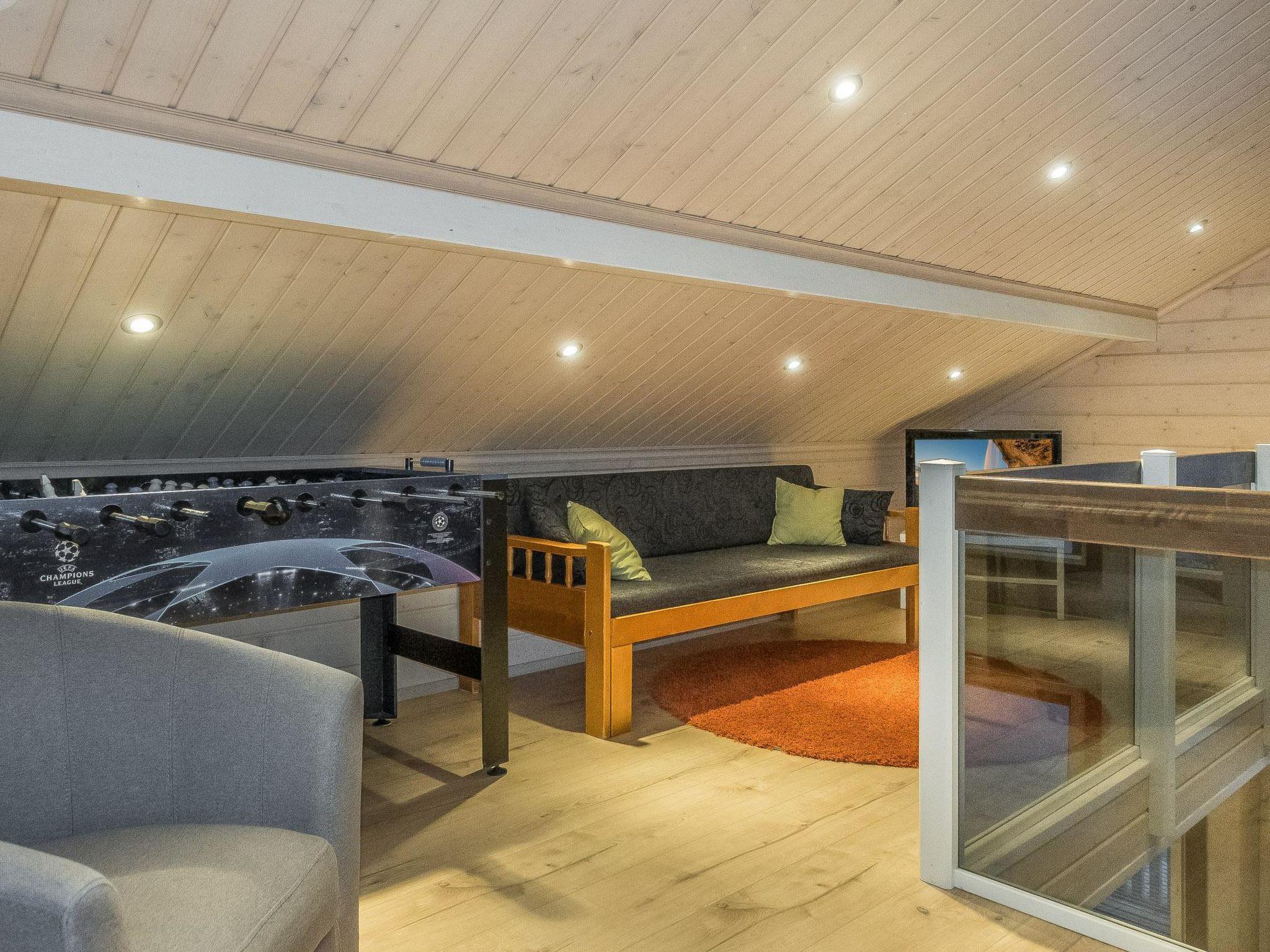 On the ground floor, guests can enjoy a spacious open kitchen and living area with large windows overlooking the lake scenery. Two bedrooms offer different accommodation options, one with a double bed and the other with two separate beds. In addition, the ground floor includes a sauna, a bathroom, a utility room, and a separate WC.