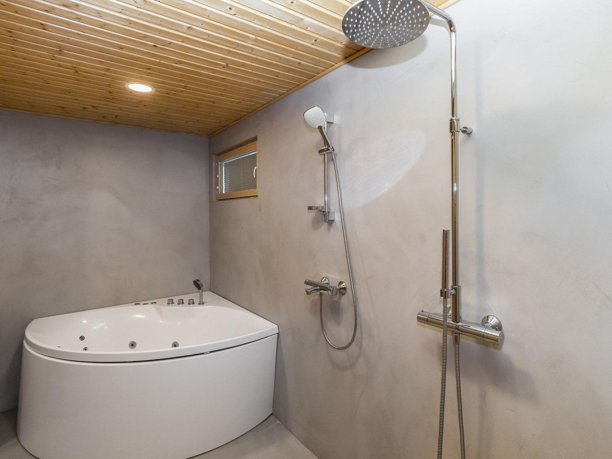 A spacious and stylish modern cabin at the foot of Iso-Syöte fell, in Ollukka. Built in 2018. The impressive open space includes a bright living room, dining area, and kitchen with large windows facing the fell. There are four bedrooms (two with double beds and two with one bed + a pull-out bed, accommodating 8 people), a utility room, a sauna, and a bathroom with a jacuzzi, two showers, and a toilet. There is also a separate toilet. The cabin's yard has a carport.