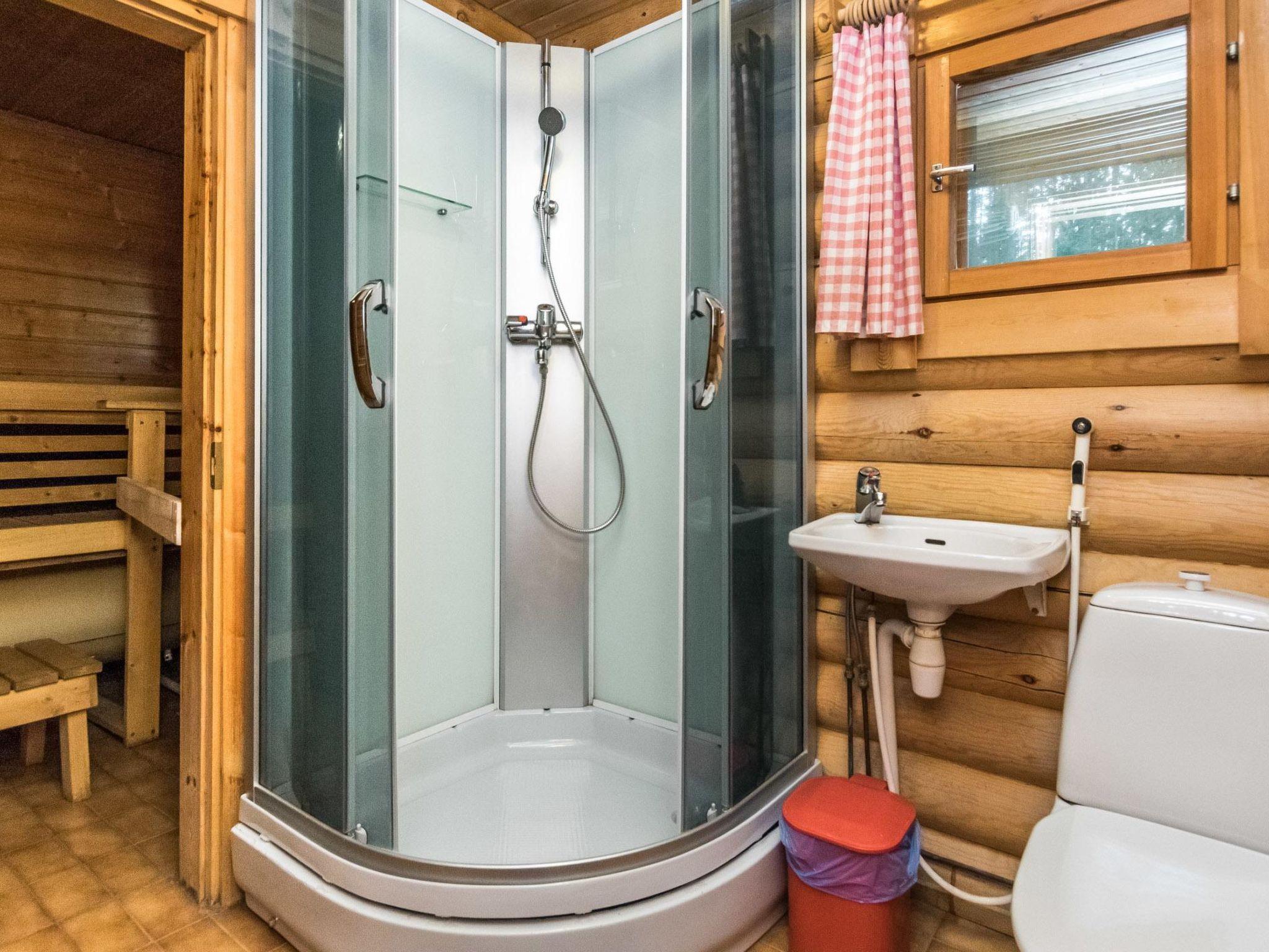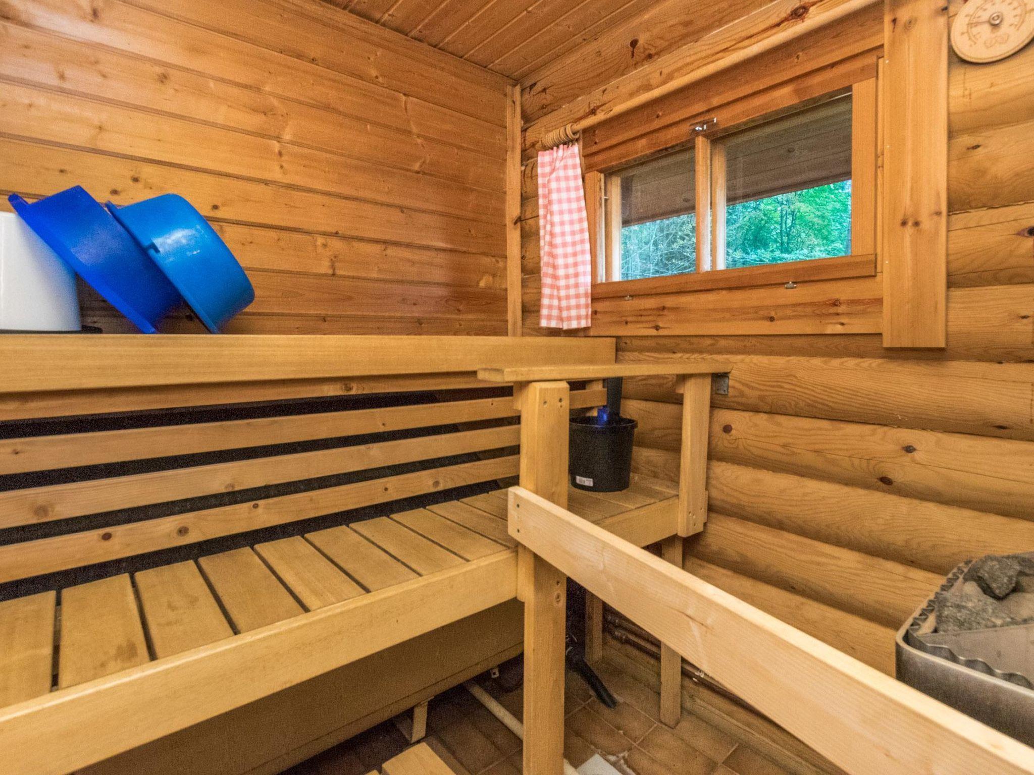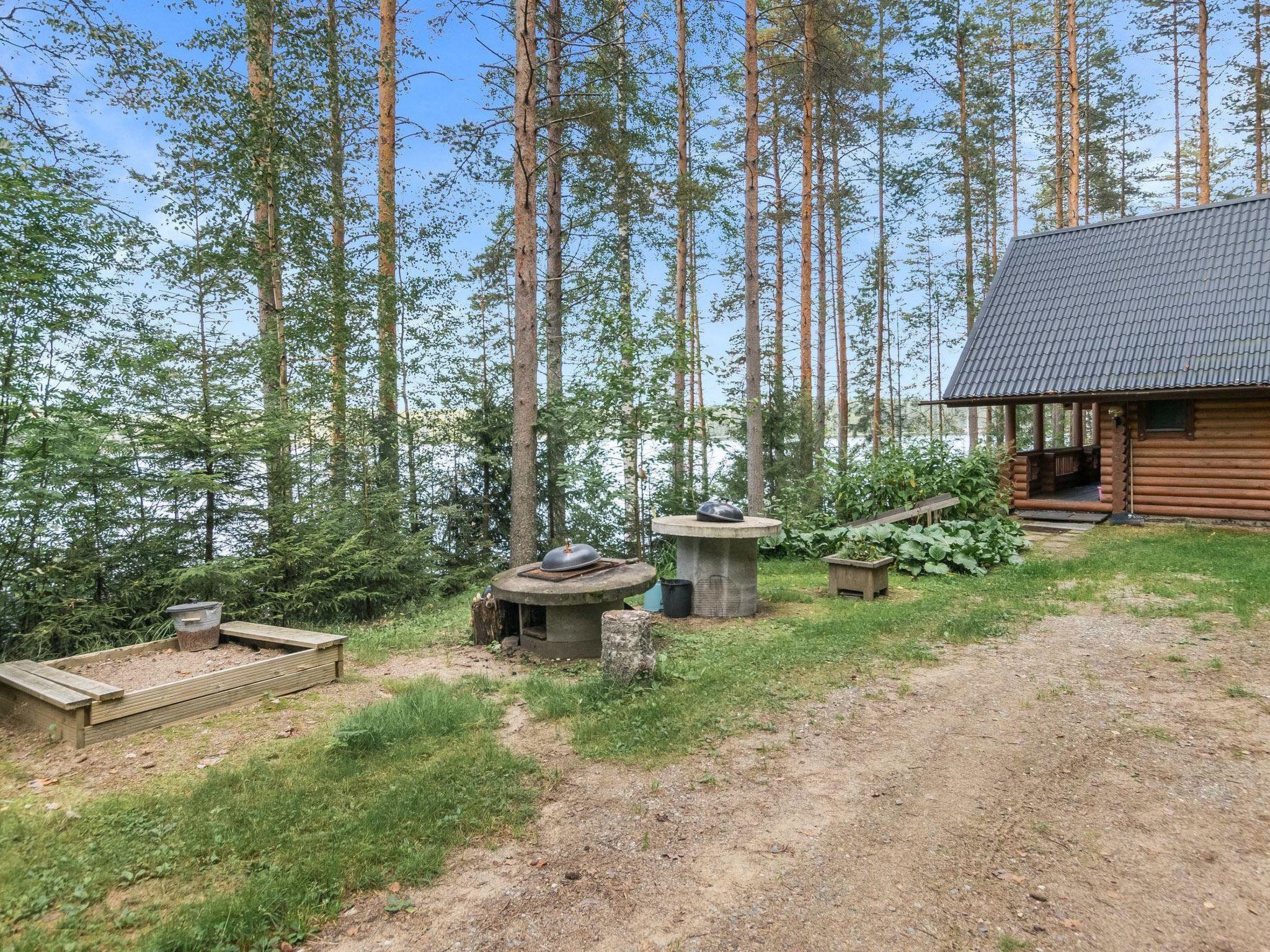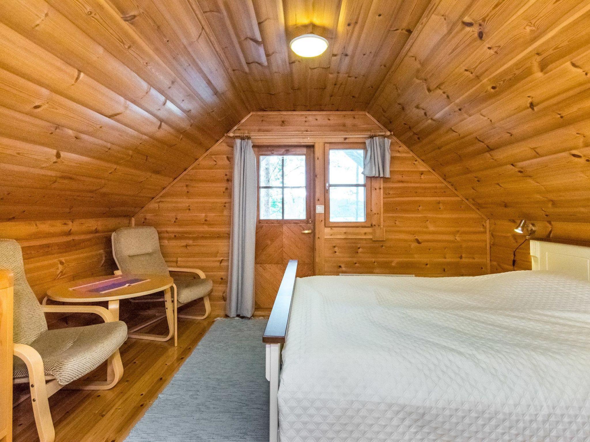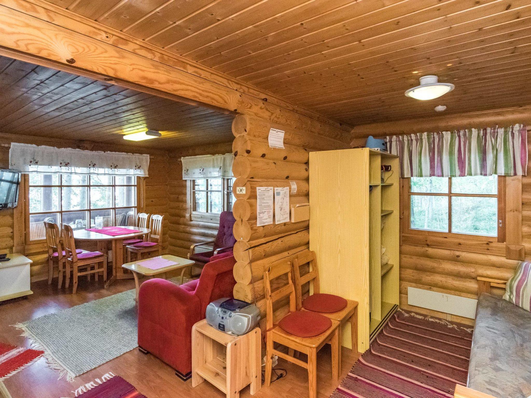 56 km south of Savonlinna. Lake Saimaa 25 m, shallow water, firm gravel bottom. Own boat. Log cabin 199, kitchen, living room with 1 extra bed (convertible sofa), washroom, sauna (electric sauna stove), open veranda. Upstairs: bedrooms with 2 beds, vestibul 2 beds, balcony (steep stairs to upstairs). Lakeside sauna.