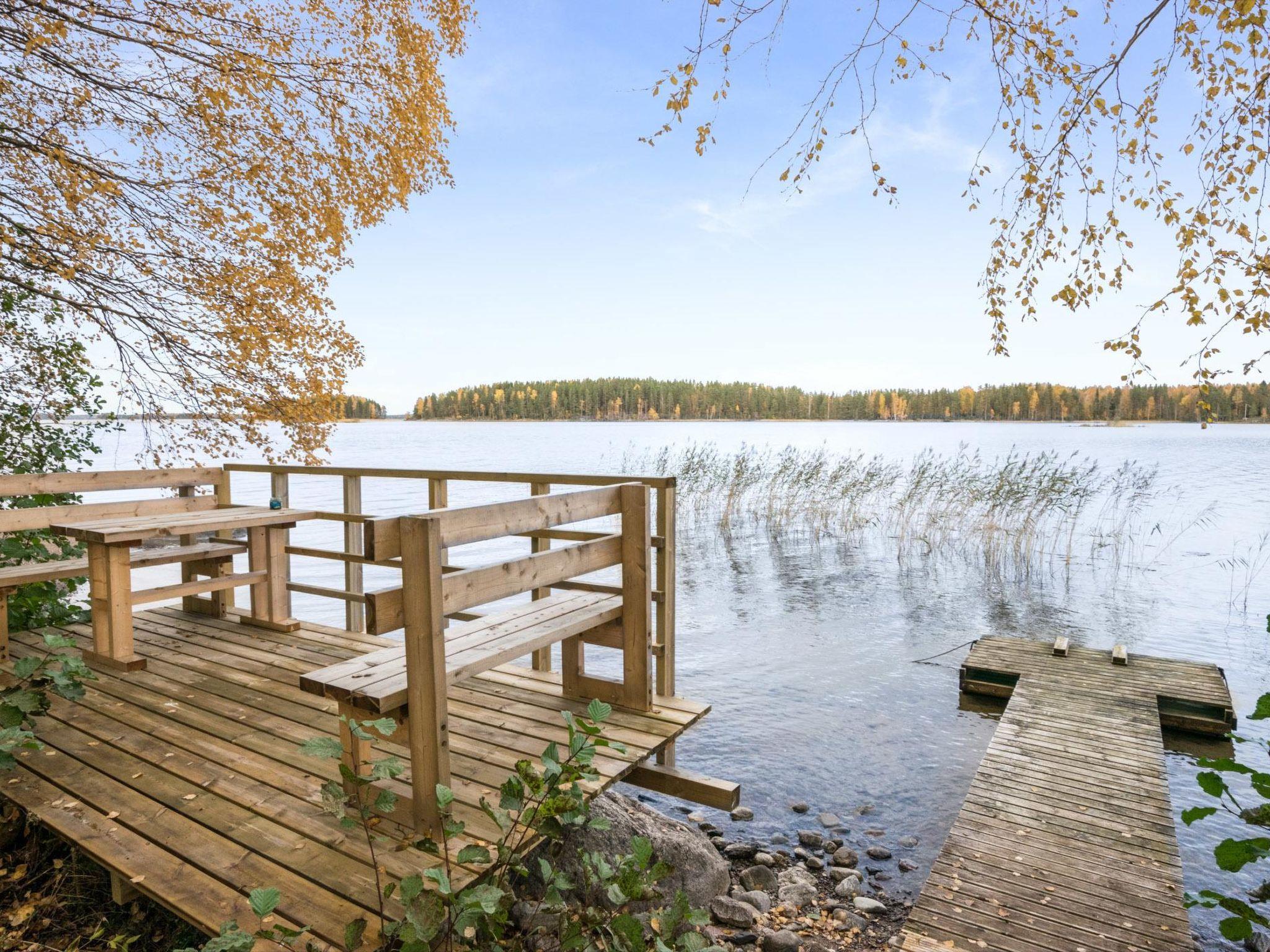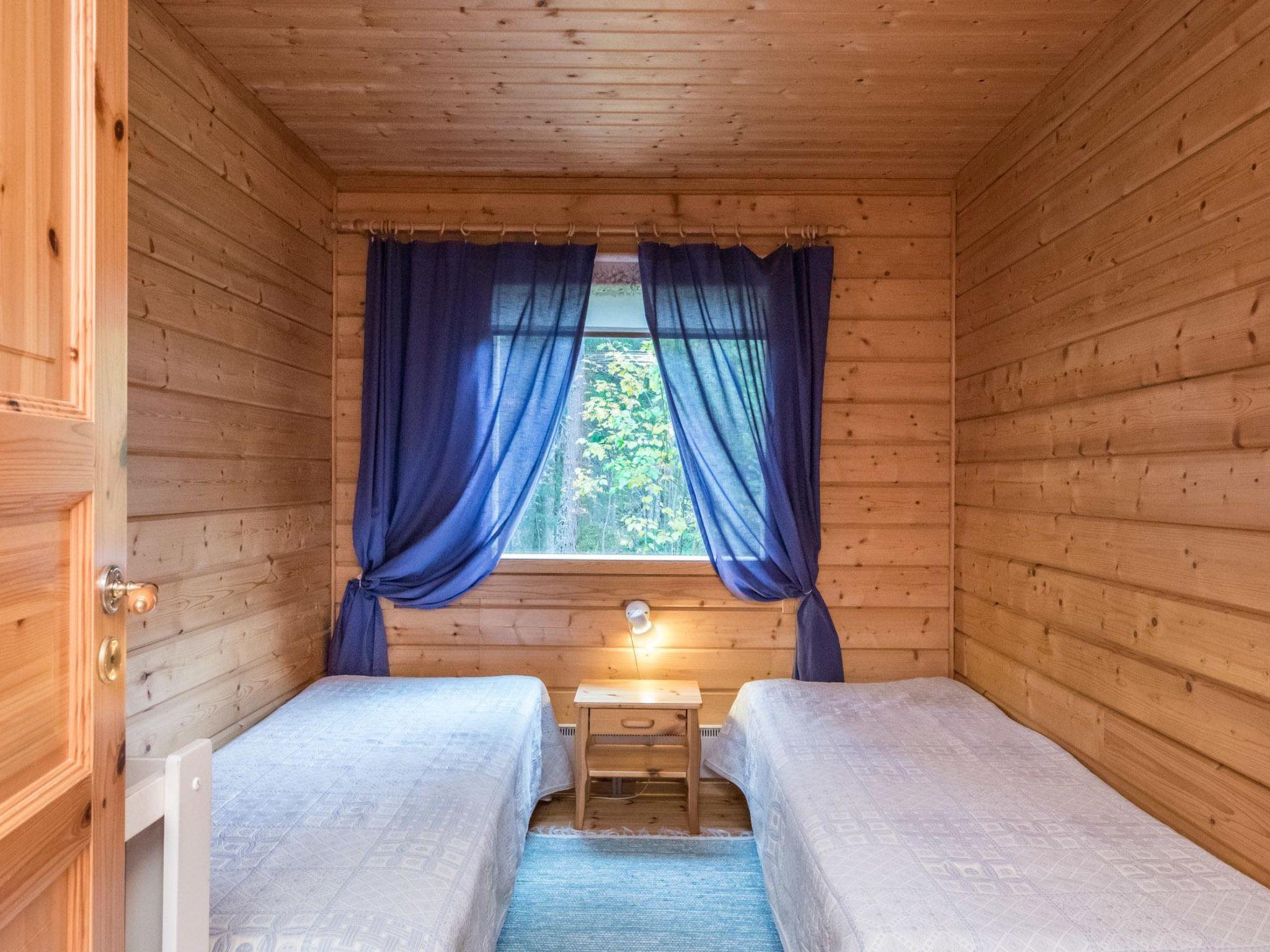 56 km south of Savonlinna. Lake Saimaa/Pihlajavesi 20 m, shallow water, firm sand/gravel bottom. Own boat. Log/wooden cabin 1998, living room/kitchen 1 extra bed, 2 bedroom with 2 beds in each, washroom, dressing room, sauna (elec. stove), foyer, glassed-in porch. Lakeside sauna 10 sqm (heated by wood).