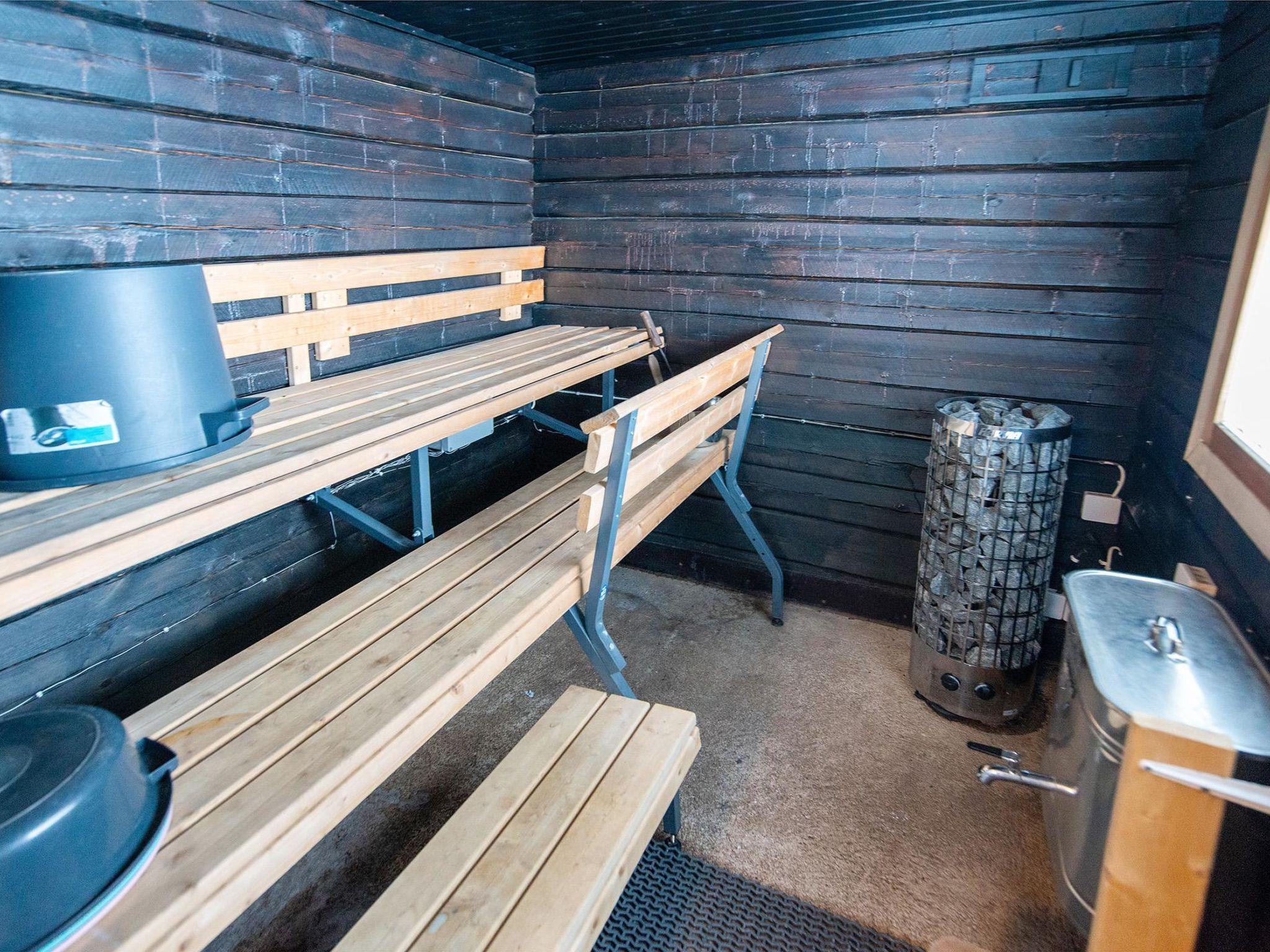 2 bedrooms. First bedroom with a 160 cm wide double bed and second bedroom with a 140 cm wide double bed. Livingroom, where 2 armchairs which can be converted into a bed for 1 person. Kitchenette, bathroom that has been is renovated in 2023. Separate Lakeshore sauna with a electric heater.