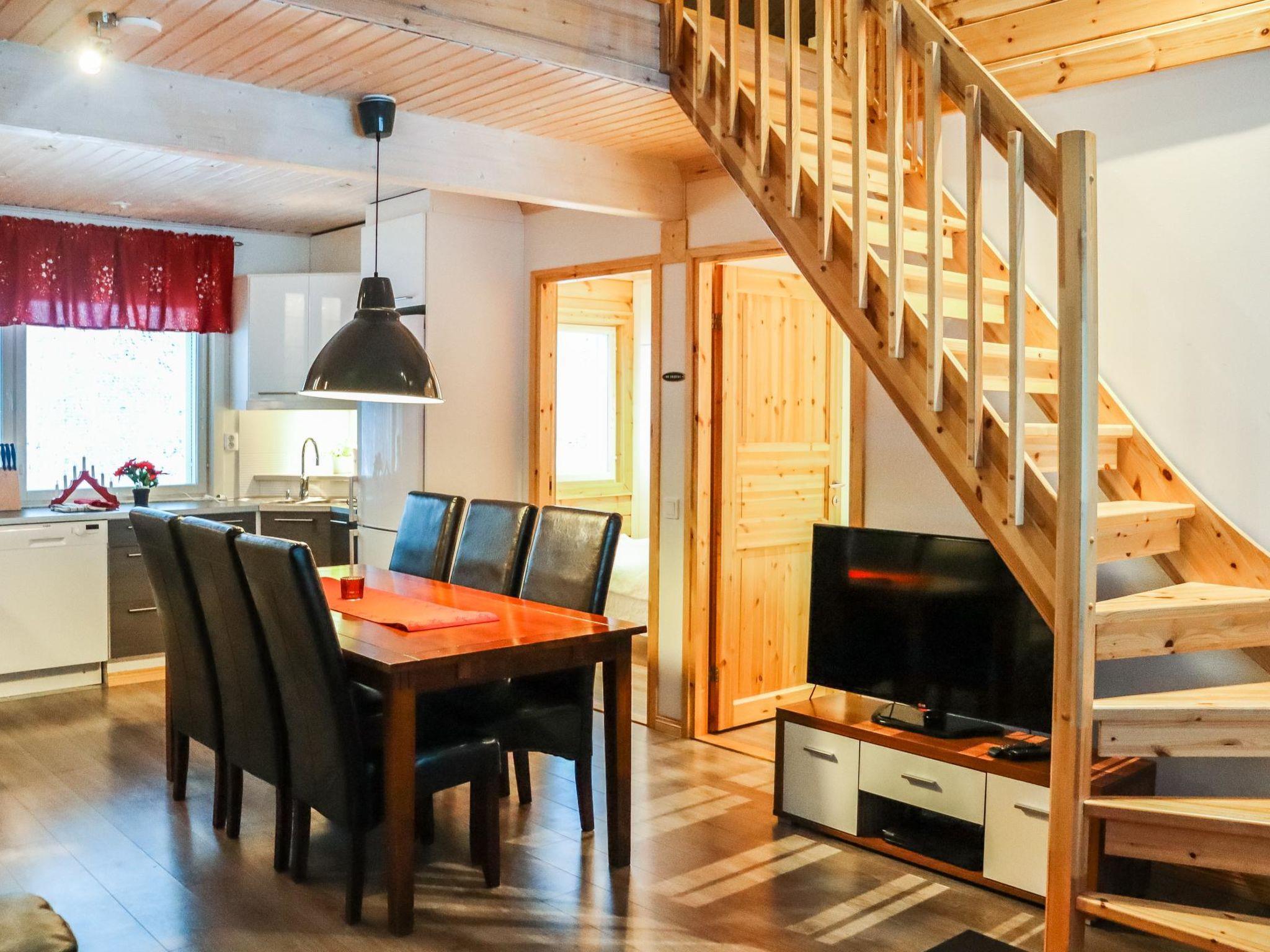 Living room and kitchenette, downstairs 2 bedrooms with double-beds. Sauna, 2 toilets. There are 4 beds on the upstairs. Wifi internet.Firewood includes in price. Pet fee / pet. If more than one is involved, please check in advance.